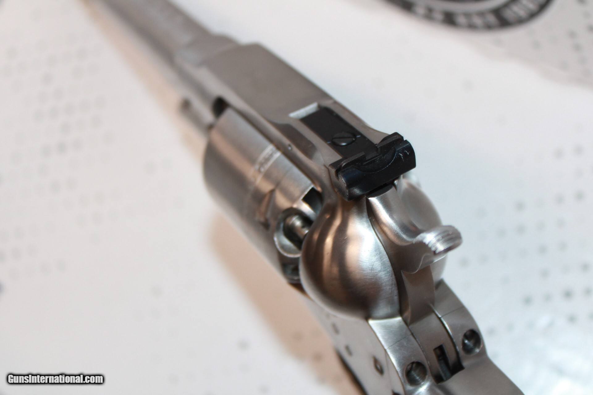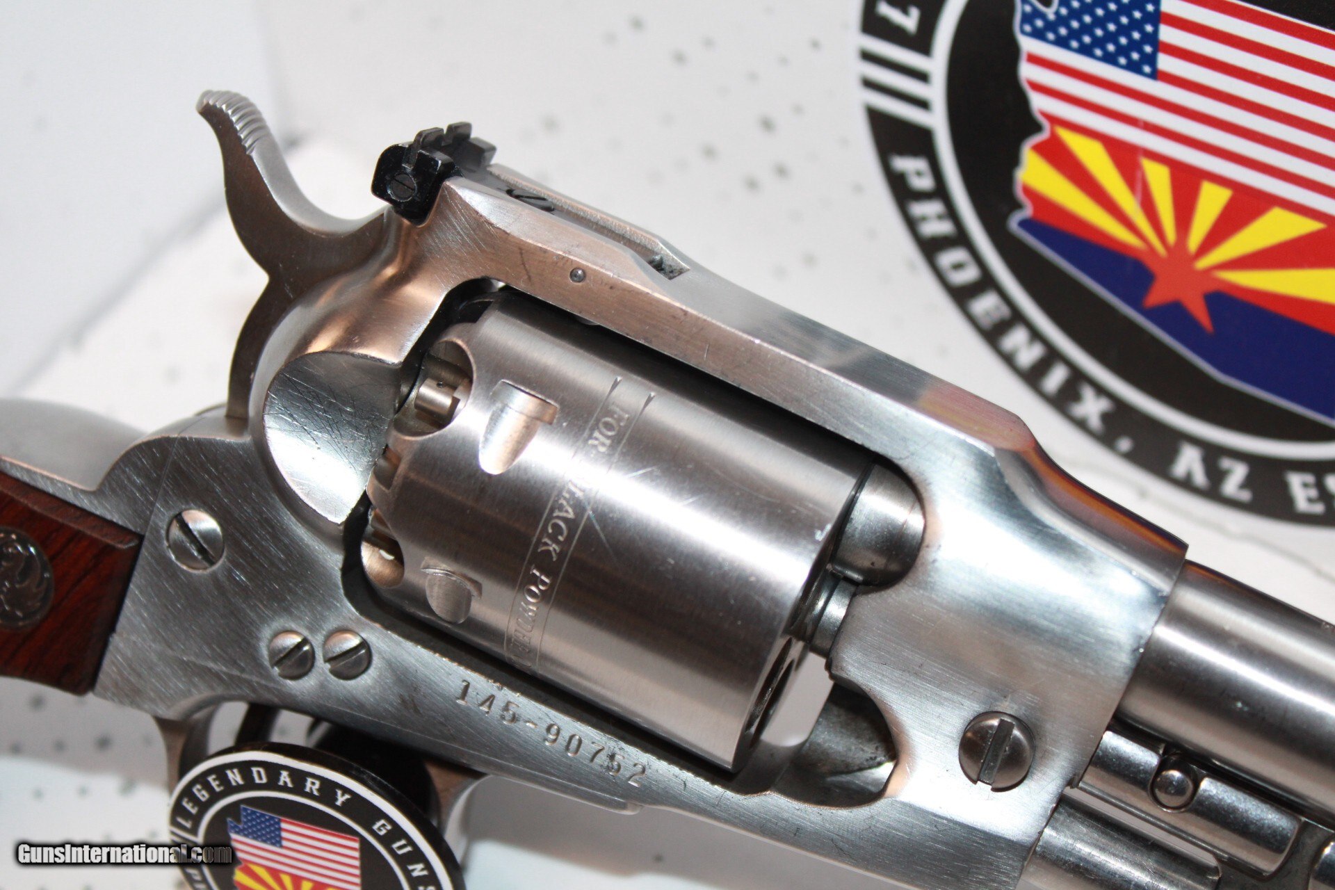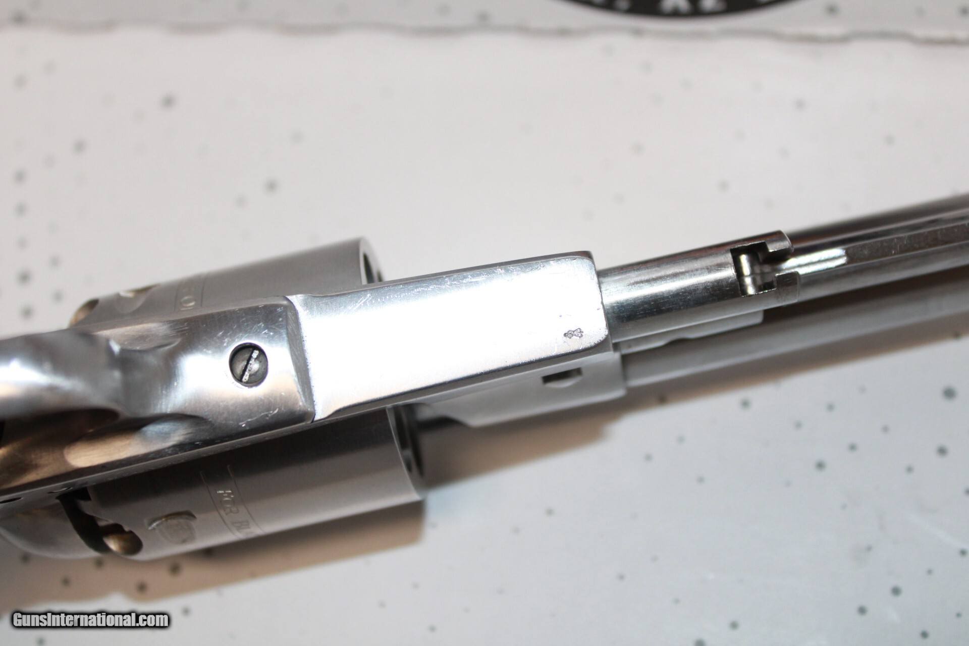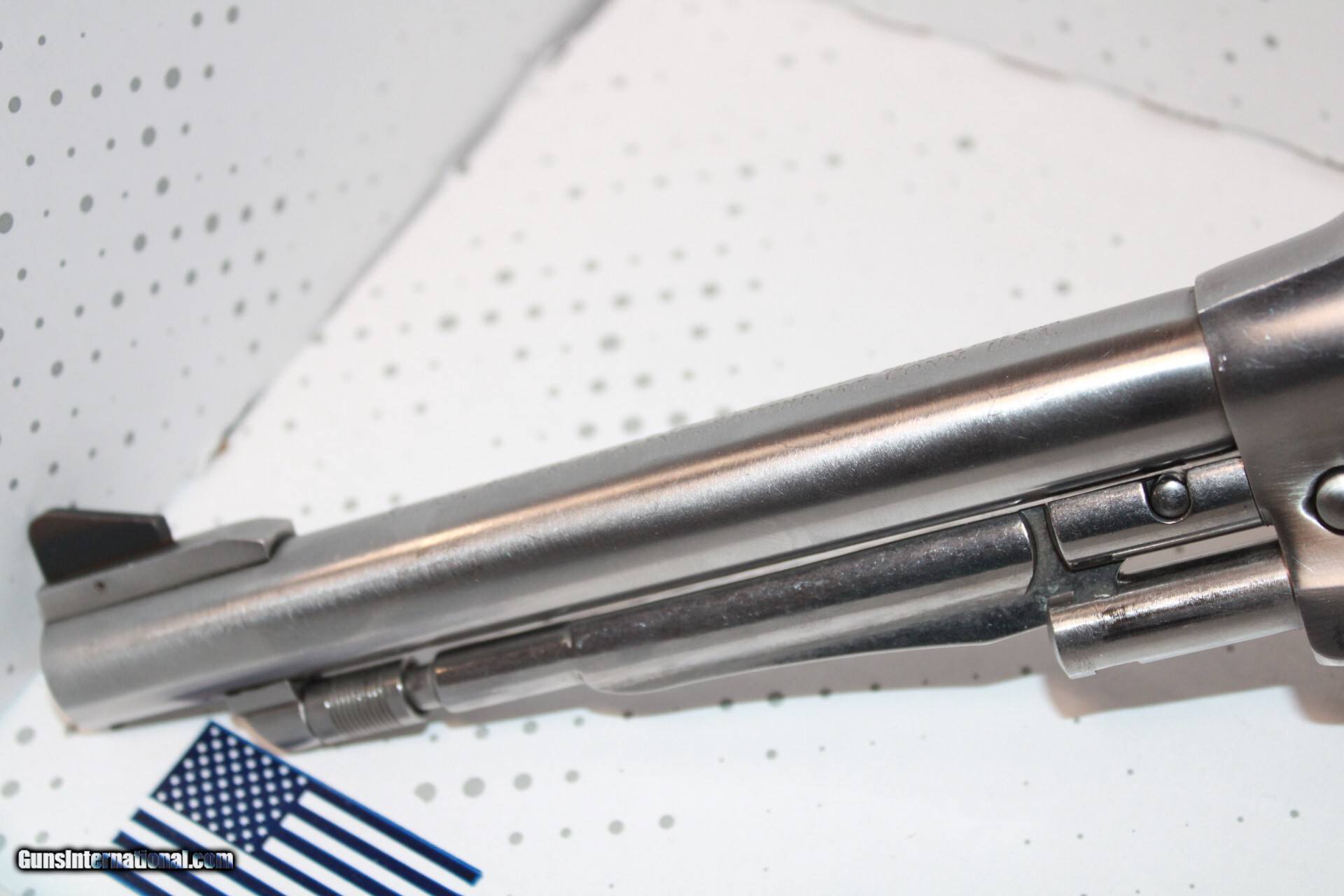 Ruger Old Army in 45Caliber with a 7.5" barrel, wood grips. Stainless finish, gun has a few light scratches,mechanically in very good condition, no box. Some states have a different definition of what the Old Army is and we will treat it as such. So if you live a State that is "not gun friendly" expect it to have to ship to a FFL. If you live in a "gun friendly state" than we will have no problem with this Black Powder pistol.
