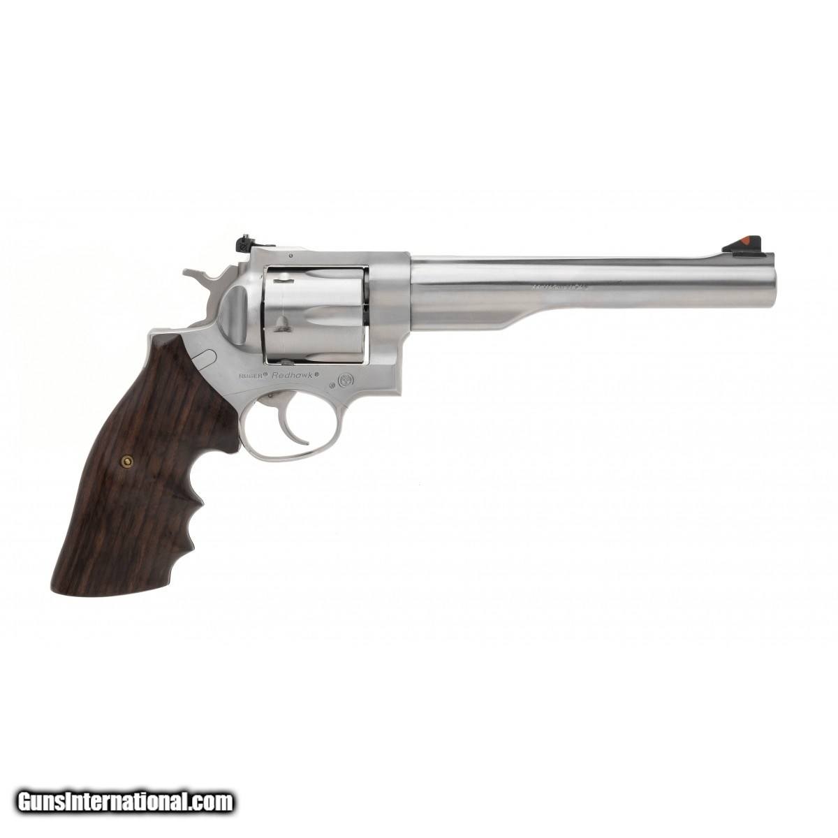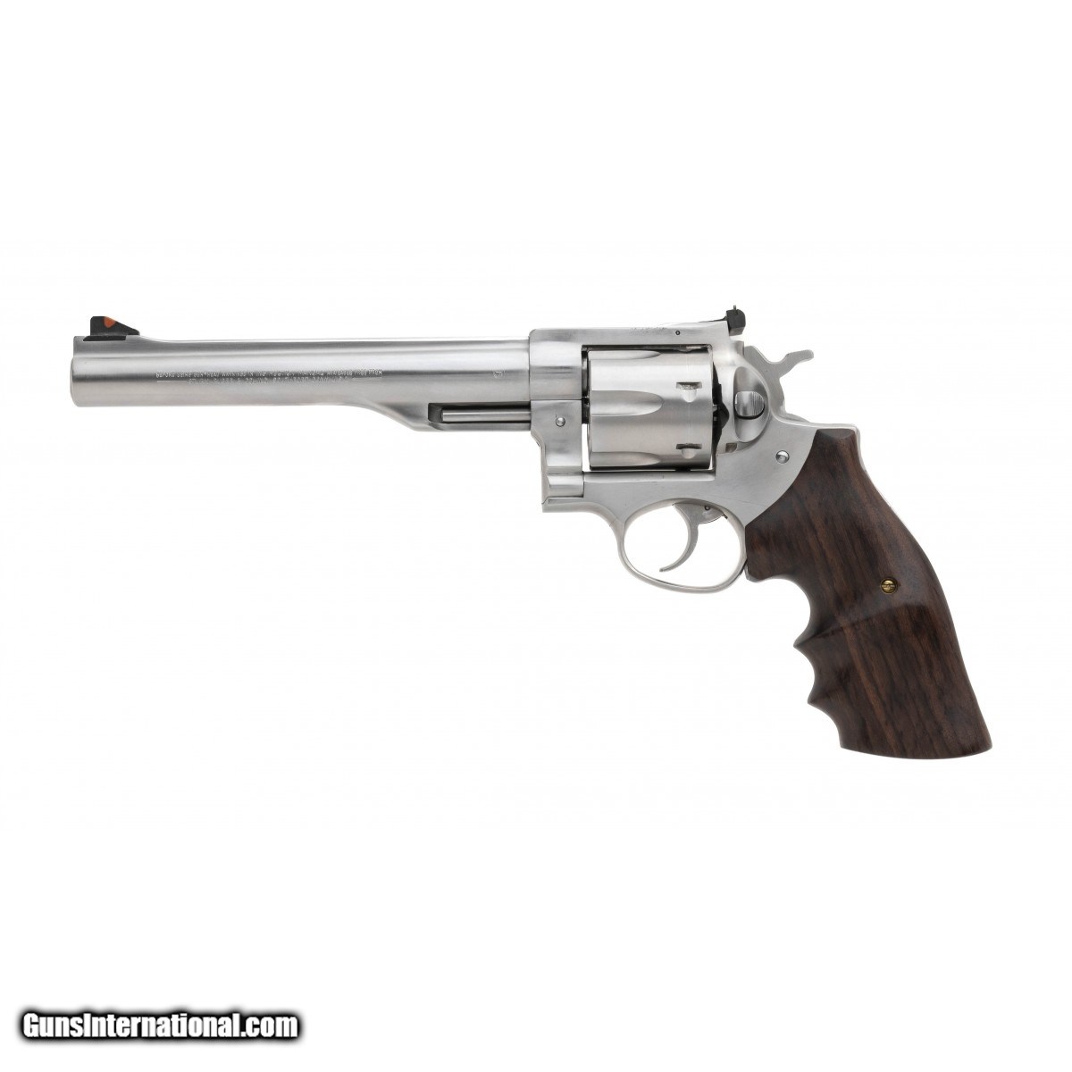 Stainless steel revolver with 7.5"" barrel. Has custom wood grips. Excellent condition.