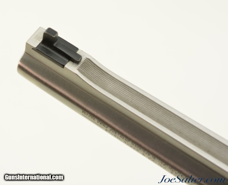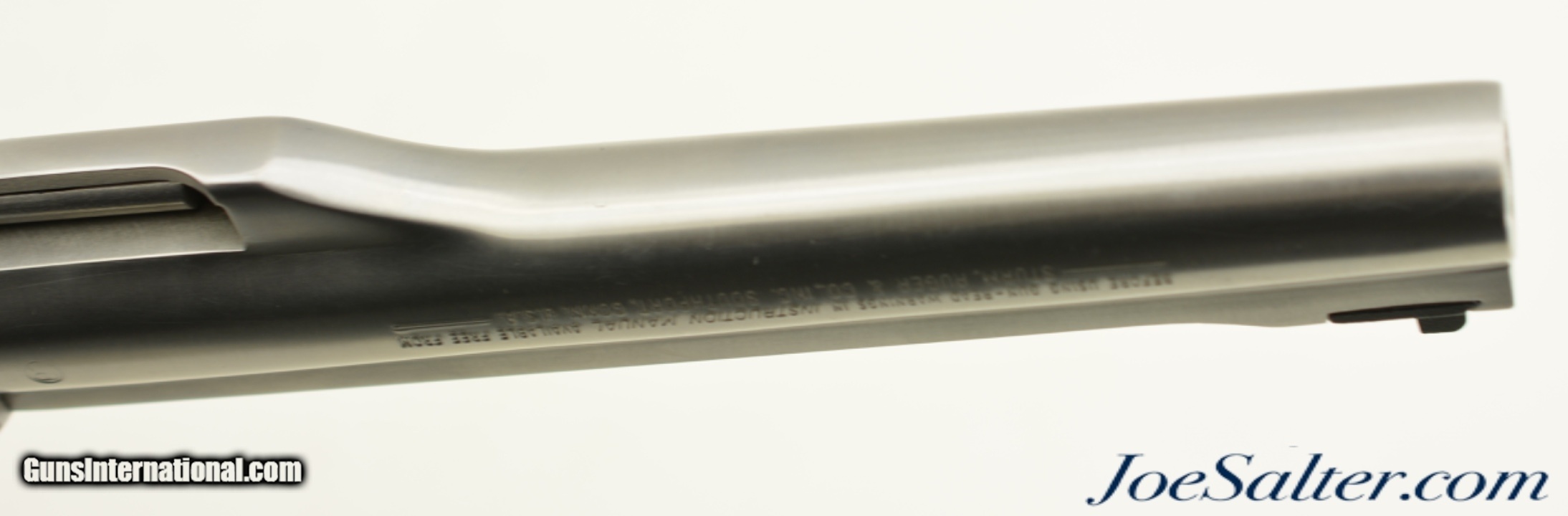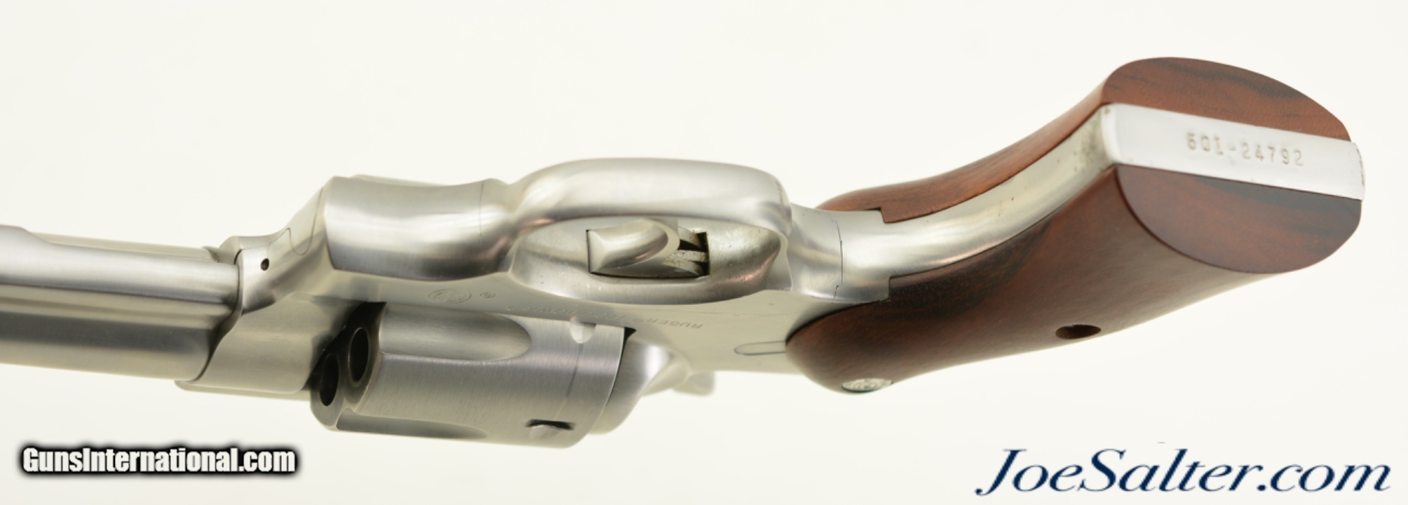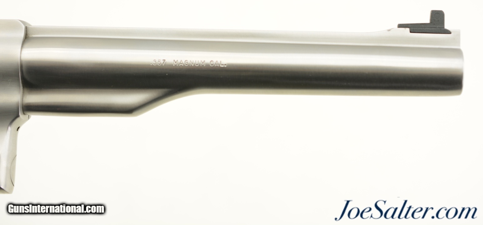 Description: Serial #501-24792, .357 Magnum, 7.5 inch round ribbed barrel with a bright, excellent bore. This is the Ruger Redhawk model revolver manufactured in 1985. The double action revolver is in excellent condition retaining virtually all, 97-98% of the original brushed stainless steel finish with some scattered use and handling marks having a very minor drag line on the cylinder. The orignial Ruger walnut grips rate excellent. It is equipped with a square notch adjustable rear and square post front sights with an additional ramp front sight with red insert. It comes in the correct unnumbered cardboard box with manual and paperwork. An excellent example of a 1980's vintage Ruger Redhawk in a desirable caliber. FFL SOLD |