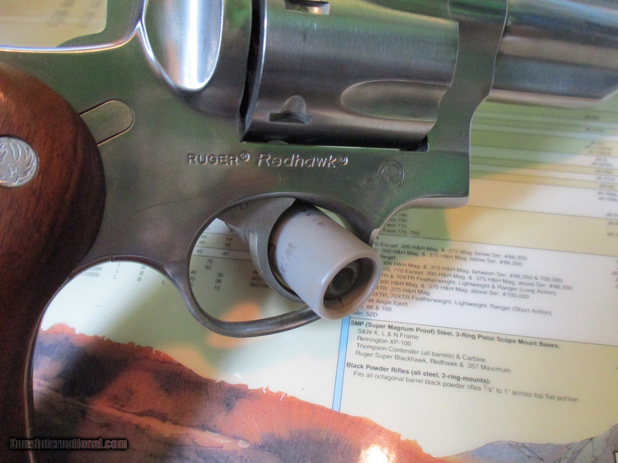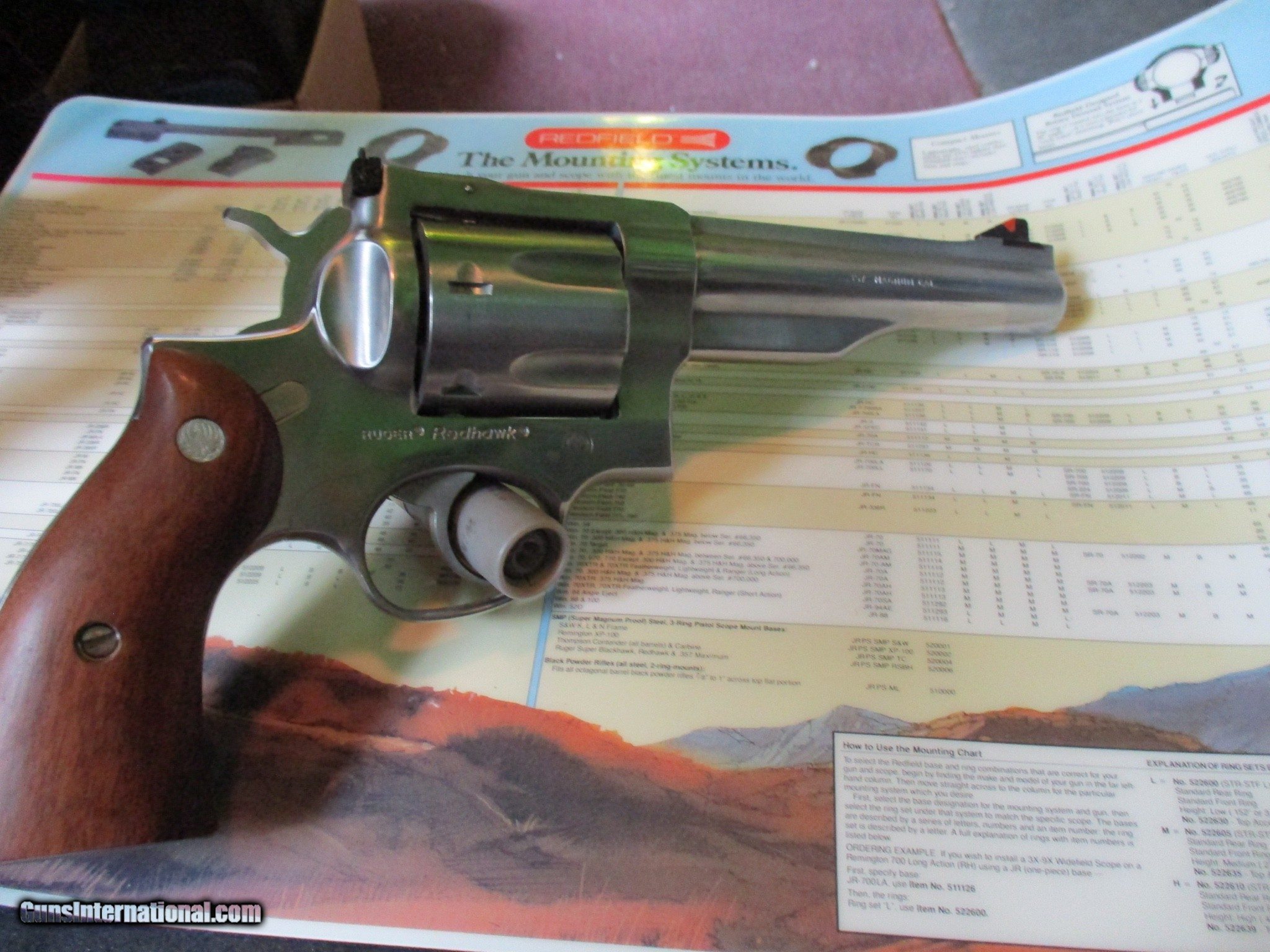 Description: Ruger Redhawk 357 Mag S.S. with 5.5 in. barrel in very good condition no box original grips light drag mark on cylinder early 6 shot model hard to find in 357 Mag. 501 prefix serial number shipping is $50.00 would consider trade of Ruger Blackhawk in 327 Mag. or 32-20 32 H&R Mag 2 cyl. model or 38-40 & 10 MM 2 cyl model or a super blackhawk in 480 Ruger or Ruger Redhawk in 480 Ruger or maybe TC G2 Pistol 204 Ruger or some other caliber this Redhawk was made from 1979 thru 1985 whenit was discontinued not many were made in 357 S.S. i belive mast were blued model and 7.5 in. barrels I need FFL from your dealer to ship to contact me for my email or mailing address SOLD Handgun Caliber: .357 Magnum Manufacturer: Ruger Model: Redhawk Serial Number: 501-13425 Barrel Length: 5.5 in. Chambers: excellent Condition: excellent Metal Condition: excellent Wood Condition: excellent Bore Condition: excellent Action: DA/SA |