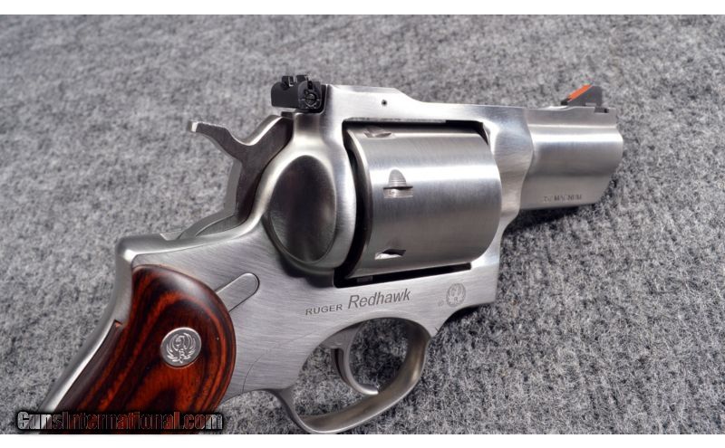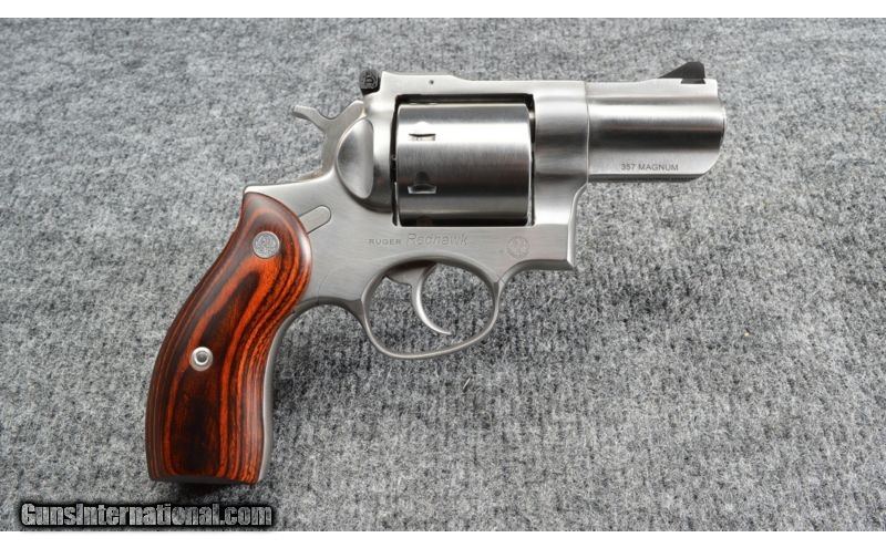Description: Ruger's Redhawk Revolvers are the first double-action revolver specifically designed for powerful magnum cartridges. It has many advanced features such as a triple-locking cylinder, a unique single-spring mechanism for relatively light trigger pull, replaceable ramp front sight and adjustable rear sight. Rugged stainless steel construction features extra metal in top strap, sidewalls and barrel mounting areas to handle high-power ammunition. This Redhawk is in like-new-in-box factory second condition and comes with the factory case, moon clips, and paperwork. SOLD Caliber Info: .357 Magnum Chambers: 8 shot Metal Condition: LNIB Wood Condition: LNIB Bore Condition: LNIB Barrels: 2.75 inch Triggers: Double action Butt Pad: Hardwood grips Weight: 44 oz Sights: Ramp front, adjustable rear Extras: Factory box, moon clips, and paperwork Item Location: Gainesville, VA |