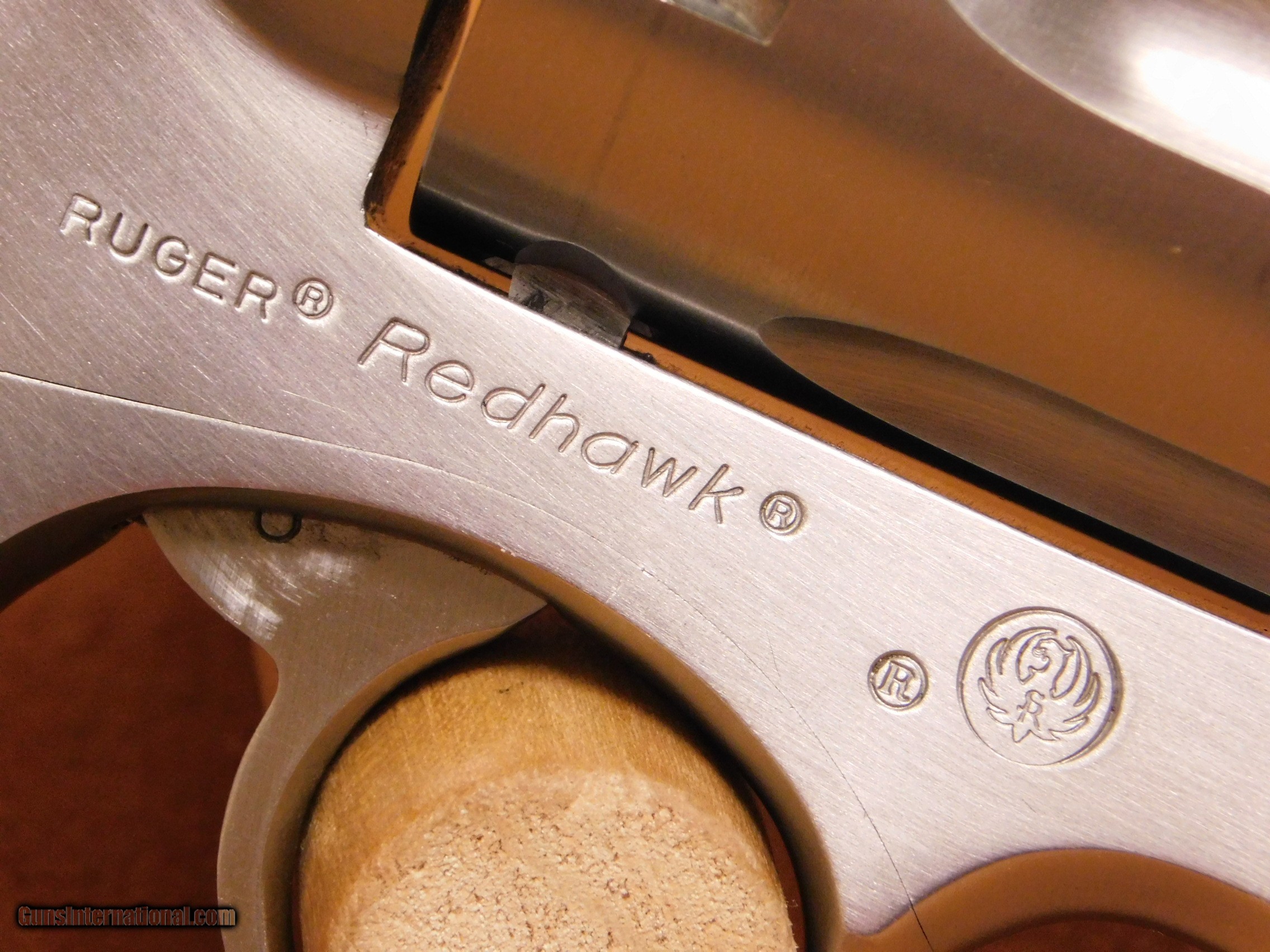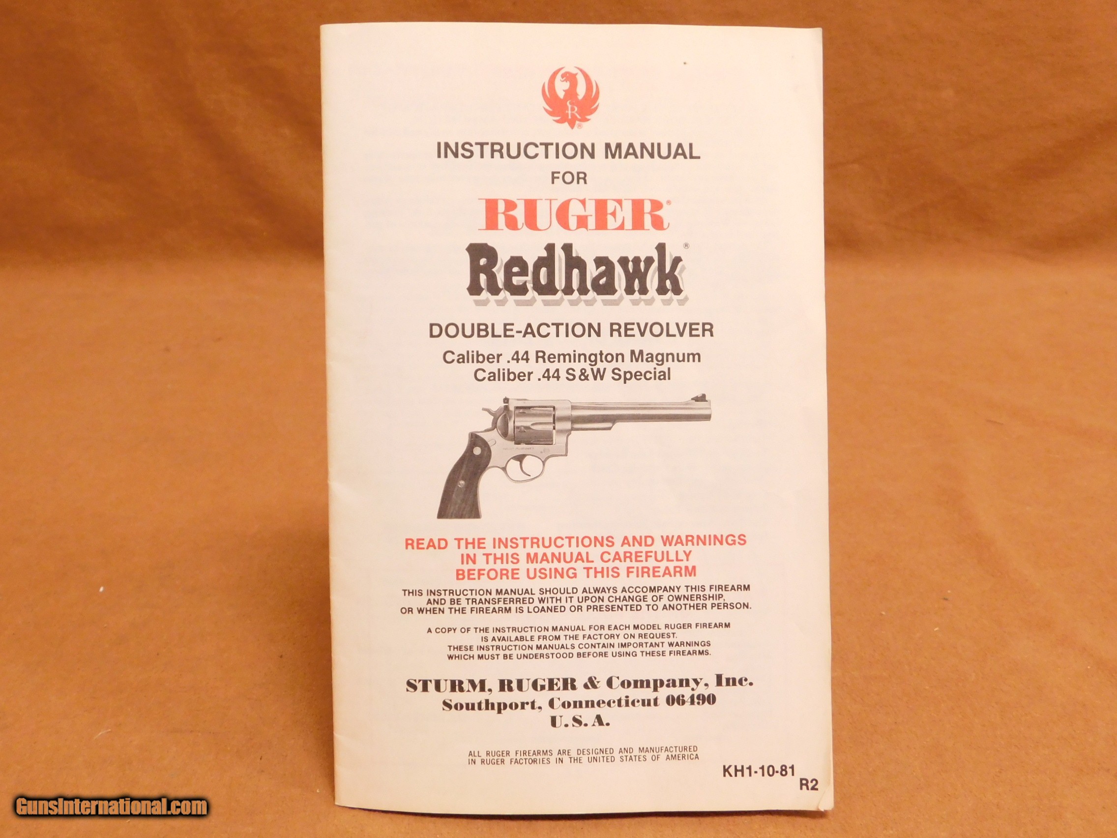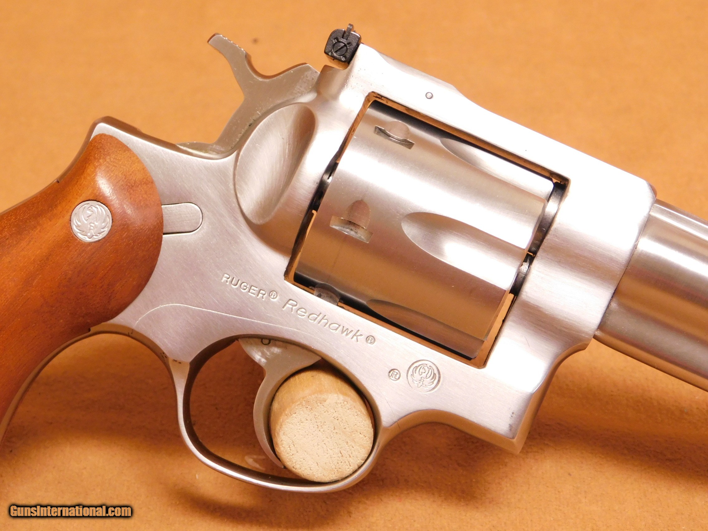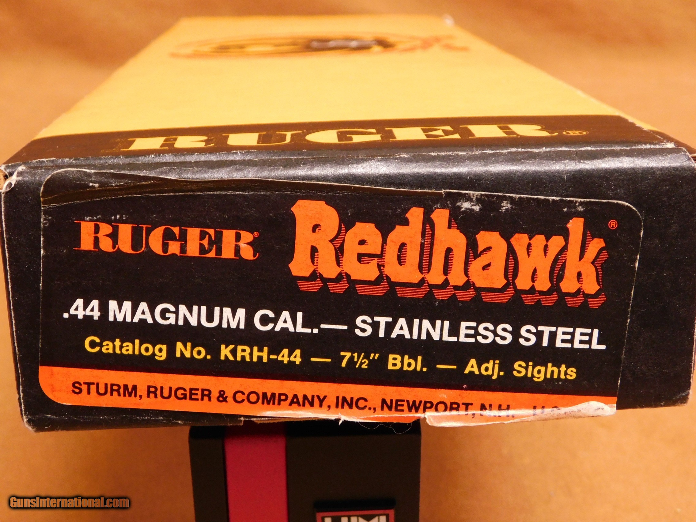 Description: This is a nice Ruger Redhawk (not Super Redhawk) with a 7.5-inch barrel in .44 Magnum. This gun, according to Ruger, was made in the third year of Redhawk production: 1982. It has a very nice stainless steel finish with just a few small spots of wear from over the years. This revolver comes with its orange cardboard Ruger box and user manual. It also has a spare set of Pachmayr rubber grips in case you prefer them to the equipped wood, Ruger medallion grips. All items are also available for sale in our brick & mortar store and are subject to prior sale. Think long, think wrong. Payment On firearms, we typically only accept credit cards or money orders/cashier's checks.