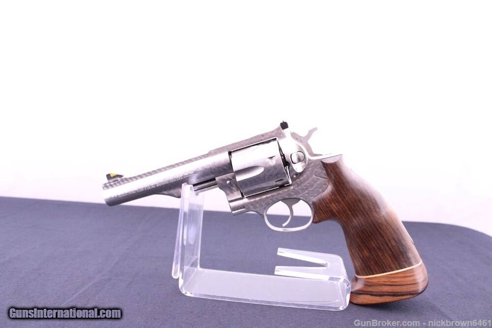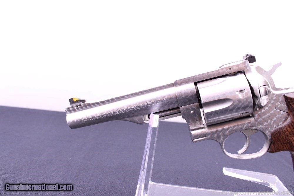 Description: Guns Listing ID: 1041158 RUGER REDHAWK 44 MAG 5.5\" JEWELED BARREL HARDWOOD GRIPS The Ruger Redhawk 44 Rem Mag features dual chambering for .44 magnum models, which also accept factory .44 special cartridges. The rugged stainless steel construction with no side plates, is designed specifically to handle powerful magnum loads through extra metal in top strap, sidewalls and barrel mounting, while the cold hammer-forged sleeve and shroud barrel provides outstanding accuracy. Triple-locking cylinder is locked into the frame at the front, rear and bottom for more positive alignment and dependable operation shot after shot. Single-spring mechanism allows for a smooth, light trigger pull. Easy sighting with readily replaceable, insert front blade sight and adjustable rear sight with white outline. Patented transfer bar mechanism provides an unparalleled measure of security against accidental discharge. It also accepts factory .44 Special cartridges. SOLD Manufacturer: RUGER Model: REDHAWK .44 5.5 Caliber Info: .44 MAGNUM Condition: Used - Non-Certified Barrels: 5.5 BARREL |