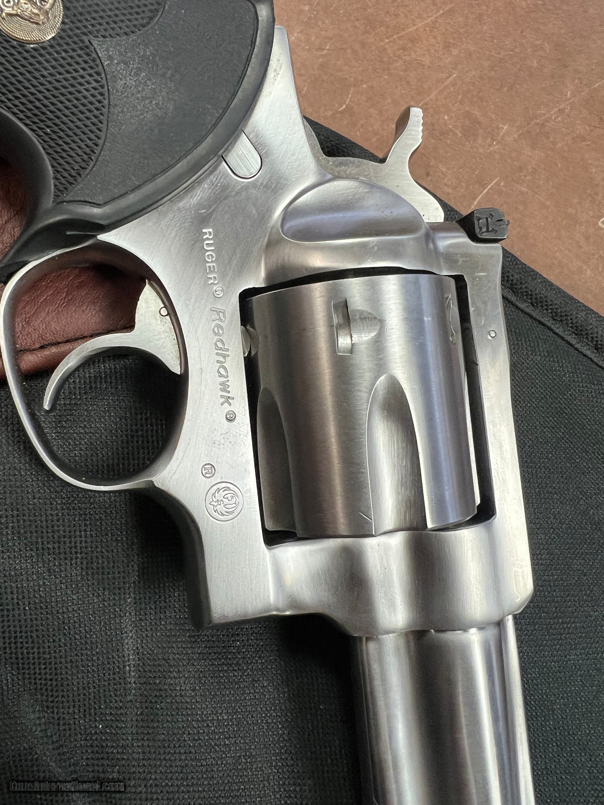 Description: Guns Listing ID: 909374 Comes w two speed loaders Rubber grip Fixed sights 7.5 in barrel Comes in soft case SOLD Manufacturer: RUGER Model: REDHAWK .44 7.5 Caliber Info: .44 MAGNUM Condition: Used - Non-Certified Barrels: 8 BARREL Finish: SILVER AND BLACK |