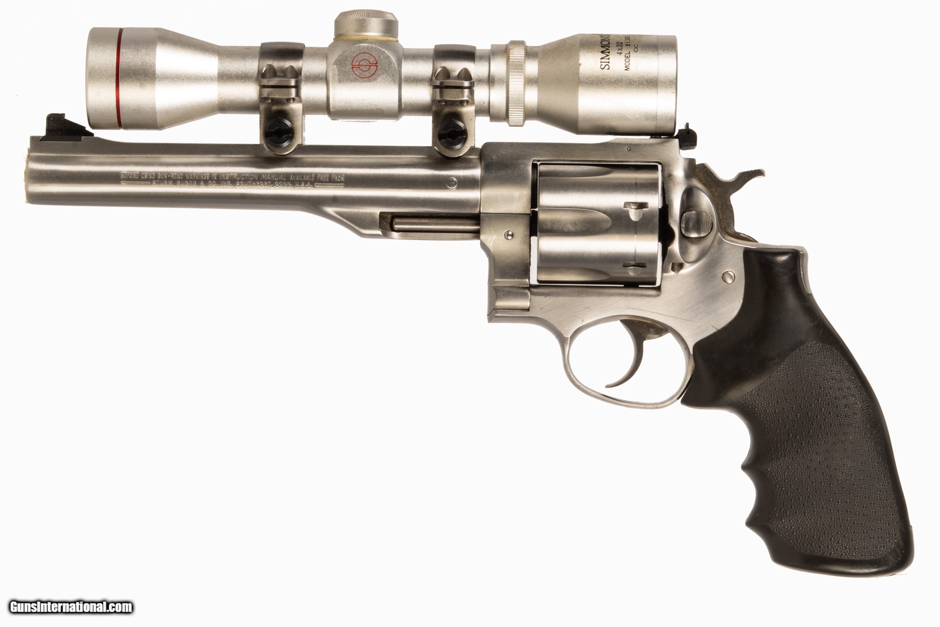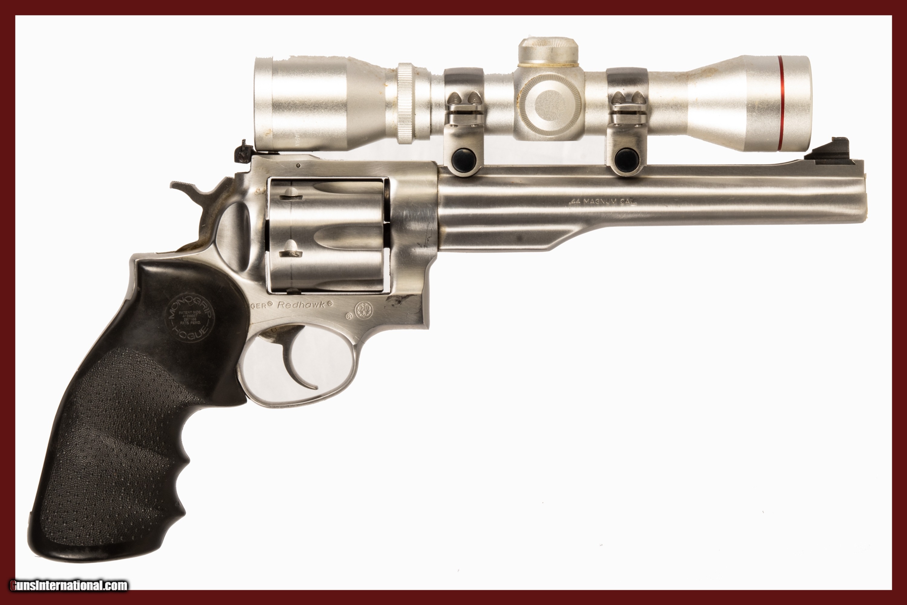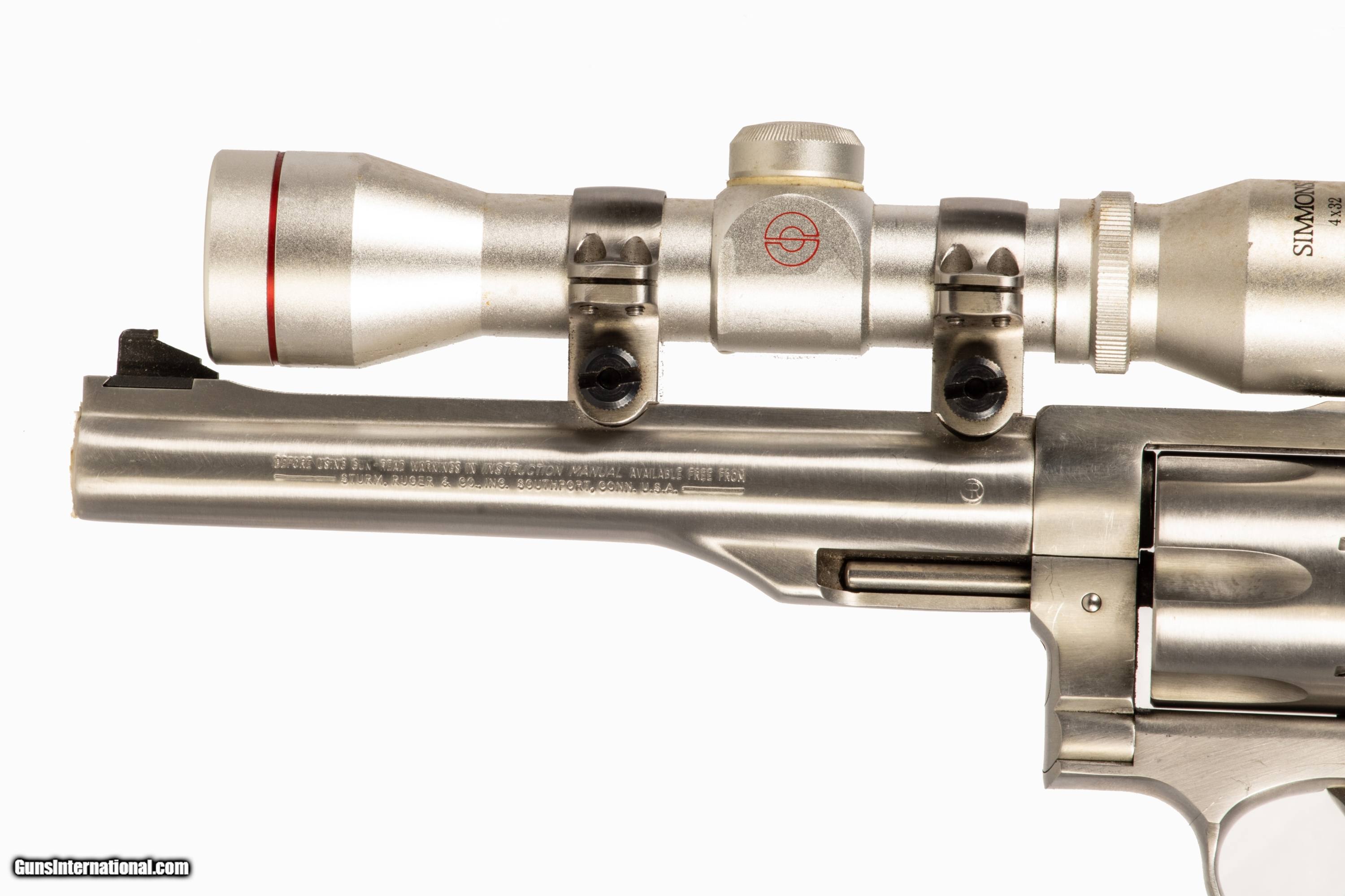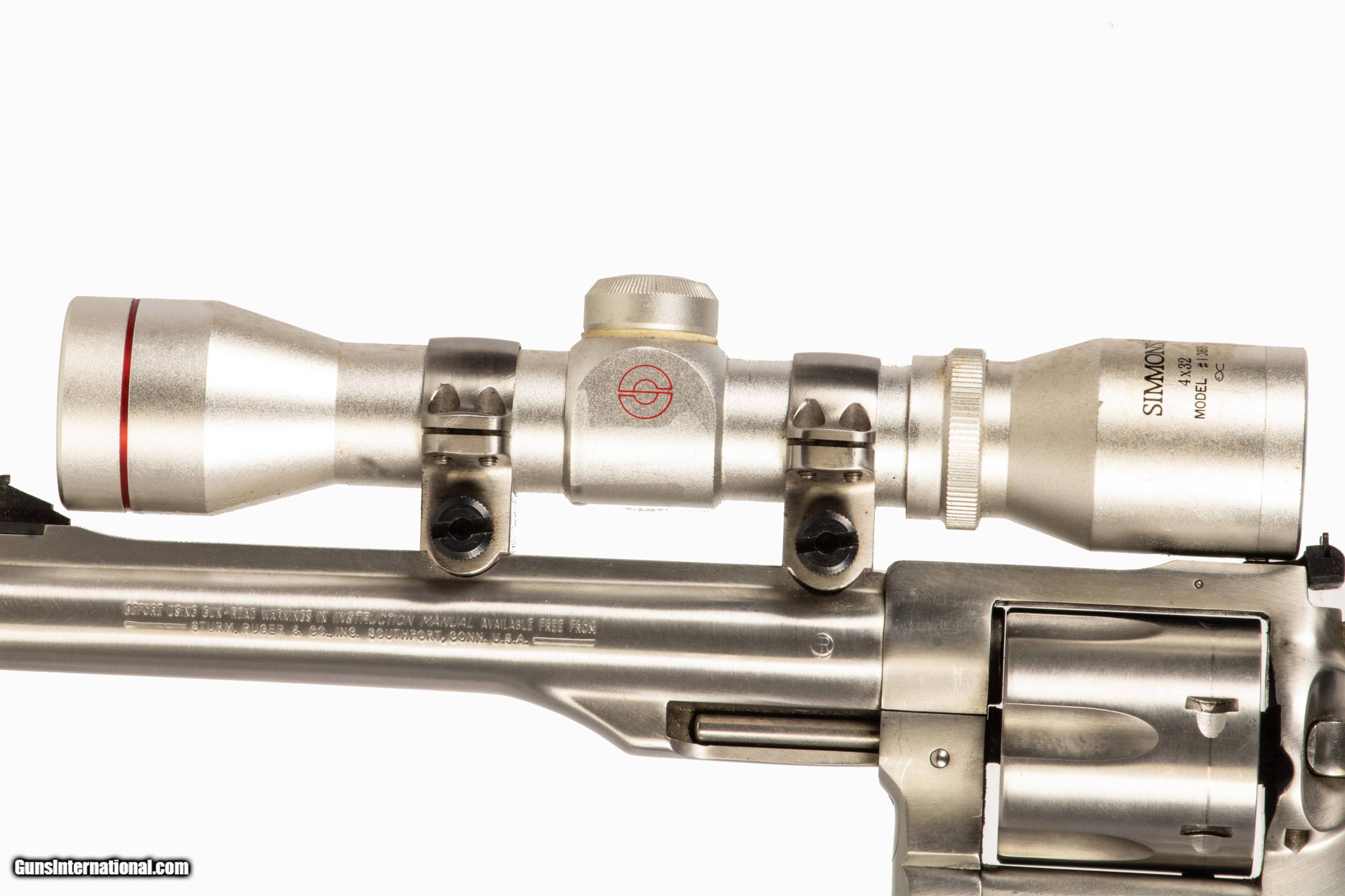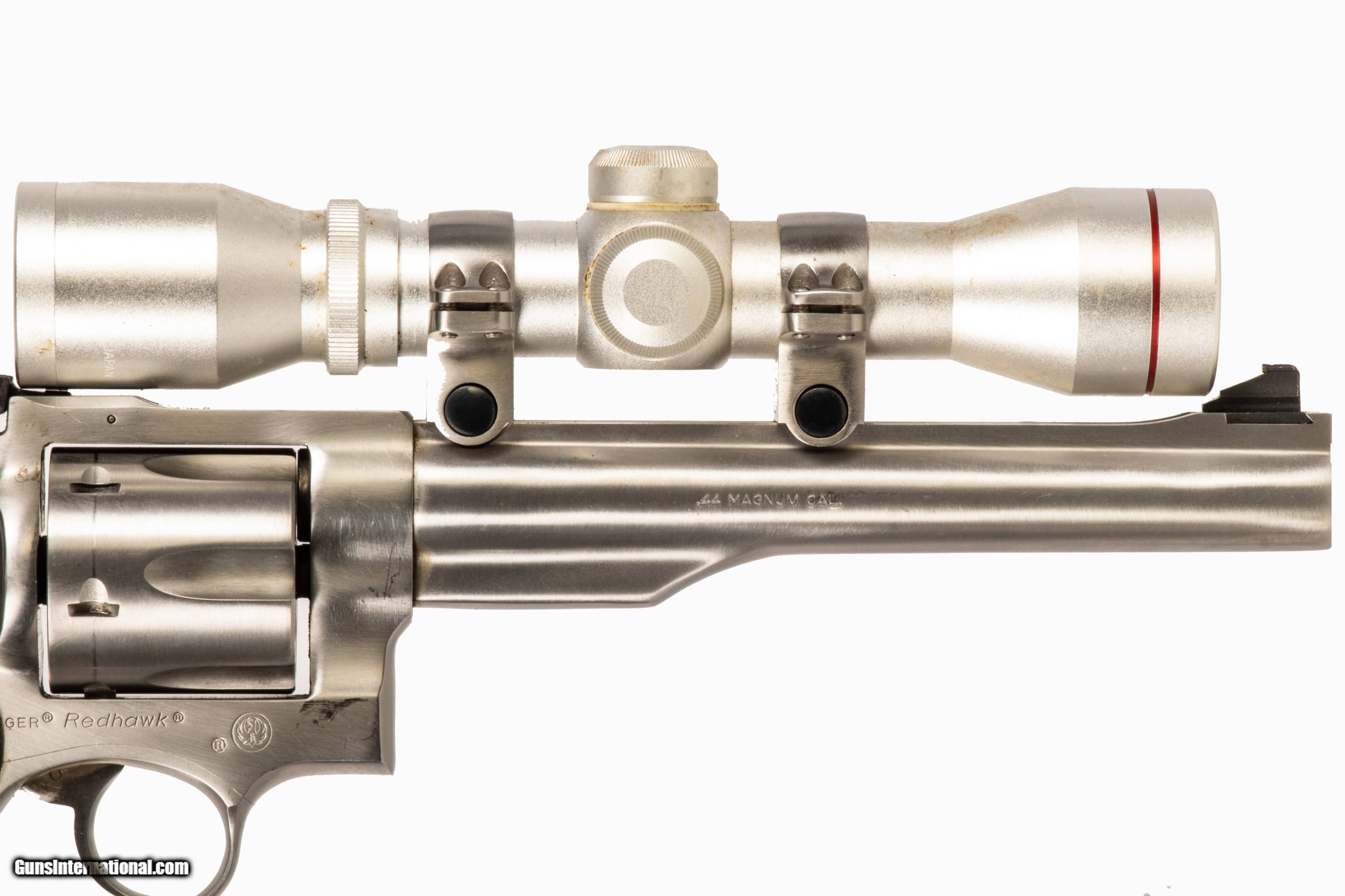 Ruger Redhawk chambered in 44 Mag with a 7 1/2 inch barrel bright & shiny bore and a Simmons 4x32 pistol optic. This firearm is in excellent condition and is covered by Dury's Lifetime Warranty.