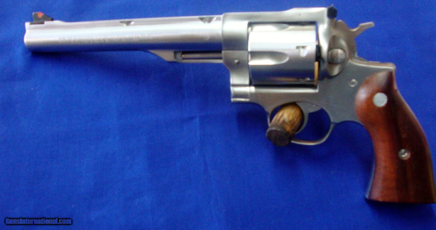 Description: Ruger Redhawk .44 Mag 7.5" barrel with a red ramped front and an adjustable rear sight Six round fluted cylinder Stainless steel frame and cylinder Wooden Ruger grips This revolver is compatible with a scope Nice condition with a slight cylinder score. SOLD |