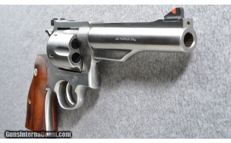Description: Rugged and reliable SOLD Manufacturer: 2001 Caliber Info: .44 Remington Magnum or .44 S&W Special Chambers: 6 round cylinder Metal Condition: Very good condition showing small scratch on the left side of the frame and cylinder drag mark Wood Condition: Grips are in fine condition Bore Condition: Bright & sharp Barrels: 6" Stainless Triggers: Single/Double Action Stock: Smooth walnut Weight: 52 oz Sights: Red ramp front blade, Adjustable leaf rear Item Location: Grand Junction, CO |