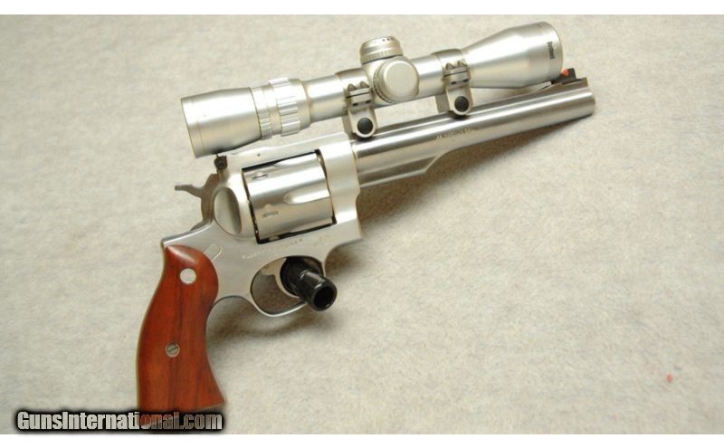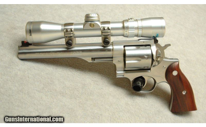 Description: Ruger Redhawk Revolver .44 Mag. Excellent condition, double action stainless revolver. Bushnell 2-6x scope installed - an excellent choice for handgun hunting in states where legal. SOLD Caliber Info: .44 Magnum. Chambers: Revolver. Metal Condition: Excellent, light wear and handling marks. Wood Condition: Grips are in excellent condition. Bore Condition: Bright. Barrels: 7 1/2" Barrel, stainless finish. Triggers: Double and single action. Stock: Factory wood grips. Weight: 72 Ozs. Sights: Adjustable iron sights and Bushnell 2-6x scope. Item Location: La Vista, NE |
