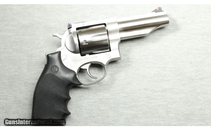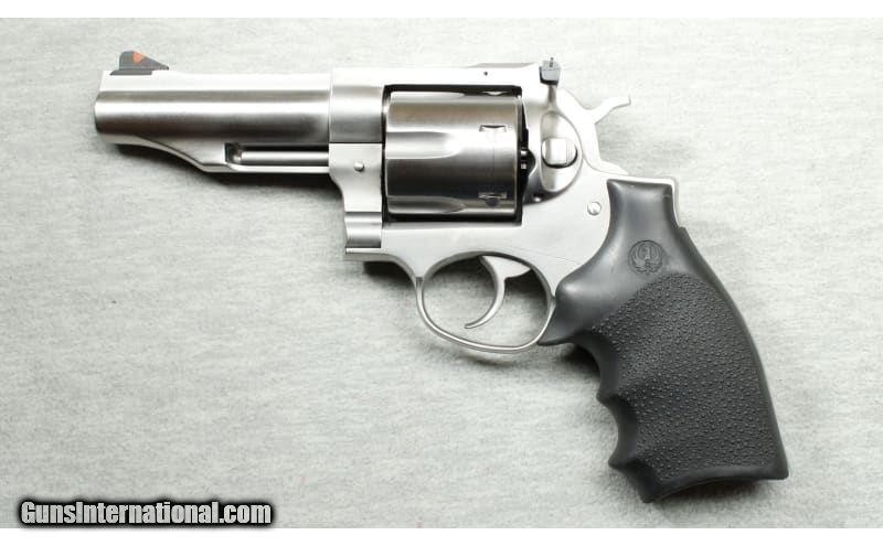 Description: Excellent condition, light wear, few small scratches. Ruger large frame magnum revolver, 4" barrel with shrouded ejector, stainless finish, 6 shot fluted cylinder, adjustable sights, checkered hammer and Ruger factory hard rubber grips. .44 Magnum .44 Magnum SOLD Chambers: Revolver Metal Condition: Excellent Bore Condition: Bright Barrels: 4 Triggers: Double and single action Butt Pad: Ruger grips Sights: "Adjustable rear, red ramp front sights Item Location: La Vista, NE |