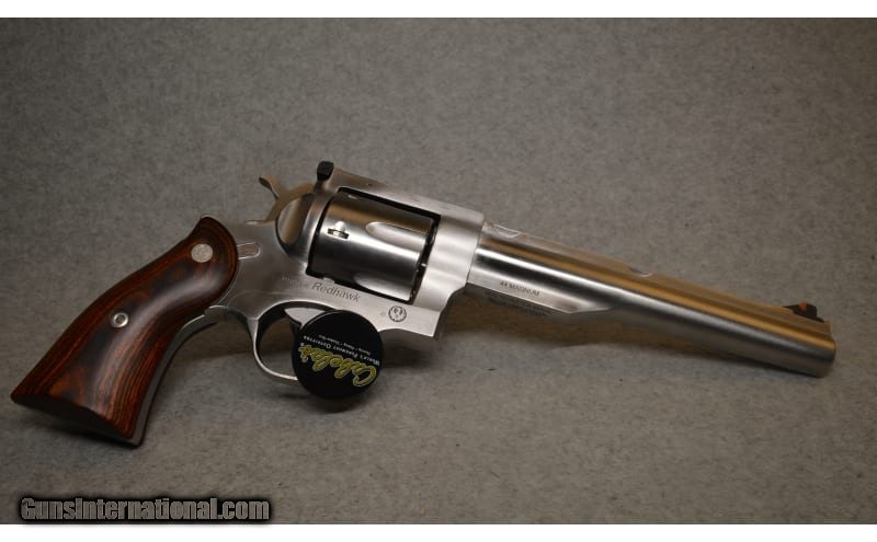 Description: This is a Ruger Redhawk revolver in .44 Magnum with a 7.5" barrel. Overall, this revolver is in outstanding condition. The stainless steel only has small, light scratches, nothing deep or damaging to the metal. The grips are in great condition with barely any signs of usage. This revolver does come with its original hard case and two loaders, as pictured. .44 Magnum SOLD Barrels: 7.5 inch Item Location: Hazelwood, MO |