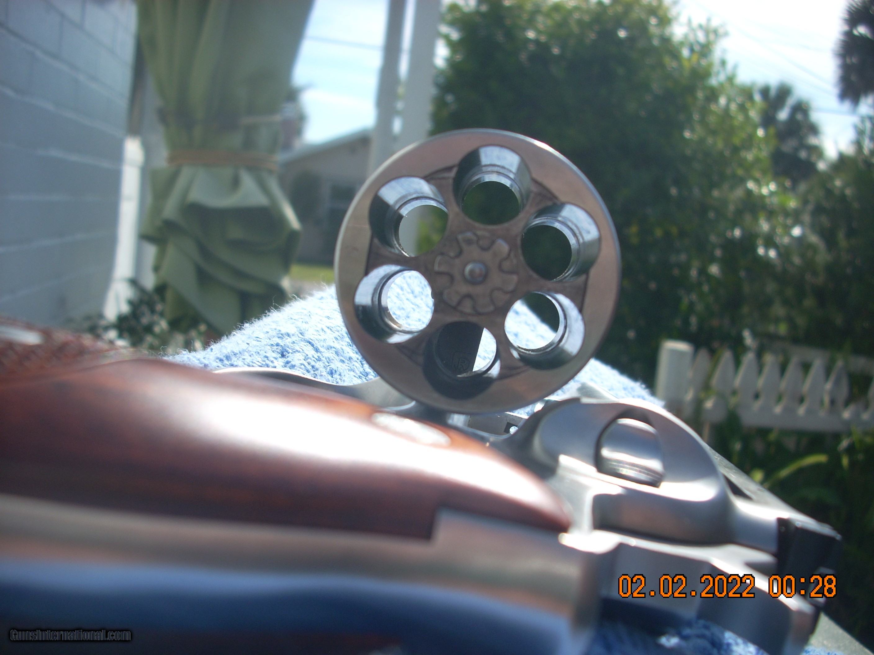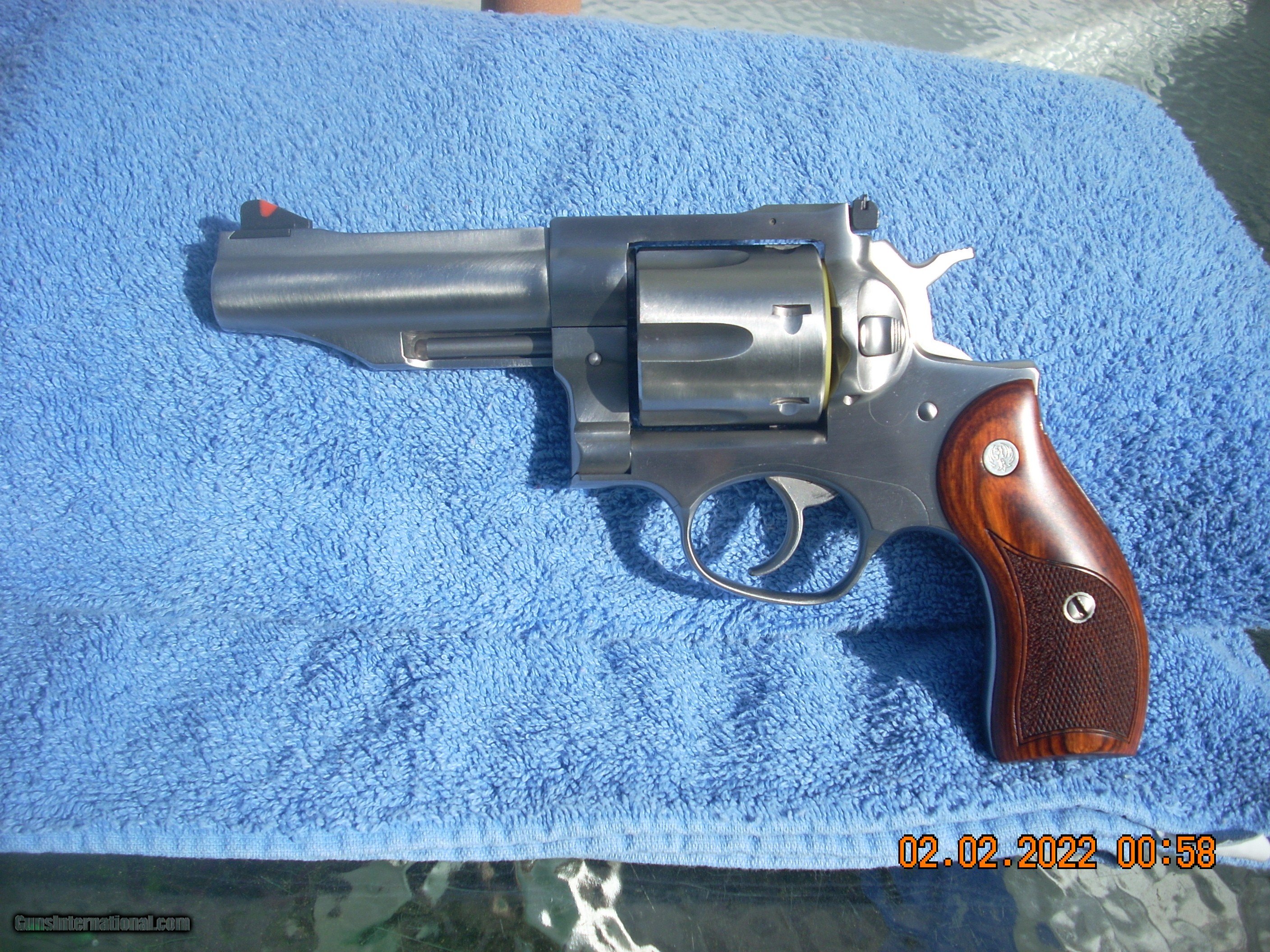 Description: Ruger Satin Stainless Steel Revolver six shooter revolver with 4.2", half-lug barrel, triple-locking cylinder, single-spring mechanism, and round-butt frame bottom. Fully adjustable, black blade rear sight with red ramp front sight. Checkered hardwood grips. Includes three moon clips (holds ACP) and hard case from factory with Owner's Manual. Weighs 44 oz. Buyer should use or find local FFL that will accept shipment of firearm from a private party. Current FFL can be emailed to seller after payment is sent. SOLD Manufacturer: Sturm Ruger Model: 05032 Serial Number: 503-91799 Barrel Length: 4.2 Bore: Like new Chambers: Six bright Ejectors: Fine Condition: Excellent Metal Condition: Excellent Wood Condition: Excellent Bore Condition: Excellent Barrels: Clean Barrel Type: Stainless Action: DA/SA Triggers: Like new Stock: hardwood fancy Butt Pad: round Finish: Satin Stainless Steel Weight: 44 oz. Sights: ADJ Rear; Fixed red front Case: Ruger Hard Plastic Item Location: Daytona Beach, FL |