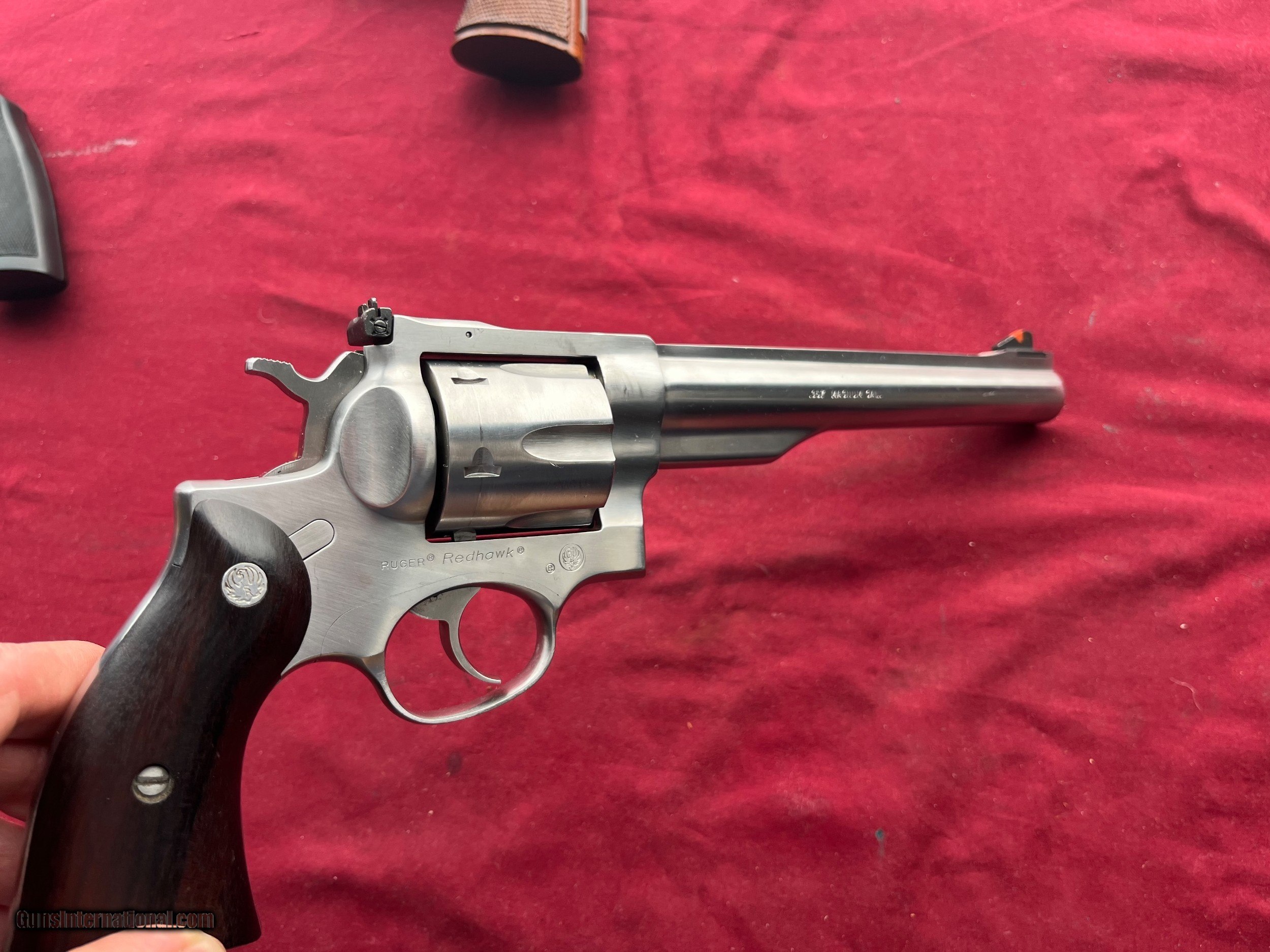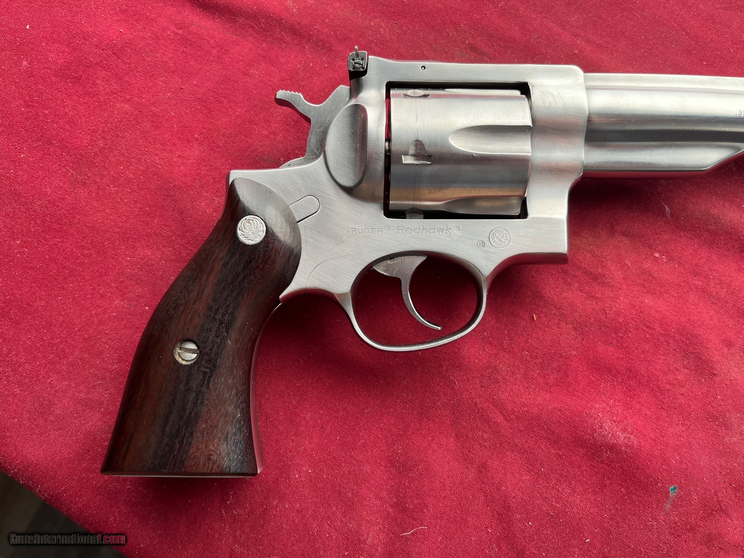 Description: RUGER REDHAWK STAINLESS REVOLVER . CALIBER 357 MAGNUM . SER# 501-06712 MADEIN 1984, 7 1/2 INCH BARREL WITH ADJUSTABLE REAR SIGHTS. TIGHT CRISP ACTION THAT FUNCTIONS FINE. GOOD SOLID GRIPS WITH A SMALL CHIP AT THE TOE OF THE LEFT PANEL. EASTERN BRANCH FIREARMS ADD 40.00 SHIPPING – NEXT DAY AIR SHIPPING ADD 50.00 SHIPPING – LONG GUNS GROUND OPTIONAL INSURANCE IS AVAILABLE AT 1.25 PER 100.00 Questions e-mail or call Glen at Eastern Branch Firearms 207-215-5021 TERMS – PLEASE READ BEFORE I DO NOT HAVE A LAYAWAY OPTION ( WE ACCEPT CREDIT CARDS ) -- I GET ALOT OF REQUEST FOR TRADES, I WOULD PERFER NOT TO DO TRADES ON MY INTERNET LISTINGS PAYMENT OPTIONS- We accept money orders, cashier’s checks , bank checks. sorry no personal checks. We accept all major credit cards please add 3% to the ’s cash discount price.(Shipping within the state of Florida - Florida Residents must pay sales tax) .Handguns and long guns do need to be shipped separate. PLEASE do not send payment via FED EX . USPS & UPS are fine. Thank you. We include a signed copy of our FFL with each firearm shipped. SAFTY NOTICE- Buyer is solely responsible for determining that a used gun is safe to shoot. The firearms offered have not been test fired but have been given a visual inspection only for purposes. It is a requirement that every used firearm is inspected by a qualified gunsmith before firing. By , the buyer agrees to hold seller harmless against damages, injury, or death caused by defective merchandise. RETURN POLICY- All firearms come with a 3-day non firing , non messing with ( turning srews ,taking apart,removing parts, scoping. firing, cleaning or messing with in anyway) inspection/return privilege.Inspection is based on a visual review of the gun to confirm the gun is in the condition stated. In the case of a return, buyer pays all shipping charges & if paid for with a credit card buyer absorbs the 3% credit card charges . So please ask questions BEFORE you bid. Thanks for Looking and Good Luck!! U.S. sales only, no exports…this includes antiques. I will ship to third party for exporting SOLD |