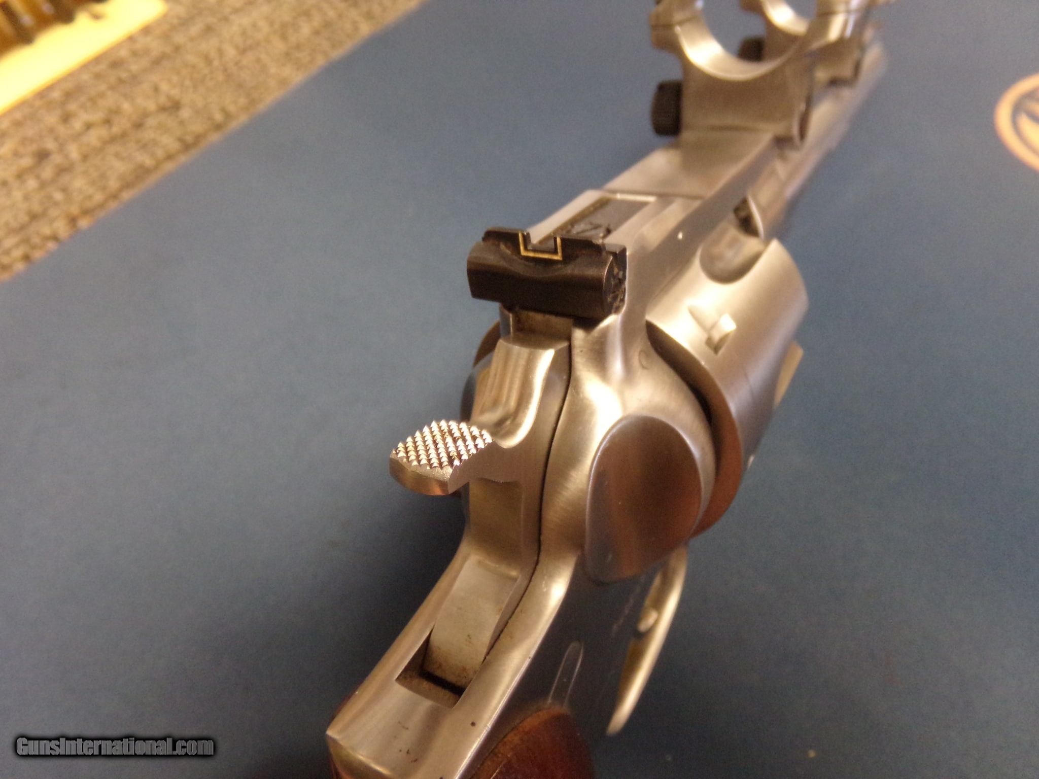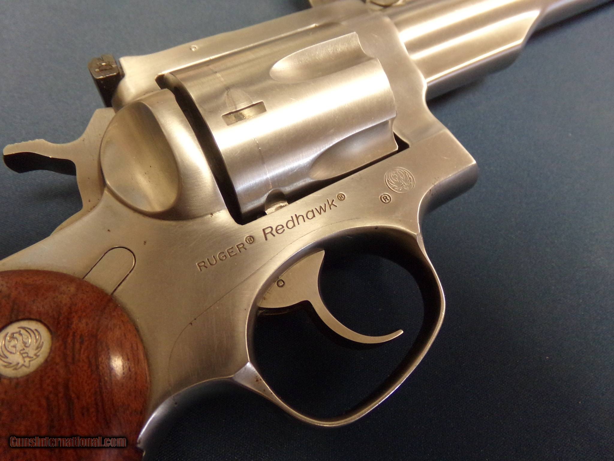 Description: Guns Listing ID: 520285 Ruger Redhawk revolver in 44 magnum...6 shot...7.5\" barrel...Ruger rings included..smooth wood Ruger grips...mfg in 1993...nice wheel gun! SOLD Manufacturer: STURM, RUGER & CO., INC. Model: Redhawk Hunter Caliber Info: 44 MAG Condition: Used - Non-Certified Barrels: 7.5 BARREL Finish: STAINLESS |