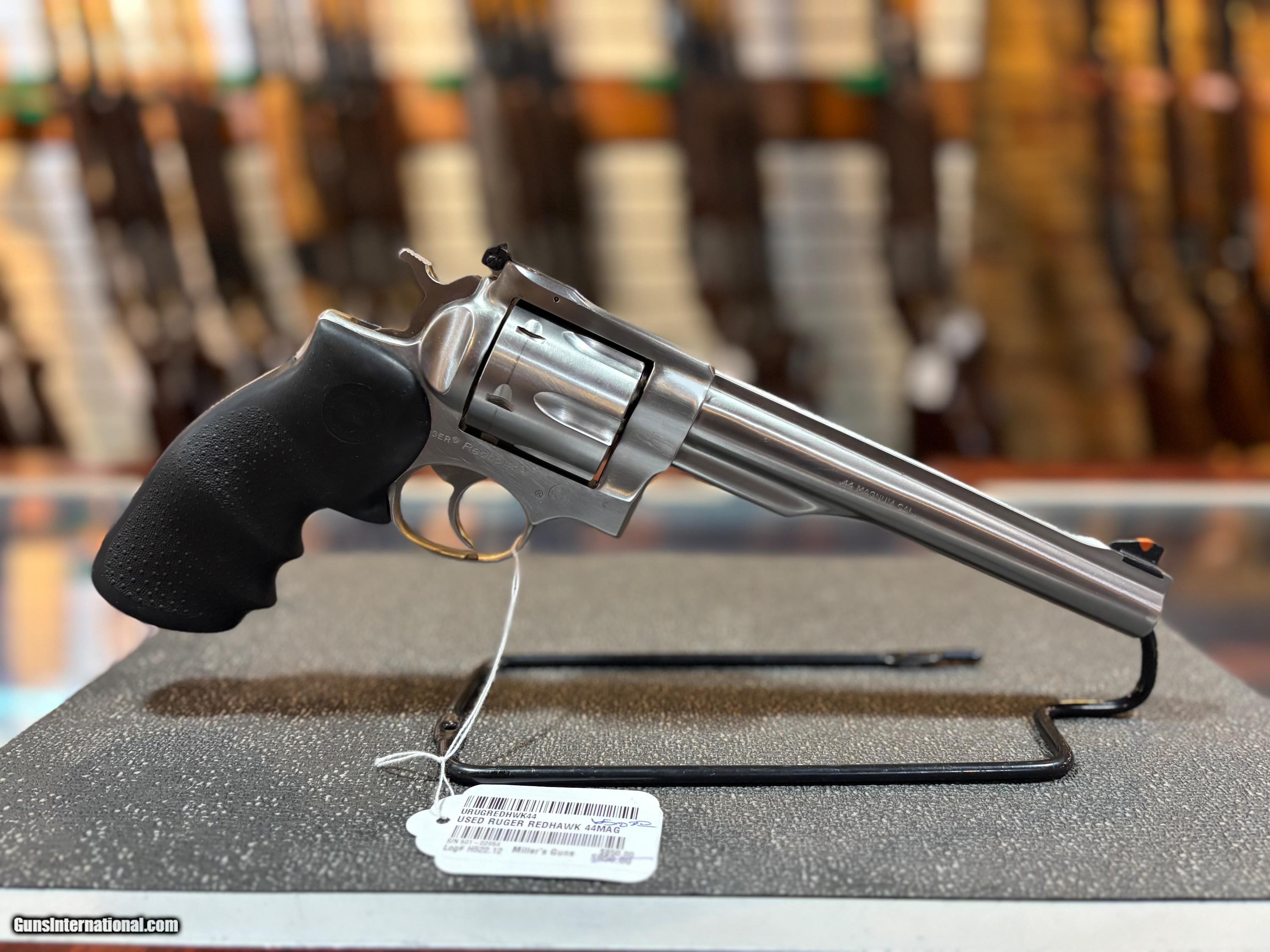 Description: USED Ruger Redhawk revolver .44 Magnum 6 round capacity 7.5" barrel Hogue TAMER monogrip NO BOX or MANUAL SOLD Handgun Caliber: .44 Remington Magnum Manufacturer: Ruger Model: Redhawk Serial Number: 501-02954 Condition: Good |