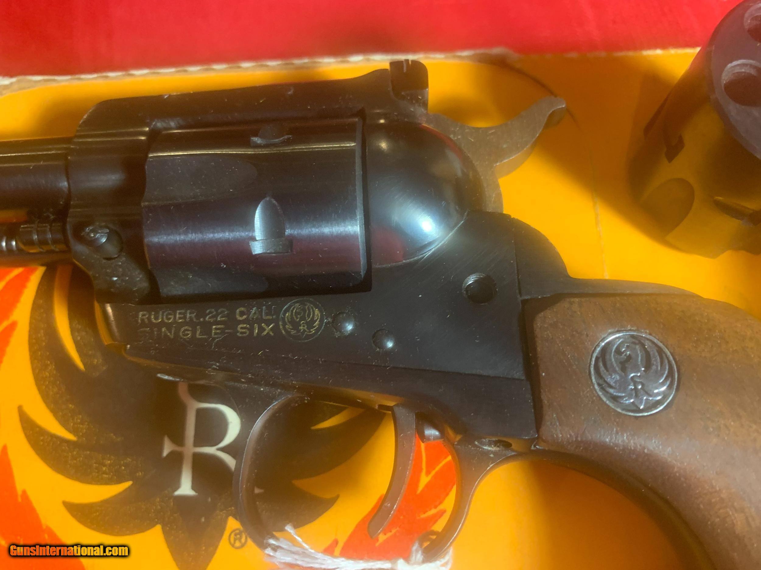 Description: 1968 3 screw Single Six. Factory installed conversion kit. All original parts included. 6 1/2" bbl. Original box and litrature. Blued with walnut ips.Condition is excellent. SOLD Curio/Relic: Yes Handgun Caliber: .22 Long Rifle, .22 WMR (.22 Magnum) |