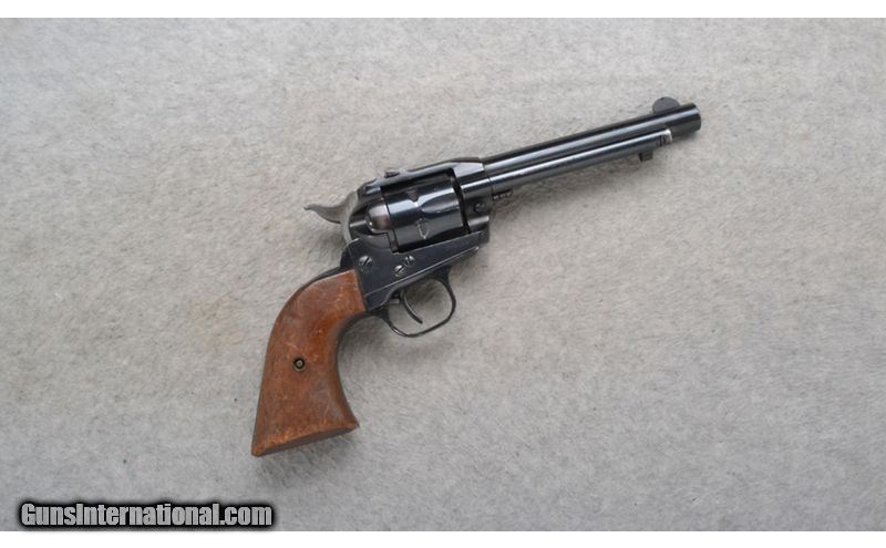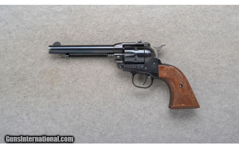 Description: This Ruger Model Single-Six is a 6 shot single action revolver in .22 Cal. It has a 5.5 inch barrel. A blade front sight and notch rear sight. The grip is a smooth hardwood. S/N 133684 .22 Long Rifle SOLD Chambers: 6 shot. Metal Condition: Good. Has a little blue wear spots and minor use marks. Wood Condition: Fair. Has wear and handling/use marks. Bore Condition: Excellent. Barrels: 5.5 inch. Triggers: Single Action. Weight: 32 oz Sights: Blade front. Notch rear. Item Location: Richfield, WI |
