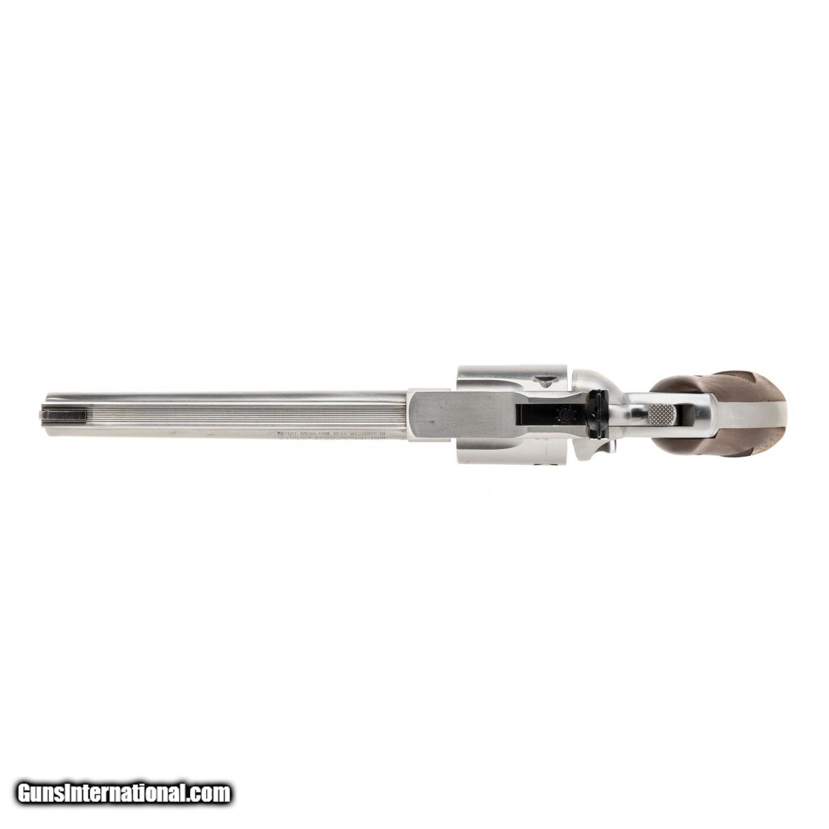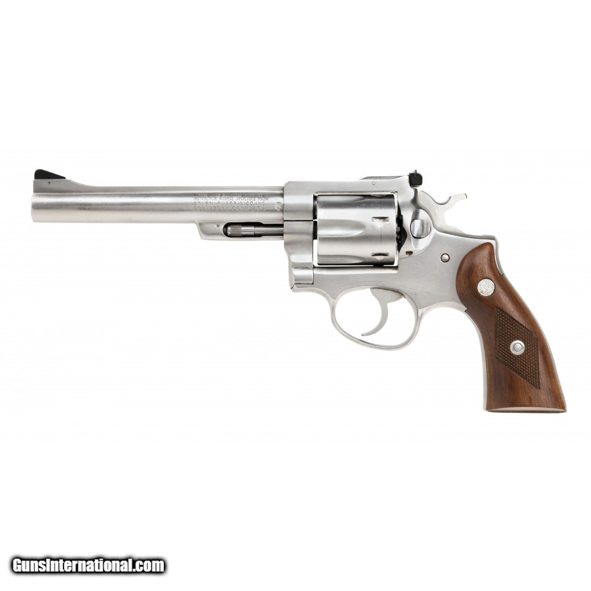Description: " Double-action stainless revolver with 6"" barrel. Overall excellent condition. SOLD |