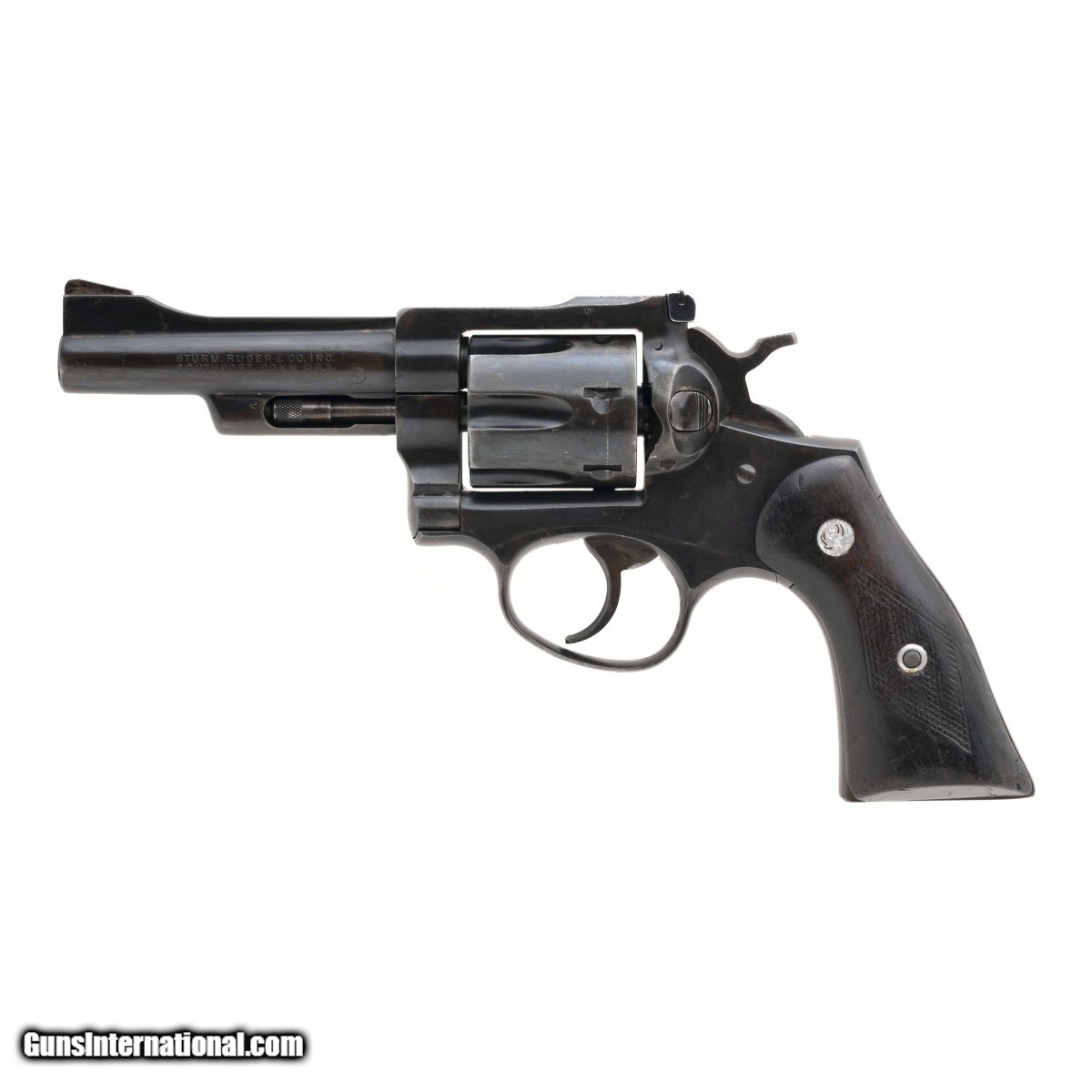Description: " SN: 150-25184. Circa 1975, .357 Magnum with a 4"" barrel. Bore is very good. Duty size double/single action revolver, adjustable rear sight and checkered wood grips. Overall condition is good. SOLD |