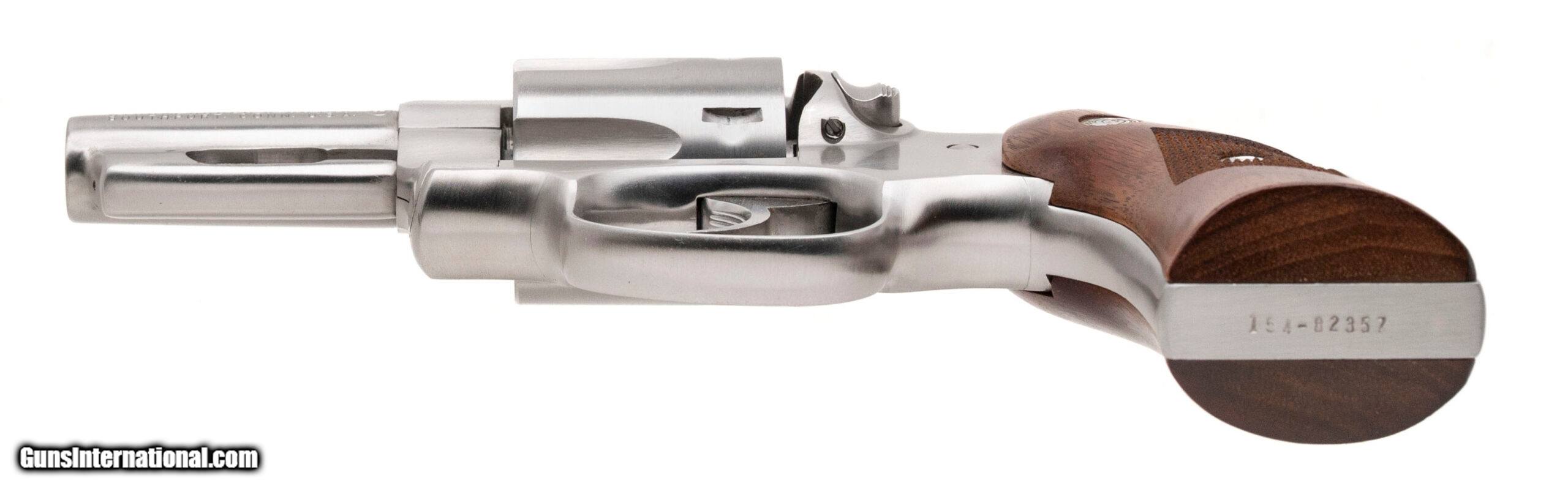 Description: "SN: 154-82357. Made in 1979, .357 Magnum with a 2.75"" barrel. Bore is bright with strong rifling. Stainless steel snubnose revolver with diamond checkered wood grips. Overall condition is very good. SOLD |
