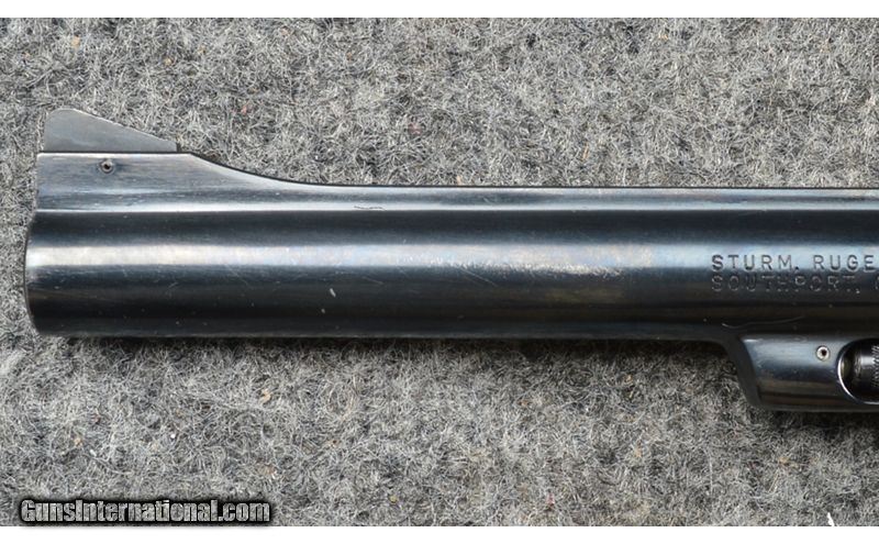Description: This Ruger revolver is in excellent condition. The barrel shows light wear to the bluing with a thinning of the bluing around the muzzle. The action cycles smoothly, the bore and rifling are clean. According to Ruger, this revolver was manufactured circa 1977. .357 Mag./ .38 Special SOLD Metal Condition: Excellent Wood Condition: Excellent Bore Condition: Excellent Barrels: 6 inch Triggers: DA/SA Weight: 1.06 Lbs. Sights: Fixed front post with adjustable rear. Item Location: Gainesville, VA |