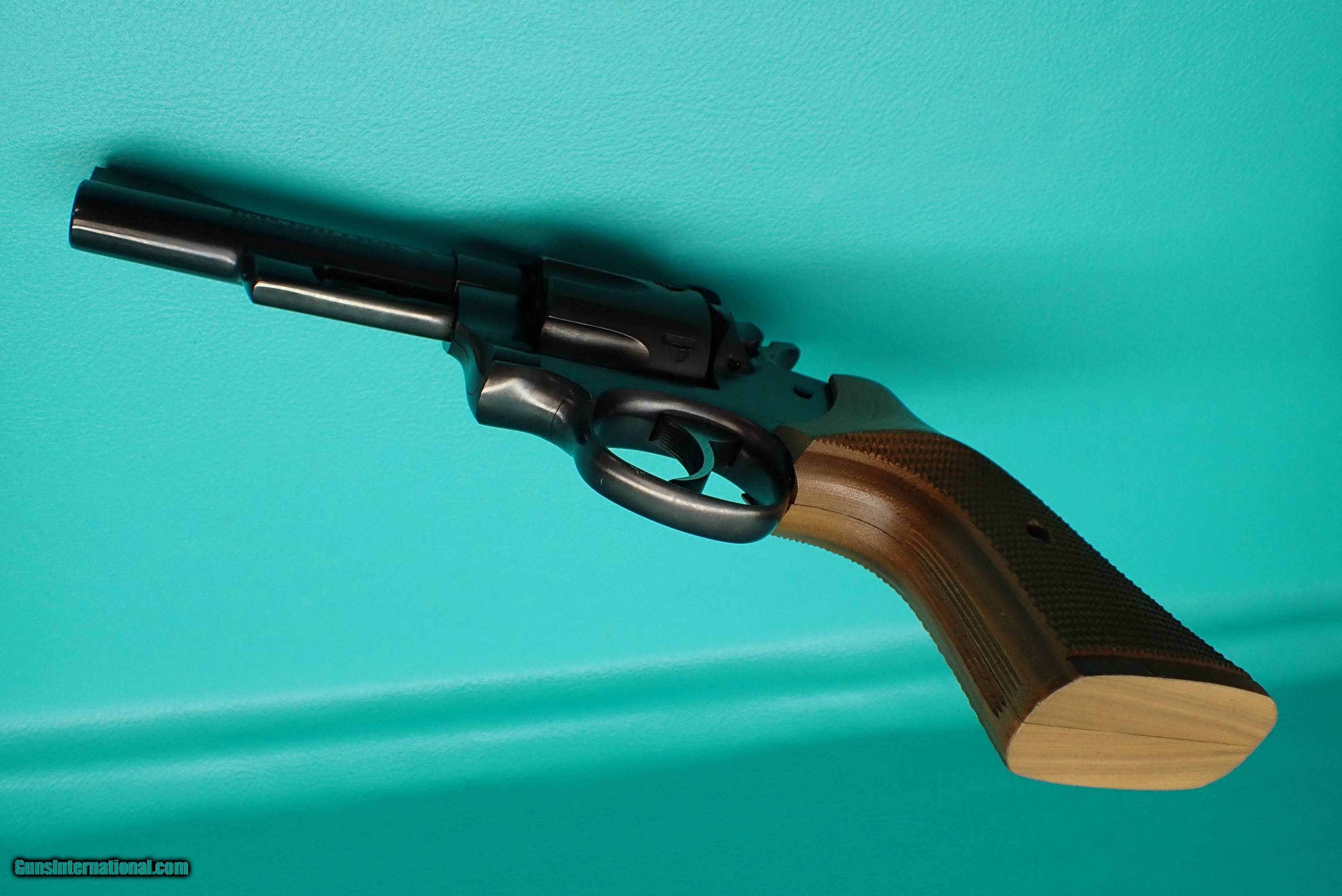 Description: ***SOLD*** Ruger Security Six .357 Magnum revolver, dated to 1973. This revolver features a solid steel construction with a blued finish, aftermarket Herretts grips, an adjustable rear sight, and both DA and SA firing. The revolver is in great functional condition with solid timing and lockup, smooth function, and brilliant bore and chamber surfaces. The cosmetic finish is excellent with only minor finish wear. Please refer to the photos for overall condition. A great pistol for the range! No handgun sales in MA. Shipping $25.00 SOLD Handgun Caliber: .357 Magnum Manufacturer: Ruger Model: Security Six Serial Number: 150-47238 |