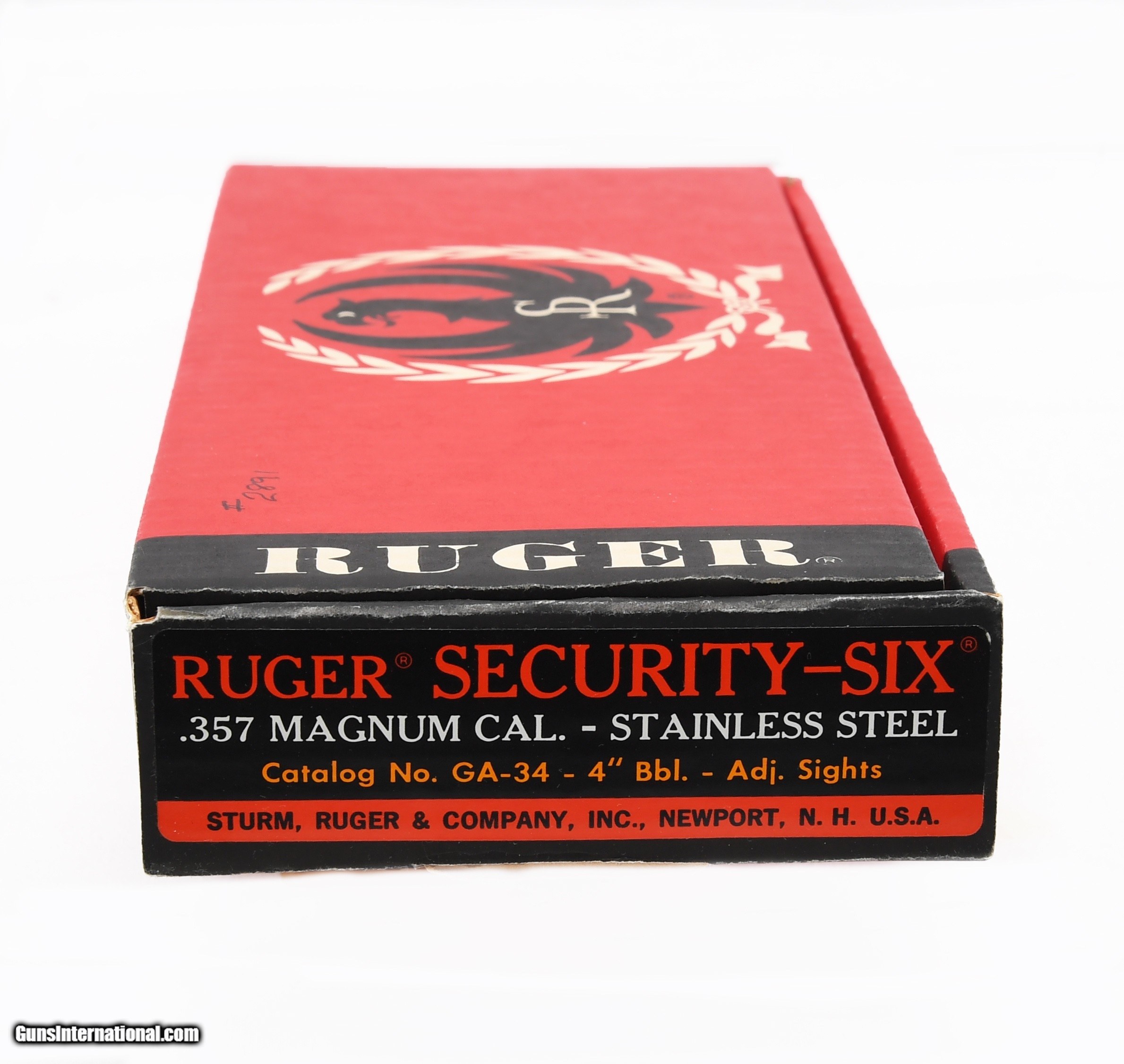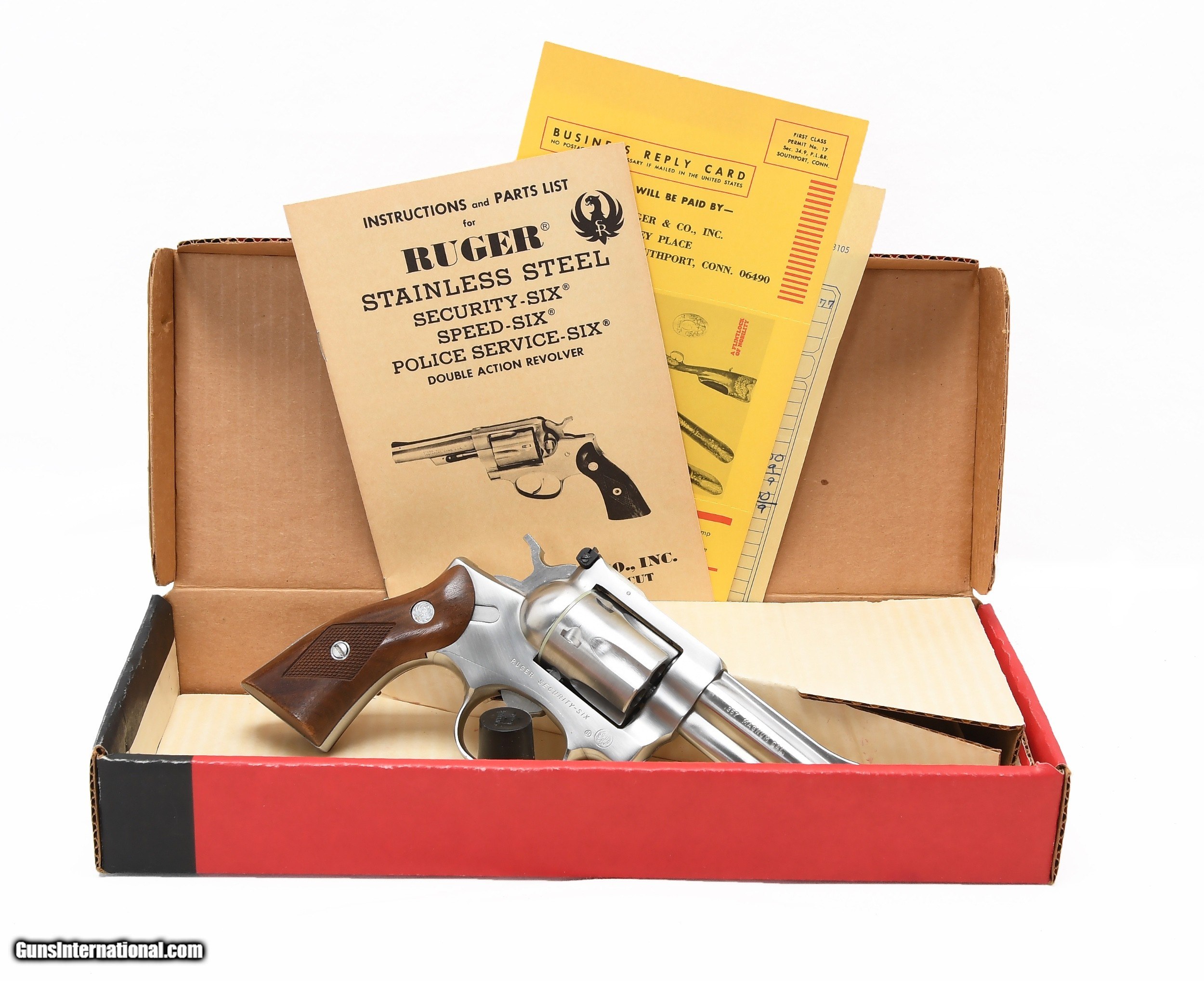 Description: Ruger Security Six double action revolver. .357 magnum, 4" stainless steel. As new in the box with all paperwork. This Ruger Security Six was bought new in 1977 and remained in the possession of the original owner until just recently. SN: 152-70465 SOLD |