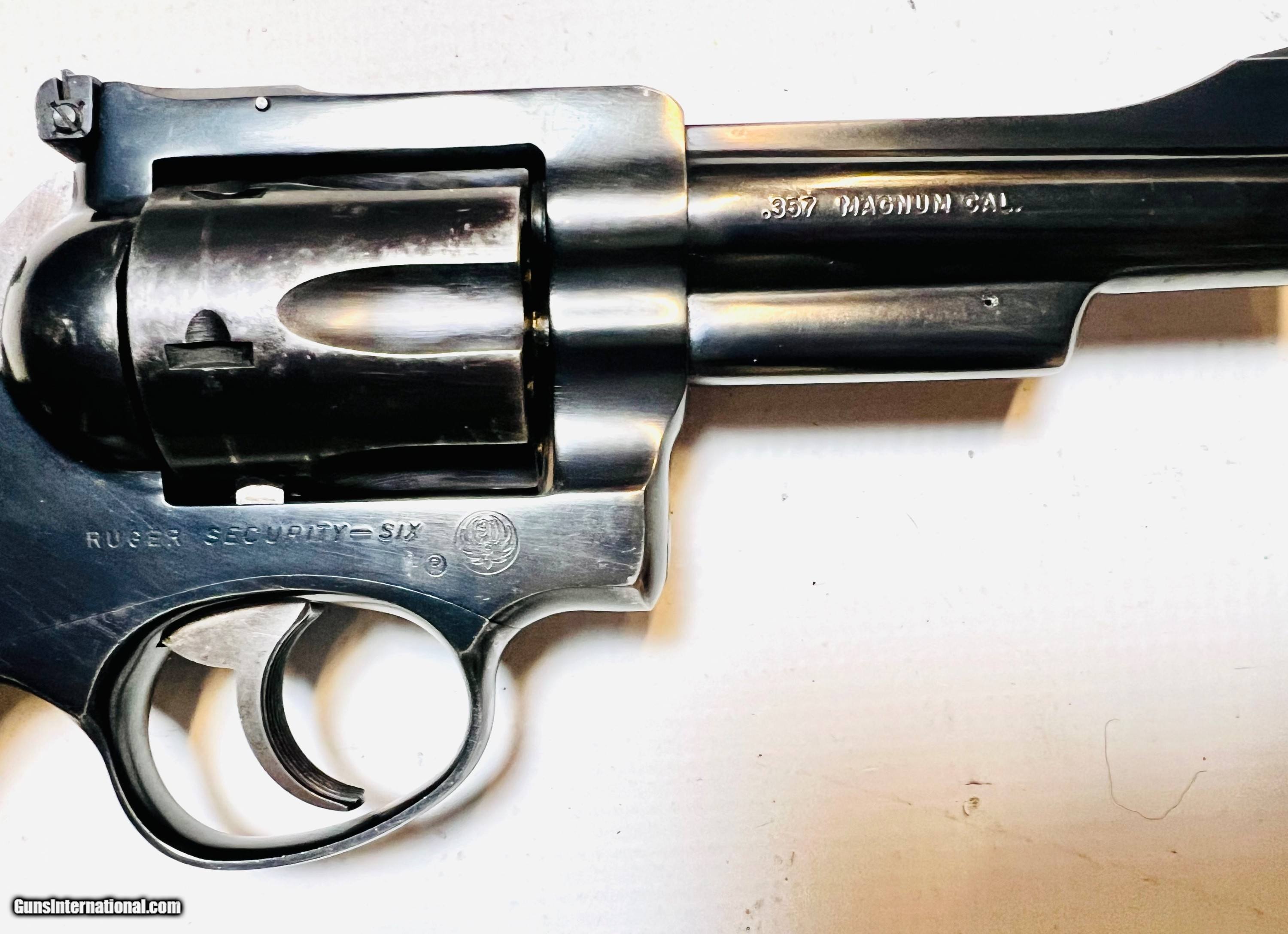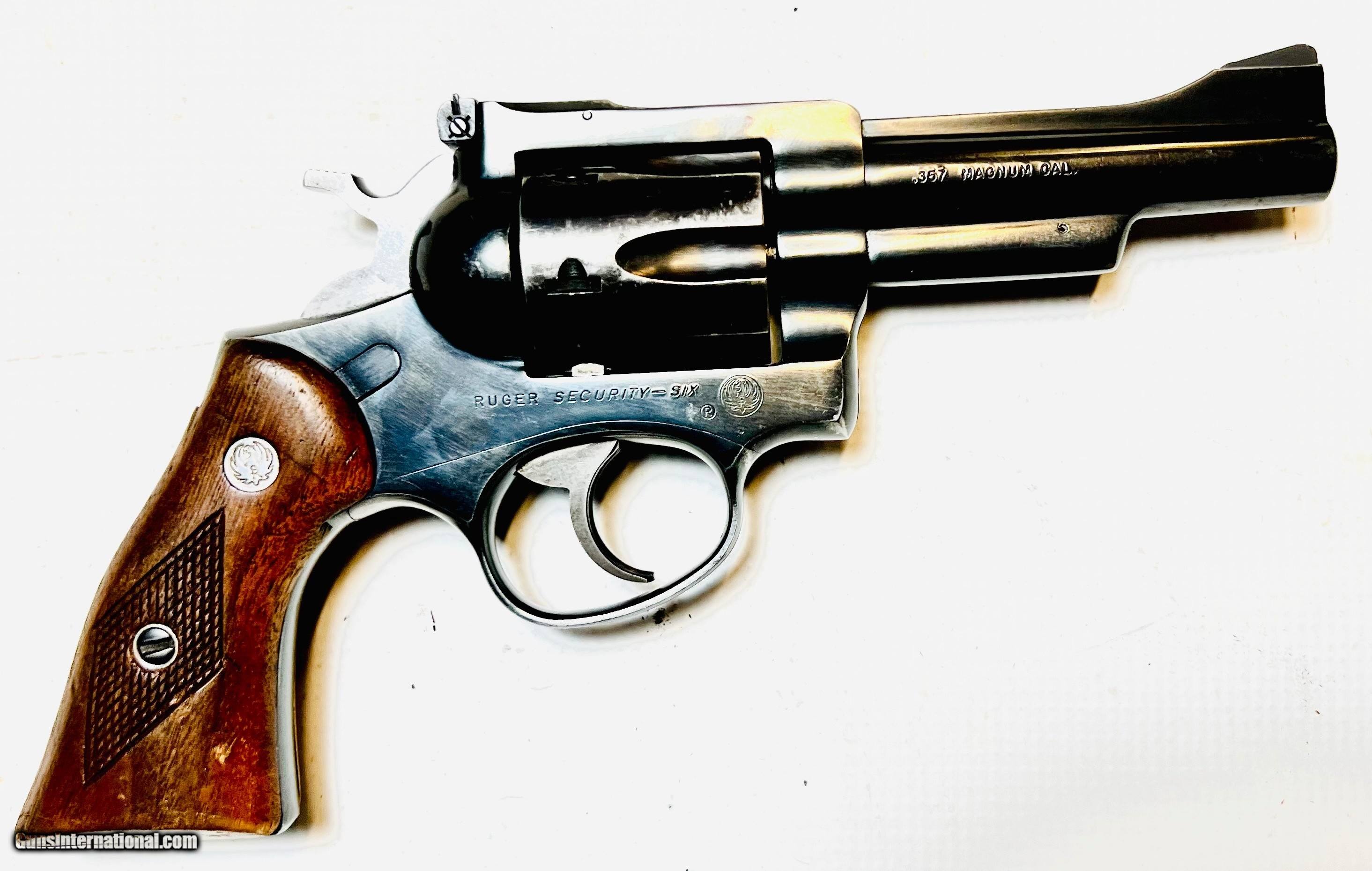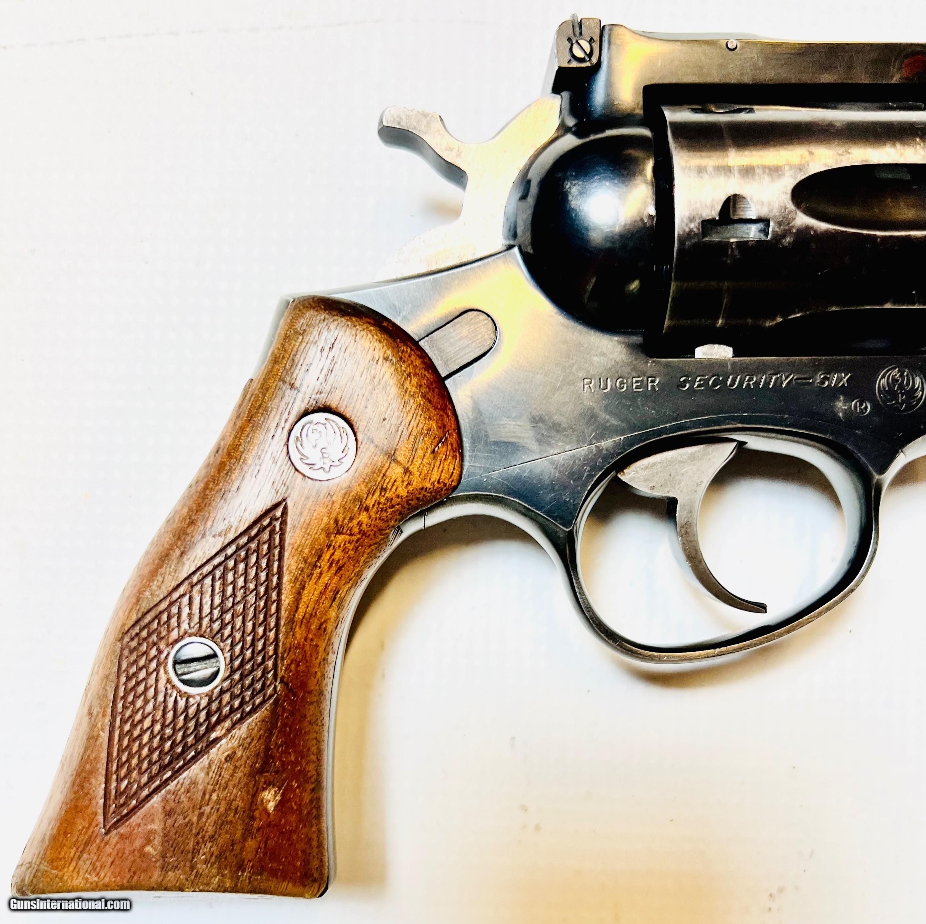 Description: Classic Ruger Security-Six double-action revolver chambered in .357 Magnum. Early production example with factory walnut grips and rich original blued finish. Excellent mechanical condition throughout. Details/Specs: