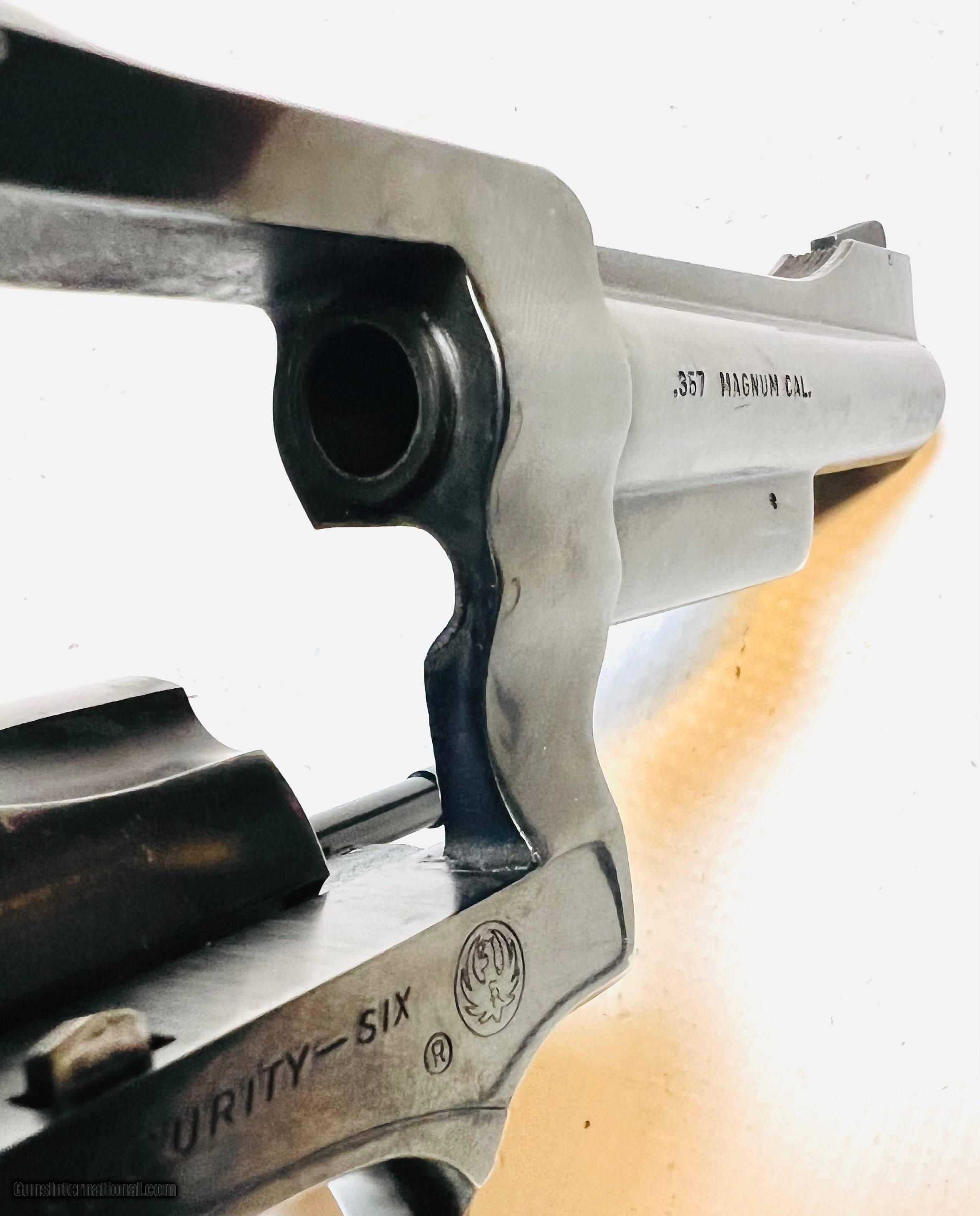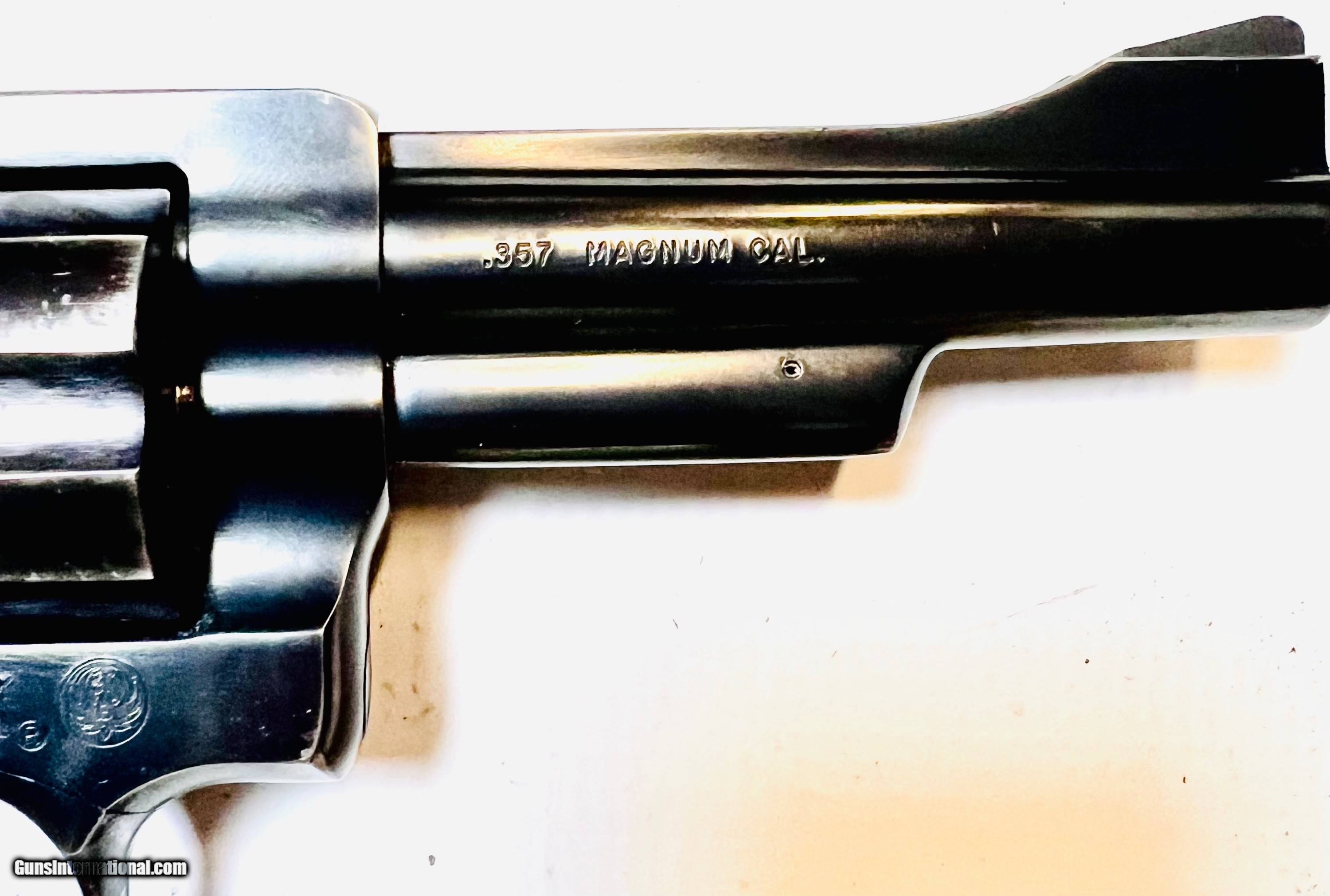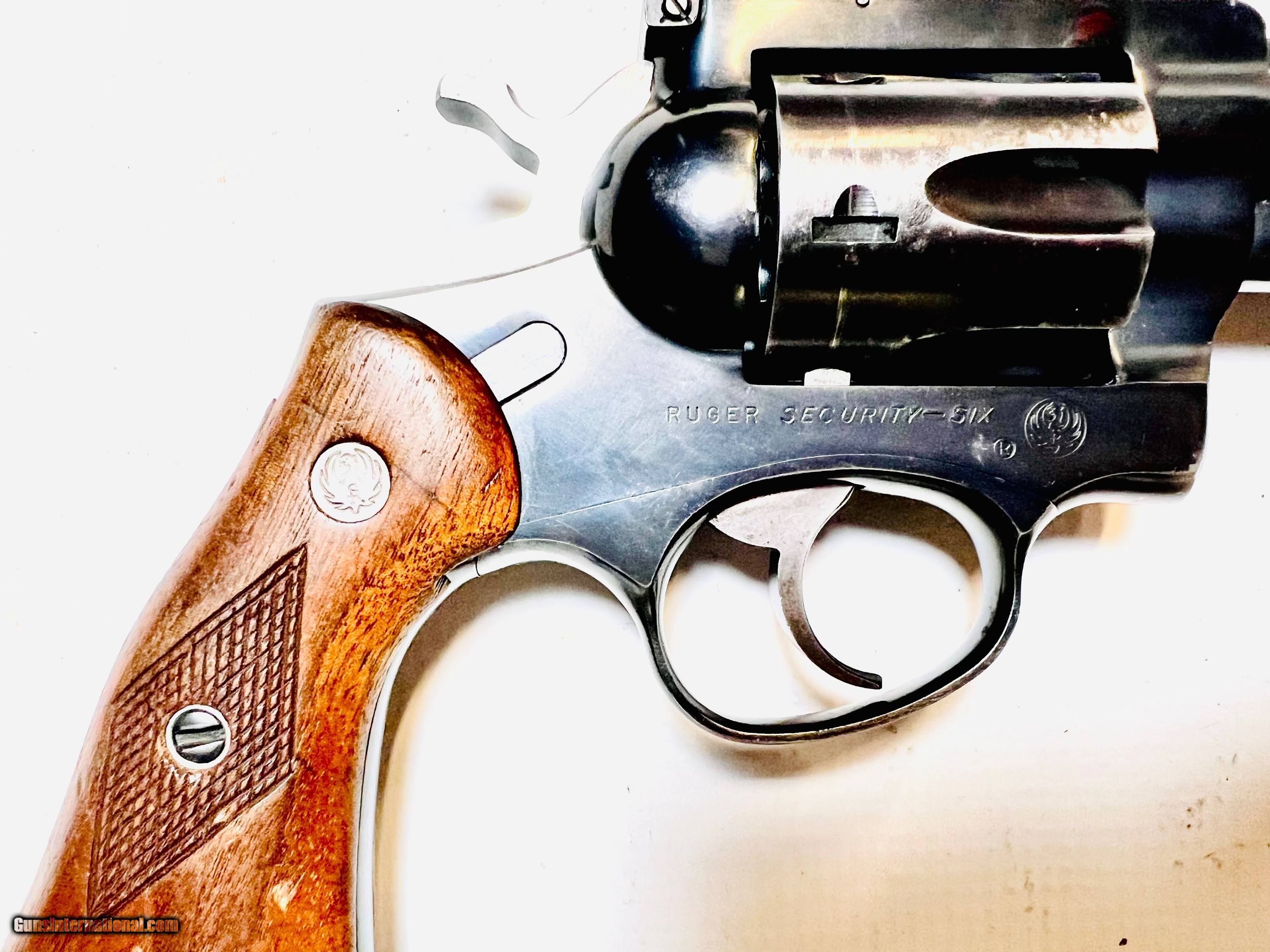 Description: Classic Ruger Security-Six double-action revolver chambered in .357 Magnum. Early production example with factory walnut grips and rich original blued finish. Excellent mechanical condition throughout. Details/Specs: