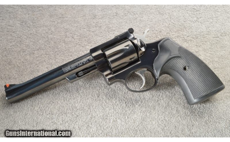 Description: Ruger Security Six chambered in .357 Magnum with 6" barrel. Ruger's indicates Serial number 159-08973 was made in 1982 and features a red ramp front sight with an adjustable rear, one piece rubber Pachmayr diamond-checkered grip and square butt. Overall condition is about 95% + with only light evidence of firing and no indications of holster wear. Comes with the factory matched box and manual. .357 Mag SOLD Chambers: 6 shot revolver. Metal Condition: 95% +. Bore Condition: Bright strong bore. Barrels: 6" barrel. Triggers: SA/DA. Weight: 2.75 lbs Item Location: Owatonna, MN |