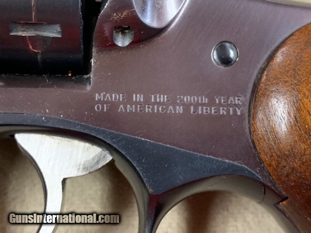 Description: A minty Ruger Security Six .357 Mag Revolver with a perfect bore and chambers. Revolver has been fired but well taken care of. Revolver is marked MADE IN THE 200th YEAR OF AMERICAN LIBERTY on the left side of the frame as shown in the photos. SOLD Handgun Caliber: .357 Magnum |