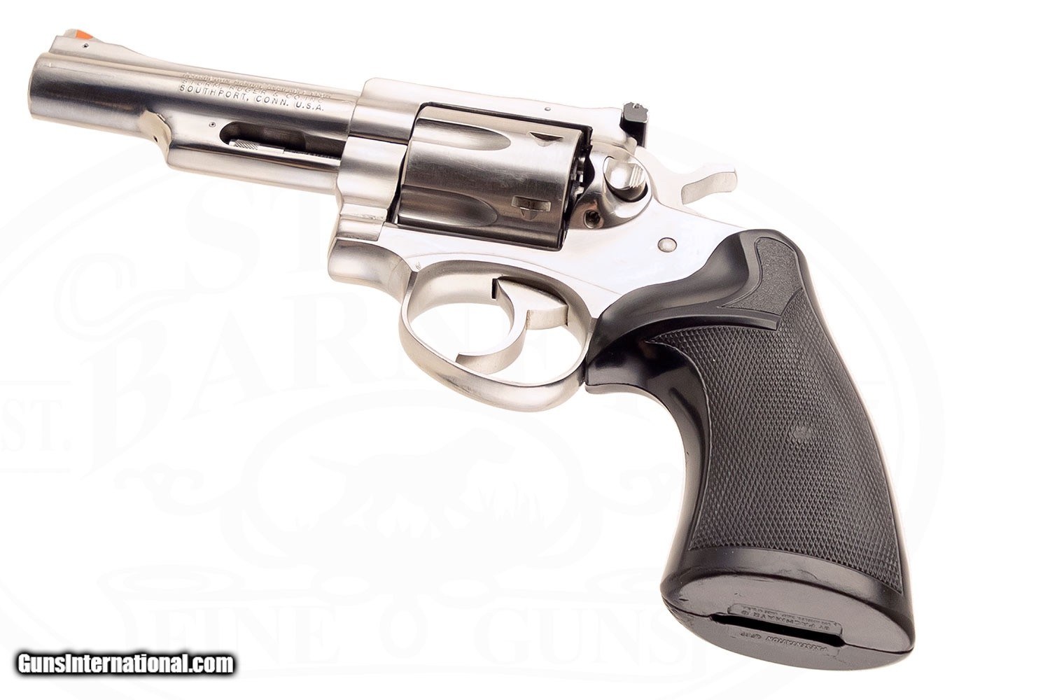 Description: SN# 161-31XXX STAINLESS FINISH 4" BARREL WITH ADJUSTABLE REAR AND RAMPED FRONT SIGHT 6 ROUND CAPACITY RUBBER GRIPS EXCELLENT CONDITION WITH SOME HANDLING MARKS TO FINISH SLIGHT TURN RING ON CYLINDER MAKERS PLASTIC BOX; NO PAPERWORK SOLD |