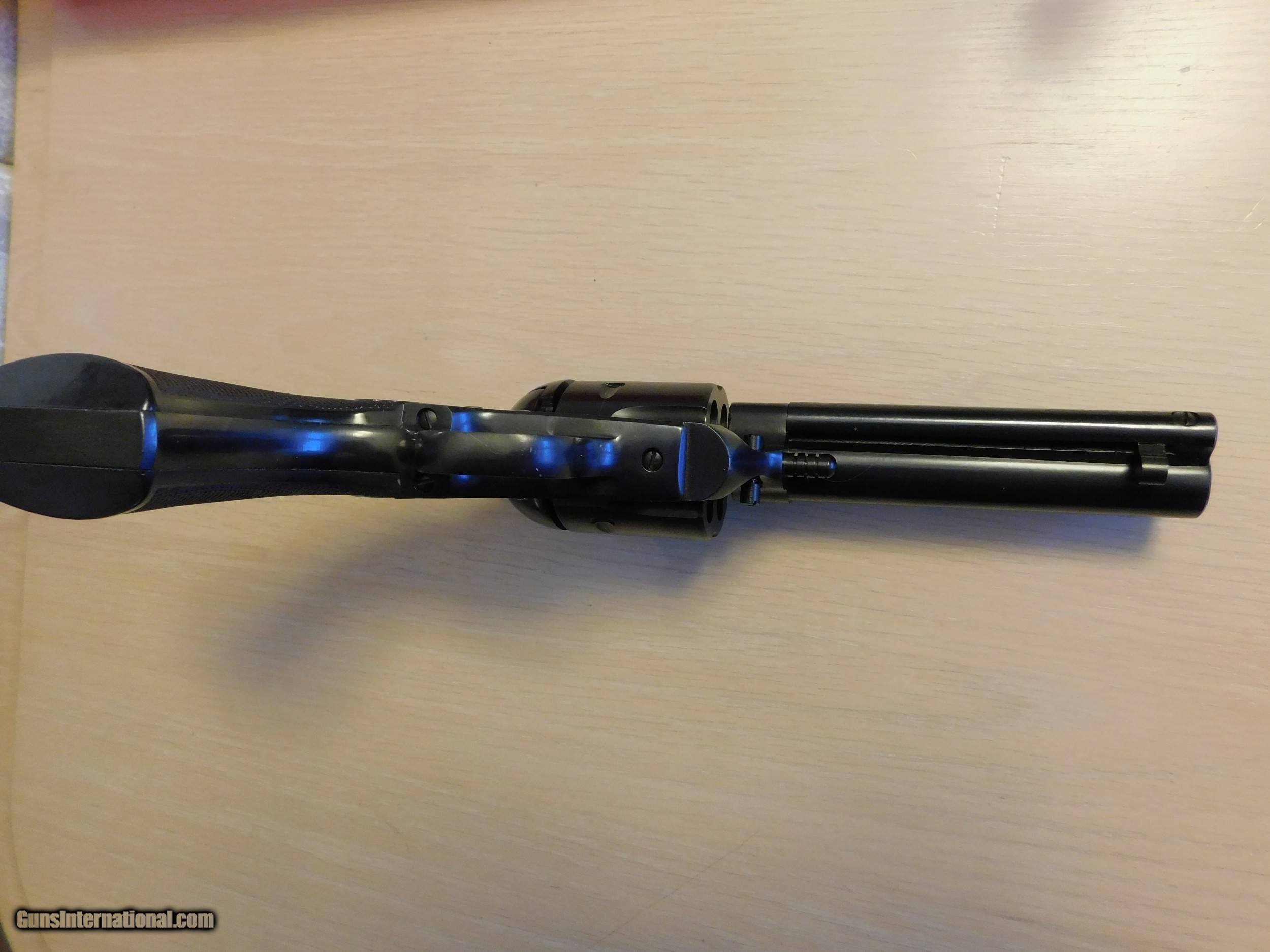Description: Sold- 50th anniversary ruger 357 new in the box..never fired. flat top small frame. This ruger reverts to the original pre 1972 VR-3 sized grip frame and grip panels.only offered in 2005. Has special rollmark 50th year Blackhawk 1955 to 2005. barrel is 4-5/8 inches. Frame has a minor discoloration above left grip. Frame appears to be blued steel not a alloy. Will need a FFL to purchase. SOLD Manufacturer: Ruger Model: 50th anniversery Barrel Length: 4-5/8 Bore: new Condition: excellent + Metal Condition: excellent no wear Bore Condition: new Finish: deep blue |