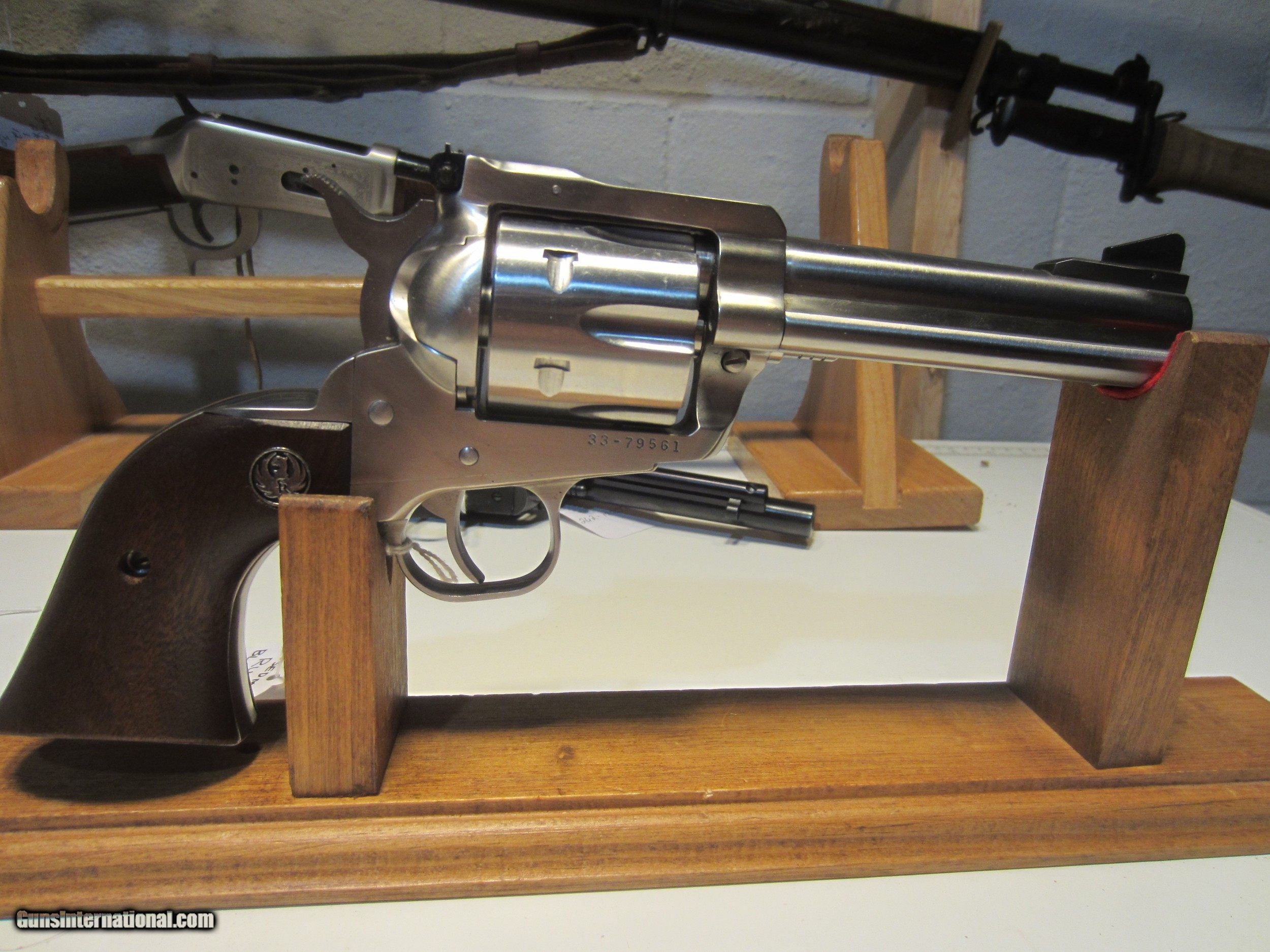 Description: *************SOLD***********RUGER BLACKHAWK 357 MAG BARREL LENGTH 4 3/4" STAIINLESS STEEL LIKE NEW LOOKS UNFIRED NO BOX OR PAPERS. WANT TO PURCHASE CALL SHOP 716-941-3946 SERIAL NUMBER 33-79561 SOLD |