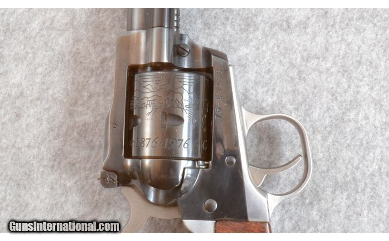 Description: Commemorative revolver of Colorado being the Centennial State with special box. Unfired. .22 Long Rifle SOLD Chambers: Six shot cylinder. Metal Condition: Excellent with engraving highlighting Colorado as the Centennial State and being one hundred years old in 1976. Wood Condition: Excellent. Barrels: 6.5 inches. Triggers: Standard stainless. Sights: Notch rear and blade front. Item Location: Lone Tree, CO |