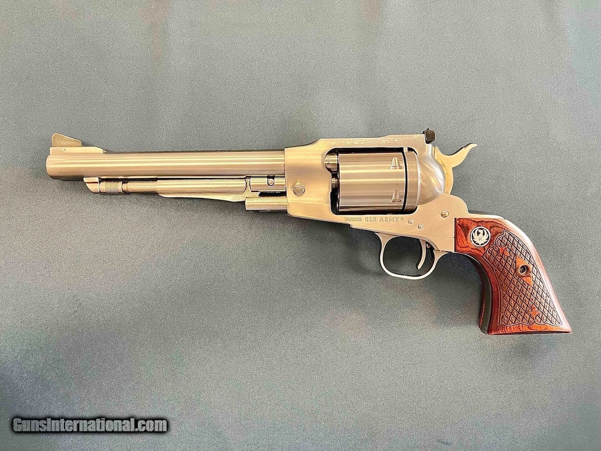 Description: Guns Listing ID: 511812 Type: REVOLVER Make: RUGER Model: OLD ARMY Caliber: 45 COLT Condition: GREAT/ UNFIRED SOLD Manufacturer: RUGER Model: OLD ARMY Caliber Info: 45 COLT Condition: Used - Non-Certified Barrels: 7.5 BARREL Finish: STAINLESS |