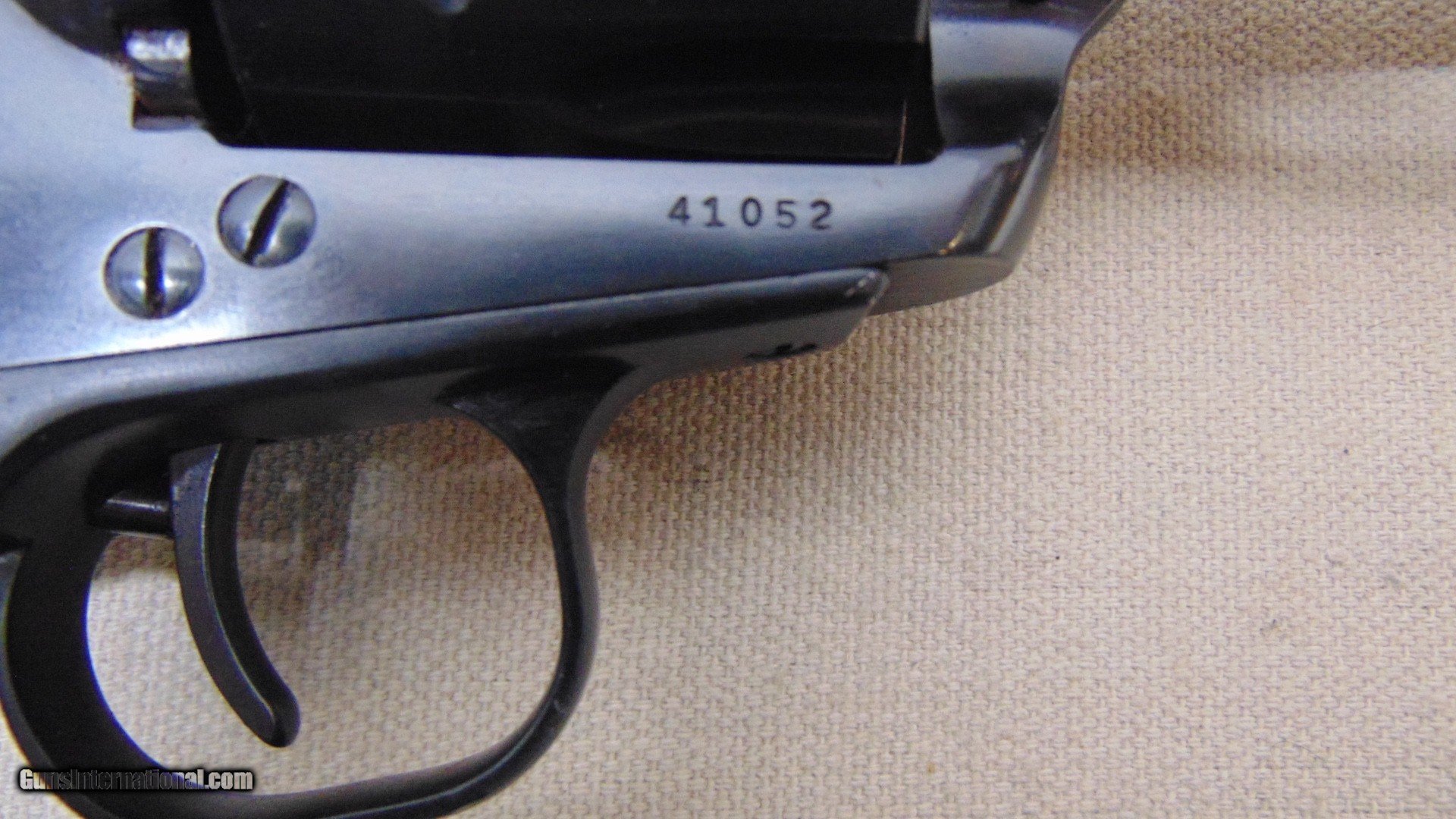 Description: !!! SOLD !!!Ruger OM Flat Top Blackhawk,357 Magnum,4-5/8" Barrel,Original Unconverted Action, Walnut Grips with Ruger Black Eagle, Excellent Condition, 97% Bluing, Some Minor Nicks on Grips,With a Box That is Correct For Era with Correct Model Number But not Numbered to Gun, Circa 1961!! Store Hours-Thurs-Fri-10AM-8PM Sat-9AM-12PM All Other Times Please Leave a Message, Thank You! Lower 48 State Sales Only No California Sales 6% Pa Sales Tax Applicable Shipping $35.00 SOLD Handgun Caliber: .357 Magnum Manufacturer: Ruger Model: OM Flat Top Blackhawk Serial Number: 41052 Barrel Length: 4-5/8 |