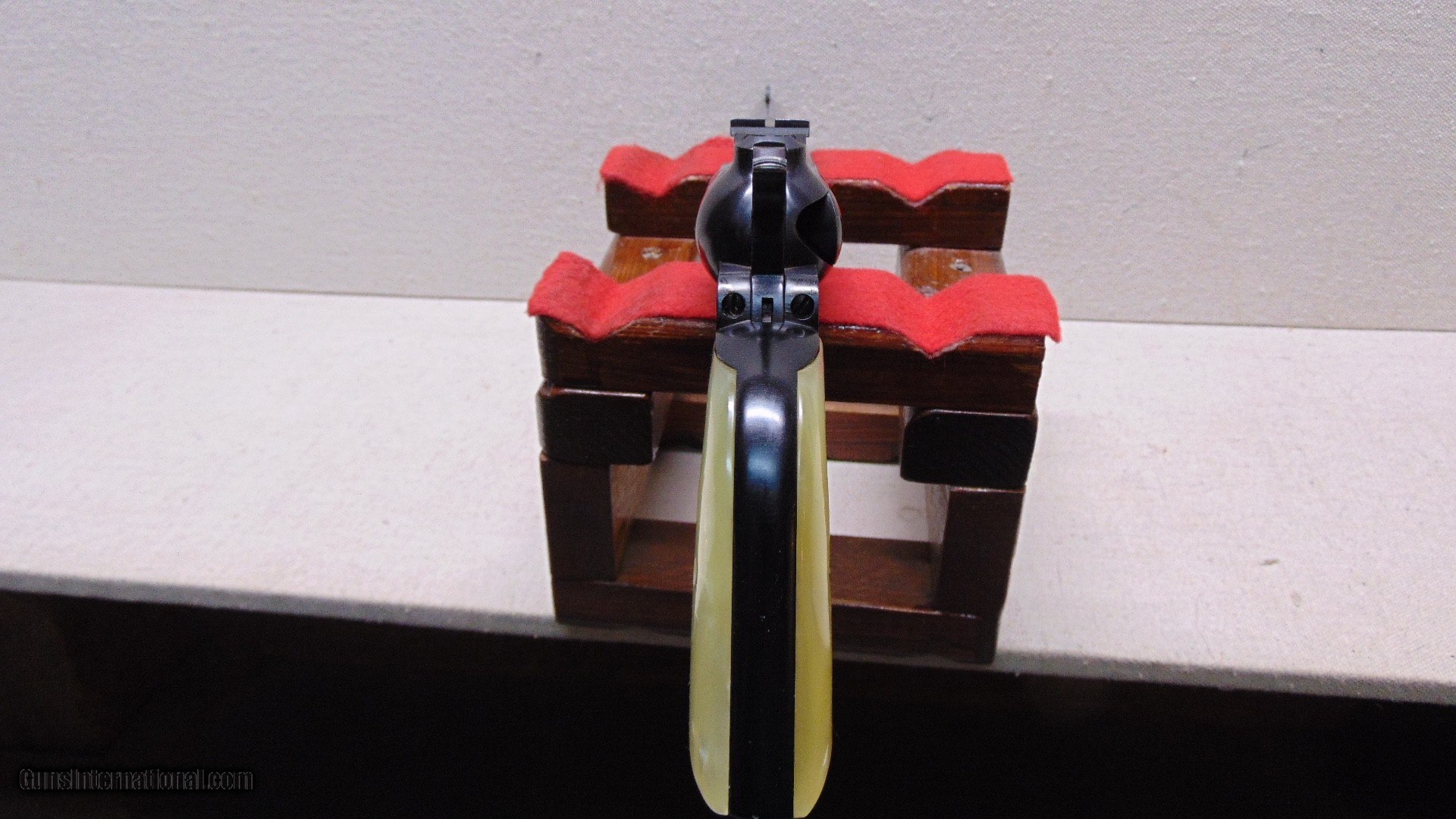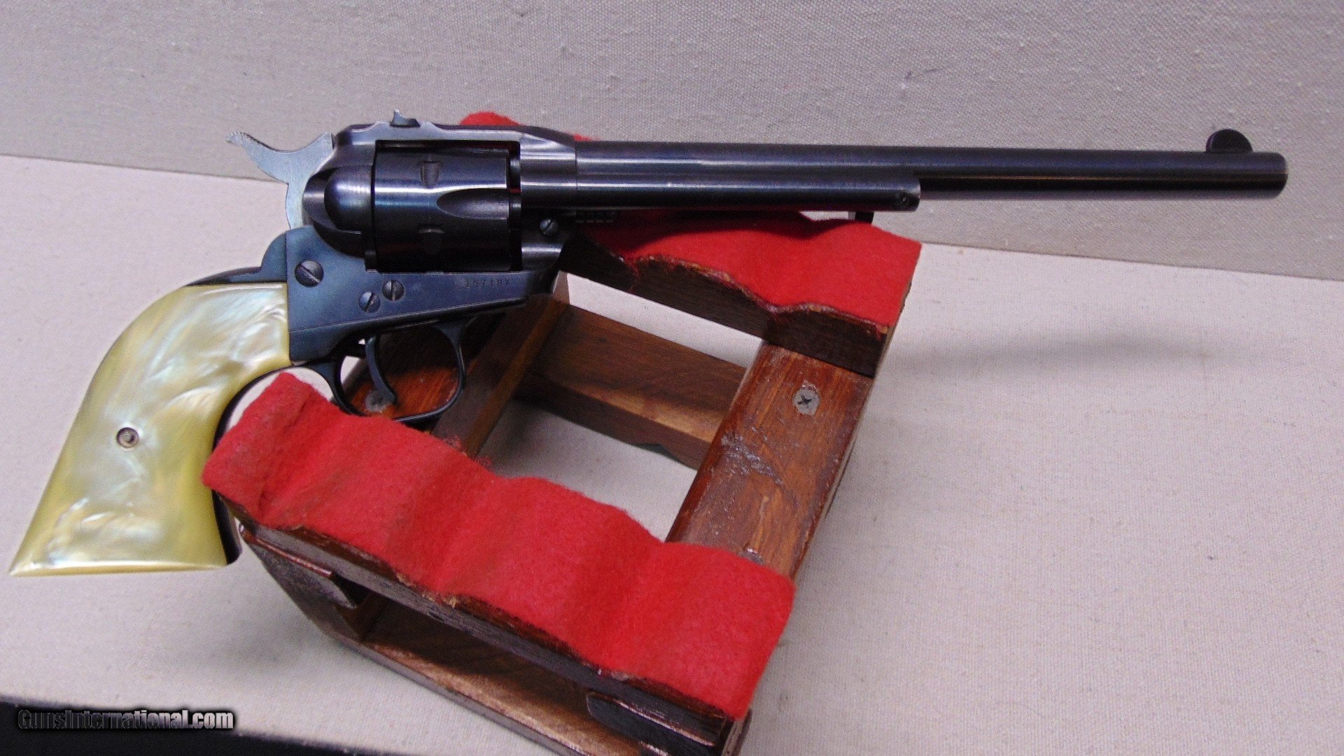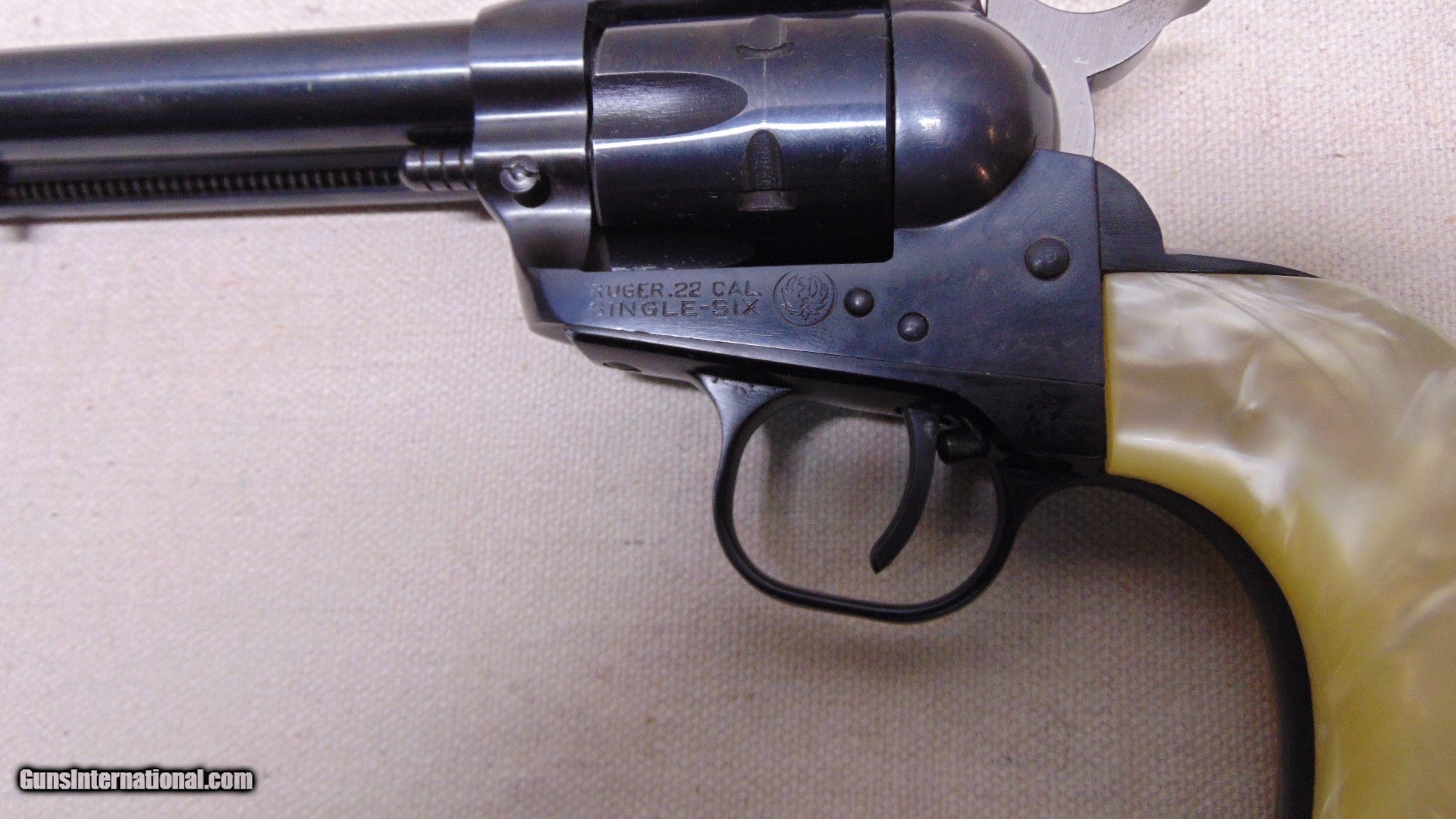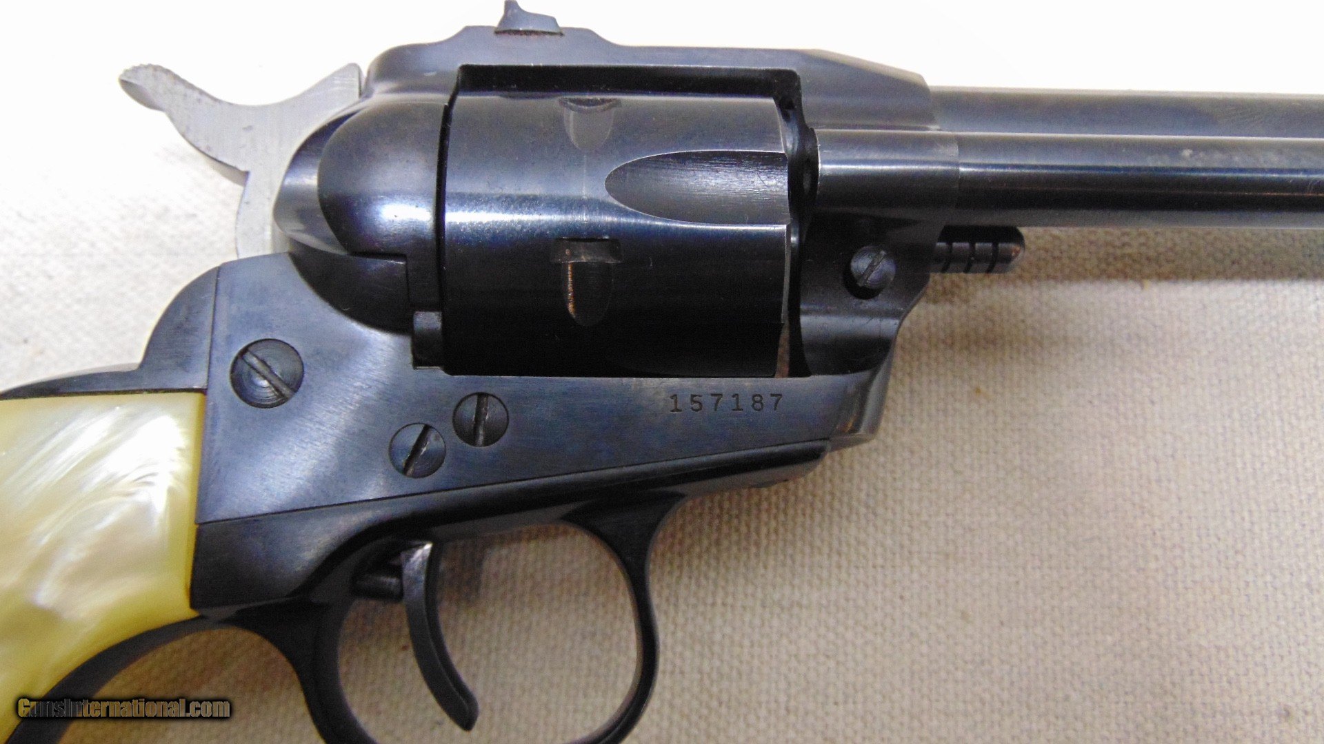Description: Ruger OM Three Screw Single-Six,22LR,9-1/2" Barrel,97% Bluing,Pearl Like Grips,Original Not Converted Action, Excellent Condition and Bore, Circa1960!! Store Hours-Thurs-Fri-10AM-8PM Sat-9AM-12PM All Other Times Please Leave a Message, Thank You! Lower 48 State Sales Only No California Sales 6% Pa Sales Tax Applicable Shipping $35.00 SOLD Handgun Caliber: .22 Long Rifle Manufacturer: Ruger Model: Single -Six Serial Number: 157187 Barrel Length: 9-1/2 |
