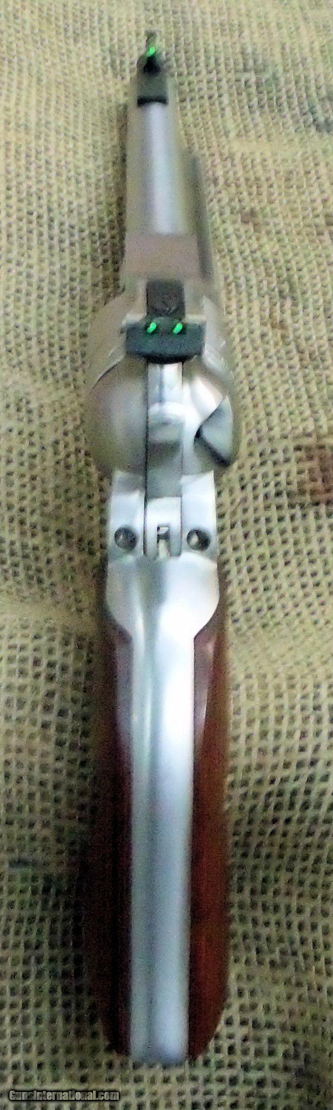 Description: Up for sale is a very nice(99% overall condition) Ruger Single-9 single action revolver model 08150 in 22WMRF cal. This revolver features a 6.5 inch barrel, stainless steel metal, laminated wood factory grips, adj. rear sight, and fiber optic insert frt. sight. The revolver comes in its org. factory syn. case with owners manual and a lock. J && M accepts Visa, MC, and Discover Card via telephone at 205-695-7574 from 8AM to 5PM CDT, Mon-Sat and also Cert. Ck. or MO mailed to J&M Trading Post PO Box 1375 Vernon, AL 35592. The listed price reflects a 3% cash equivalent discount. A $40.00 shipping and ins. chg. will be added to the purchase price. The revolver must be shipped to a FFL dealer. SOLD Handgun Caliber: .22 WMR (.22 Magnum) Manufacturer: Ruger Model: KNR-6-9M Barrel Length: 6.5 Condition: 99% |