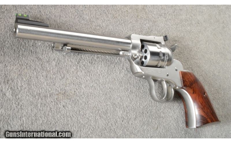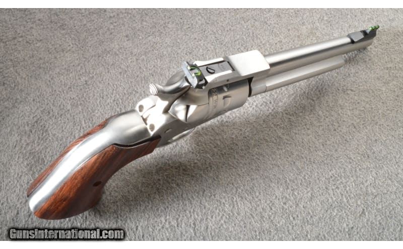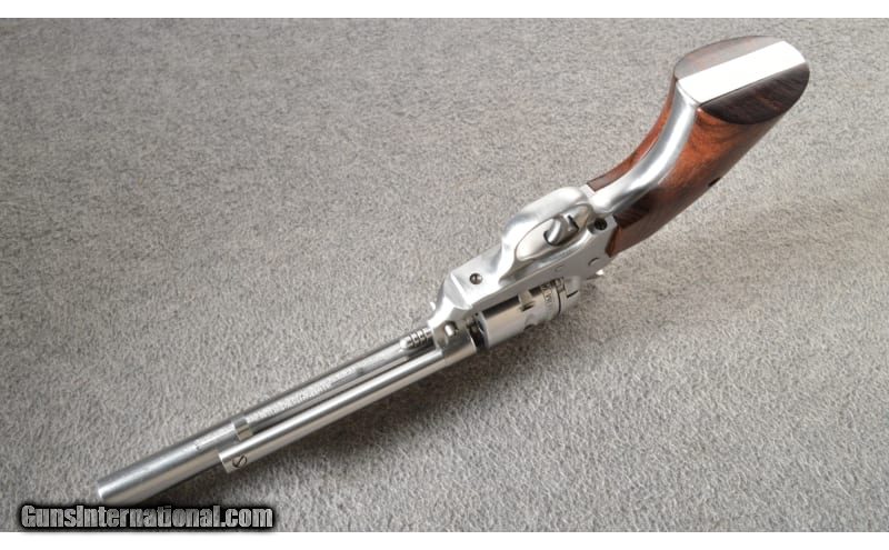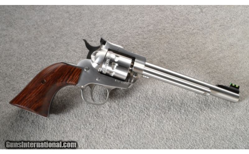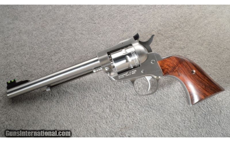 Description: Ruger nine-shot, single-action revolver chambered in .22 Winchester Magnum. Single-Nine models come with a 6.5" barrel, Williams fiber optic sights, hardwood gunfighter grips, cold hammer-forged barrel, transfer bar mechanism and loading gate. Gun only in excellent condition. .22 WMR SOLD Chambers: 9 shot revolver. Metal Condition: Scattered light finish blemishes. Wood Condition: 99% wood grips. Bore Condition: Bright strong bore. Barrels: 6.5" barrel. Triggers: Single action trigger. Weight: 2.25 lbs Sights: "Fix, adjustable. Item Location: Owatonna, MN |