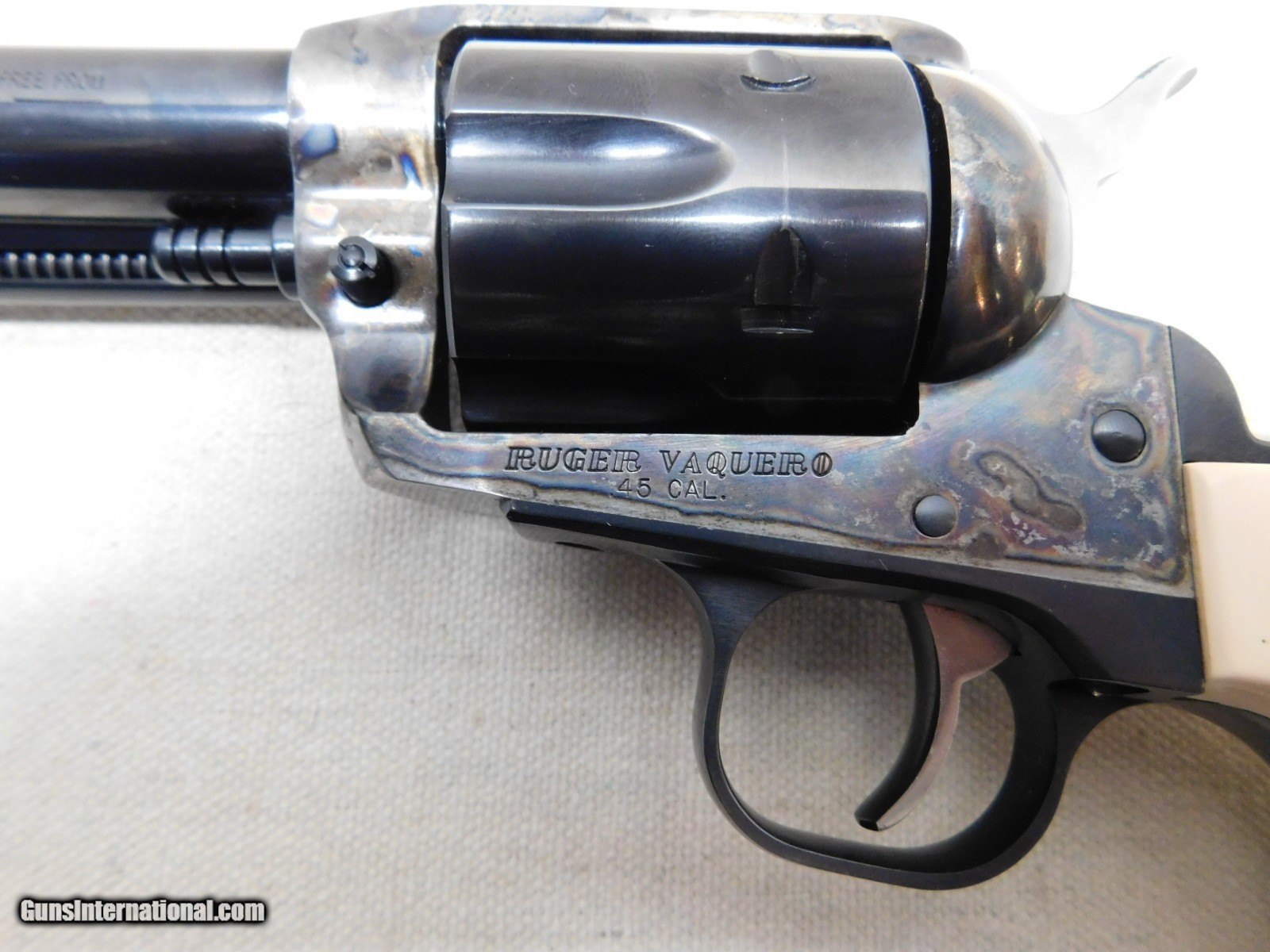 Description: Ruger Vaquero Revolver, 45 Colt, 5-1\2" Barrel, Blued,Factory Grips and Faux Ivory Grips, Excellent Condition,Light Turn Ring, with Box and Some Papers, Shipped 1995!! Store hours Thurs-Fri-10AM-8PM Sat-9AM-12PM All Other times please leave a message,Thank You! No California Sales Lower 48 State Sales only Pa. Residents 6% Sales Tax applicable Shipping $ 35.00 SOLD Handgun Caliber: .45 Colt Manufacturer: Ruger Model: Vaquero Serial Number: 55-58588 Barrel Length: 5-1\2 |