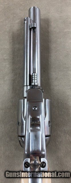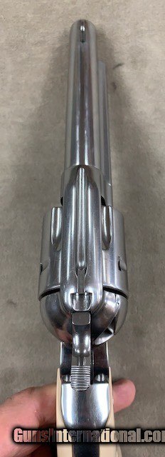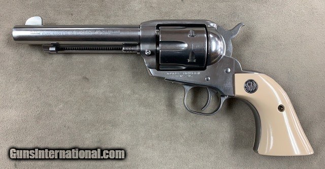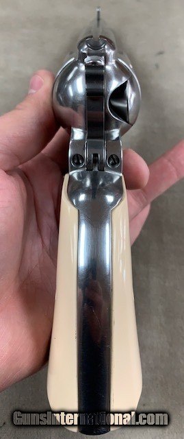 Description: This an original Ruger Stainless Vaquero Revolver in .44 Magnum caliber. These were a bit bigger and more robust than the current "New Vaquero" that Ruger is producing. Revolver has been fired but is in excellent overall condition as the photos show, with Ruger simulaed ivory grips with medallians. SOLD |