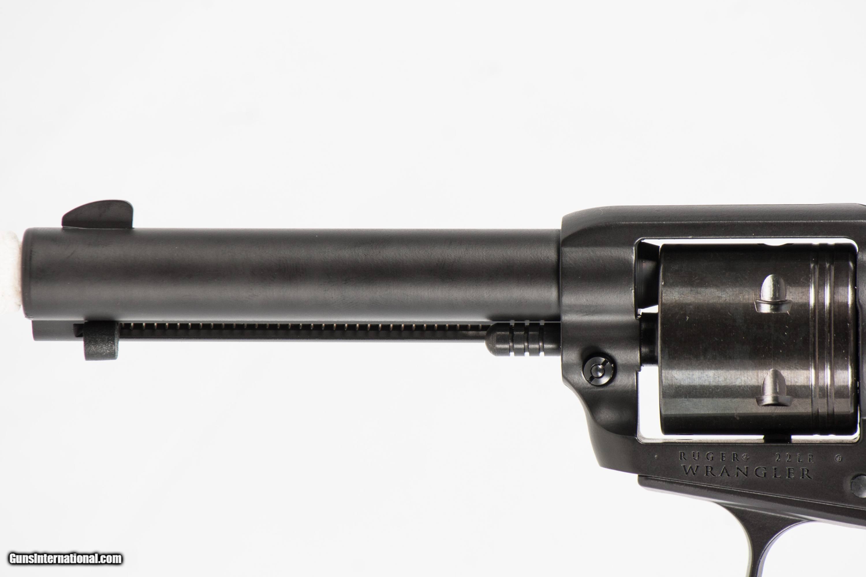 Description: Ruger Wrangler chambered in 22LR with a 4 1/2 inch barrel bright & shiny bore and original box. This gun is in excellent condition and is covered by Dury's Lifetime Warranty.