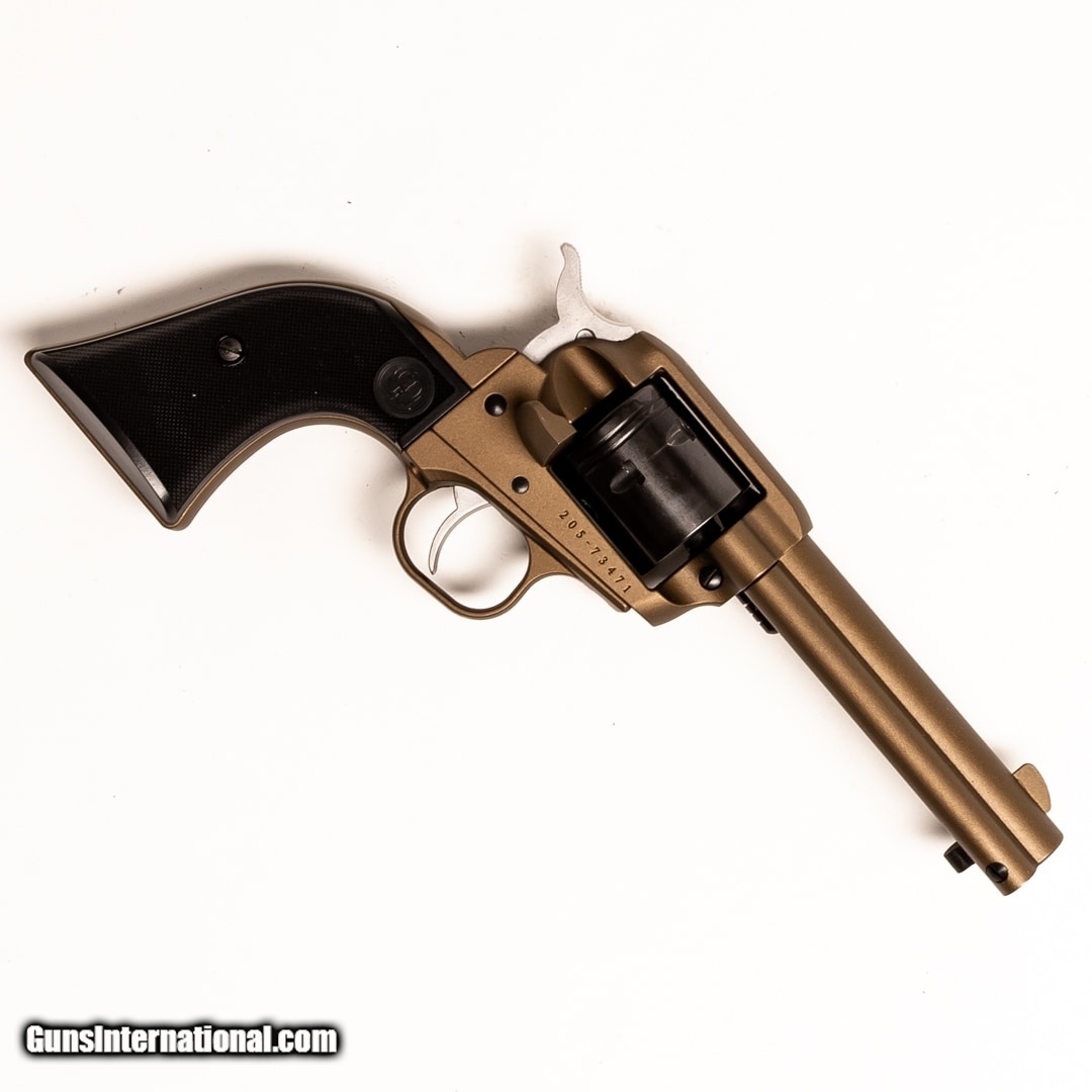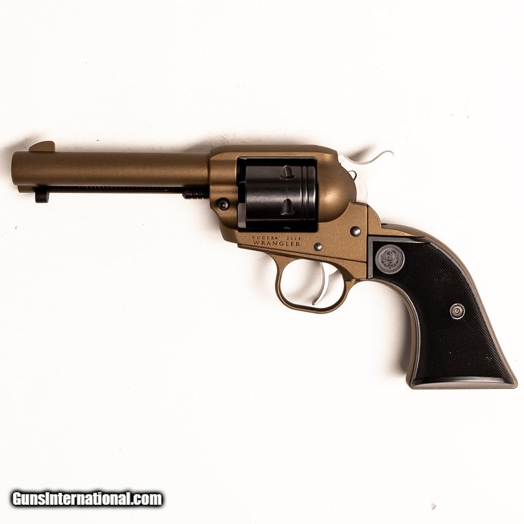 Description: Guns Listing ID: 545182 The Ruger Wrangler is designed off the legendary Colt Single Action Army but with a modern twist. Chambered in 22 LR, the Wrangler makes an excellent handgun for target practice, plinking, and small game hunting. This Wrangler includes the owner‚‚s manual. SOLD Manufacturer: RUGER Model: WRANGLER Caliber Info: .22 LR Condition: Used - Certified Barrels: 4.5 BARREL Finish: BRONZE |