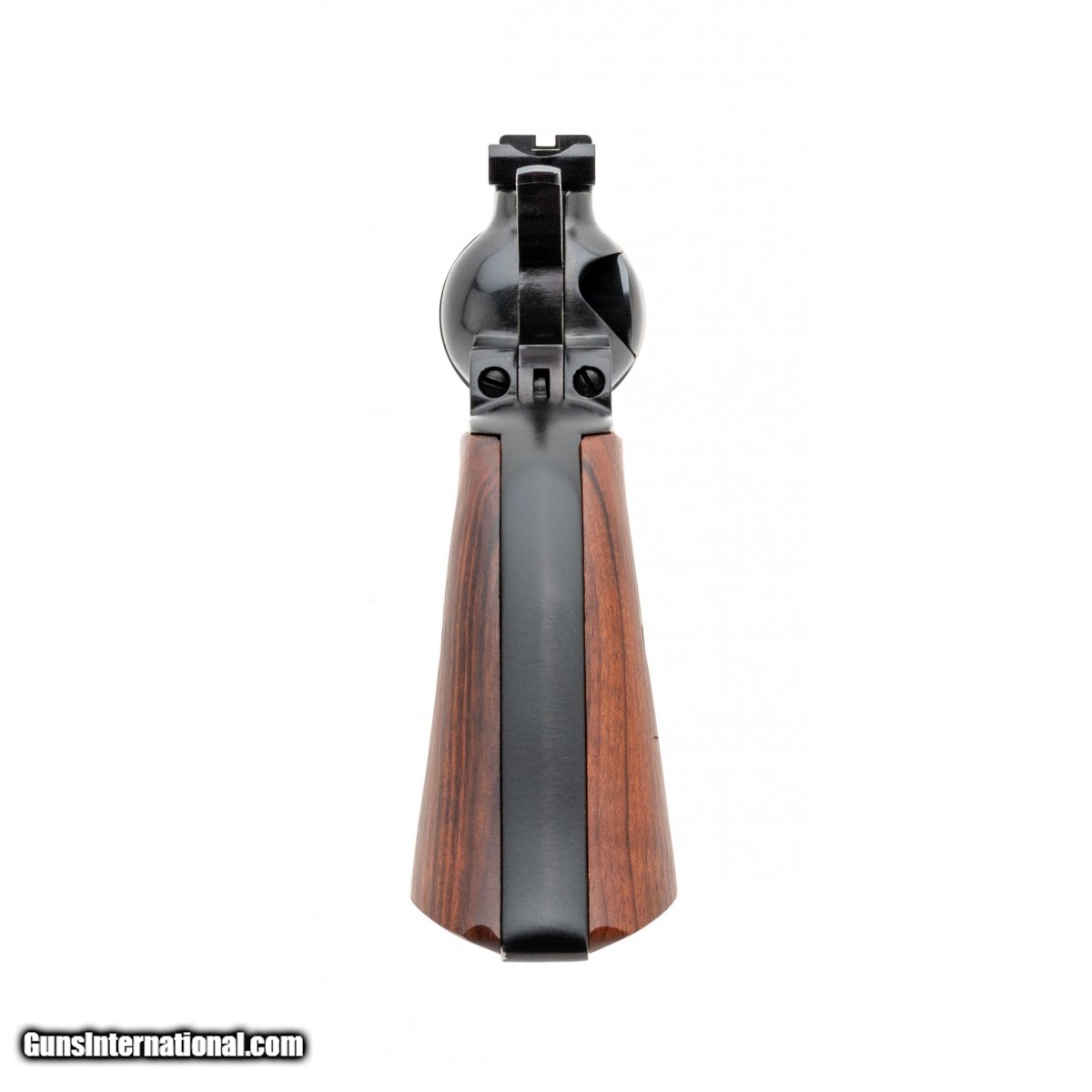 Description: " SN: 262-67292. Modern production. .22lr/WMR with a 6.5"" barrel. Bore is very good. Steel frame, single action revolver. Blue finish is in excellent condition. Wood grips show almost no handling wear. Revolver comes with 2 cylinders one for .22lr and the other for .22 WMR. Overall very good condition. SOLD |