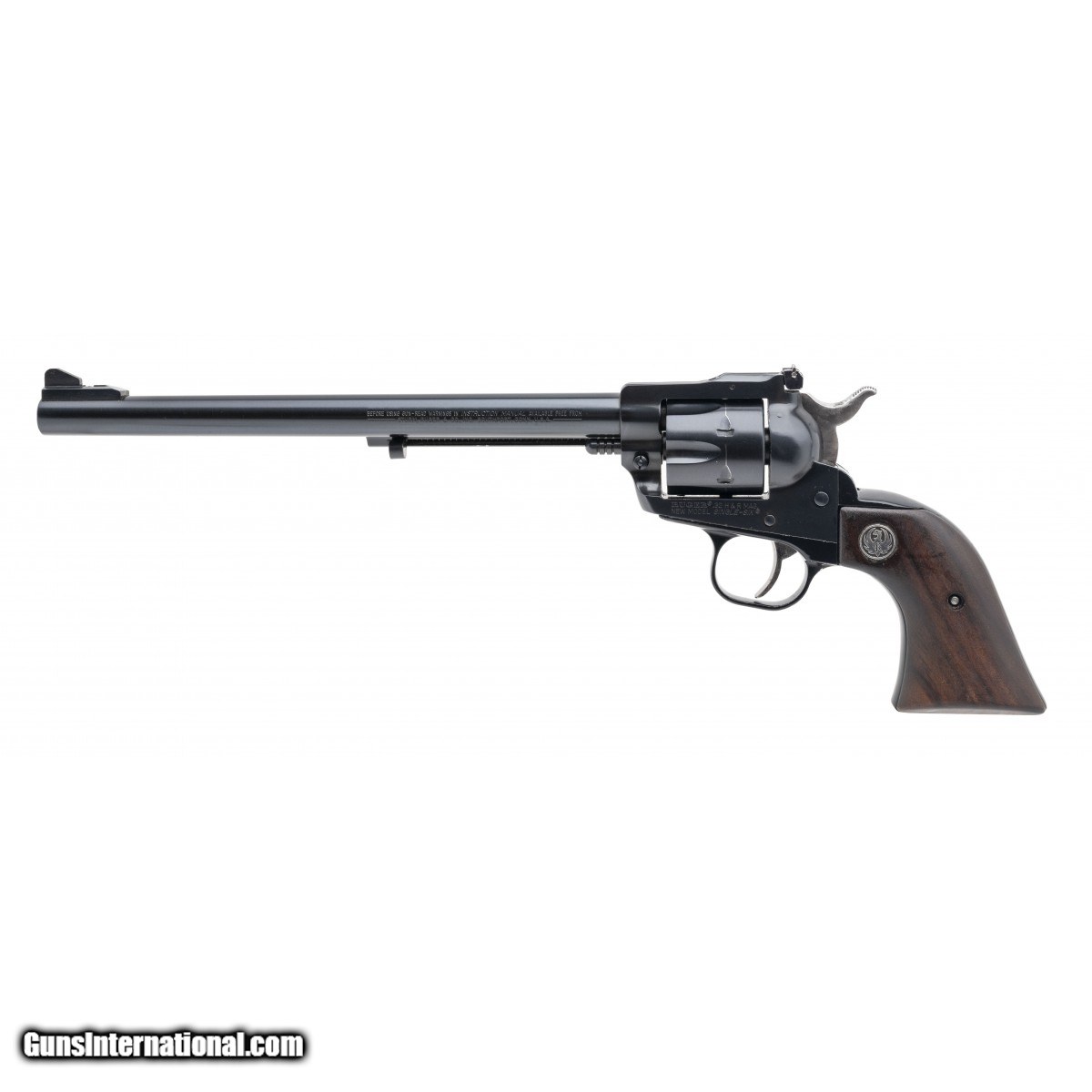 SN: 650-10829. Made in 1985. .32 H&R with a 9.5"" barrel. Bore is bright with strong rifling. Single action revolver with adjustable rear sights. Finish show light wear but remains in very good condition. Dark wood grips have light handling wear noted. Overall very good plus condition.