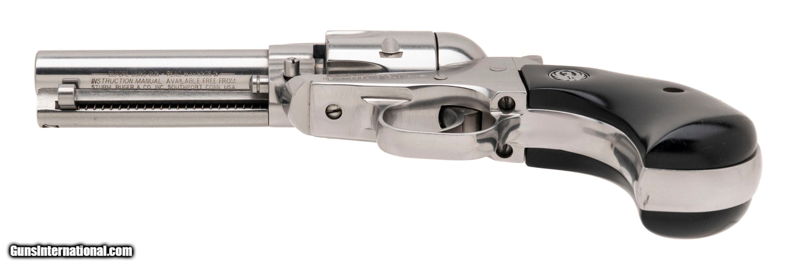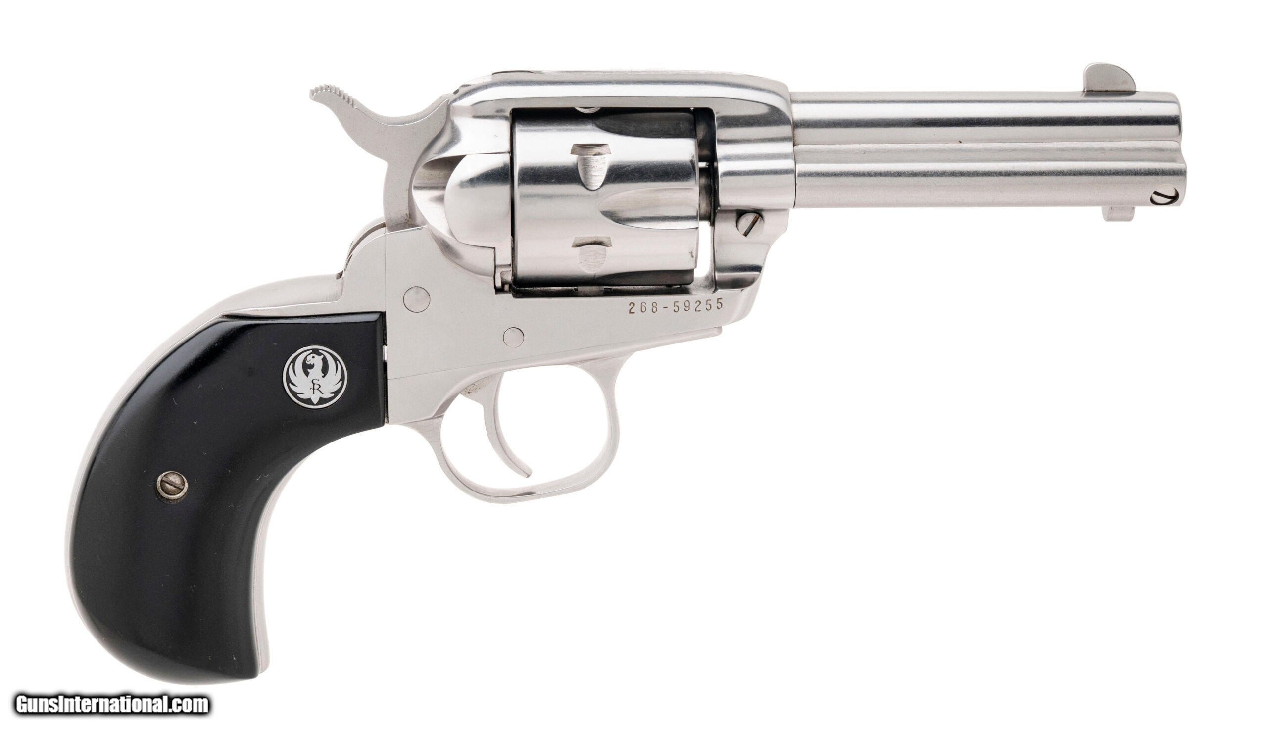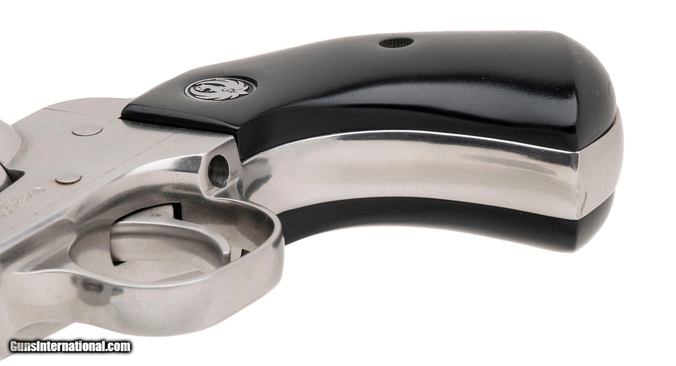 Description: "SN: 268-59255. Modern production, .22LR/.22WMR with a 3.75"" barrel. Bore is excellent. TALO exclusive edition stainless steel single-action revolver with silver medallion ebony wood birdshead grips. Minor handling wear to finish and grips. Includes .22WMR cylinder, and original carry case. Overall condition is very good. SOLD |