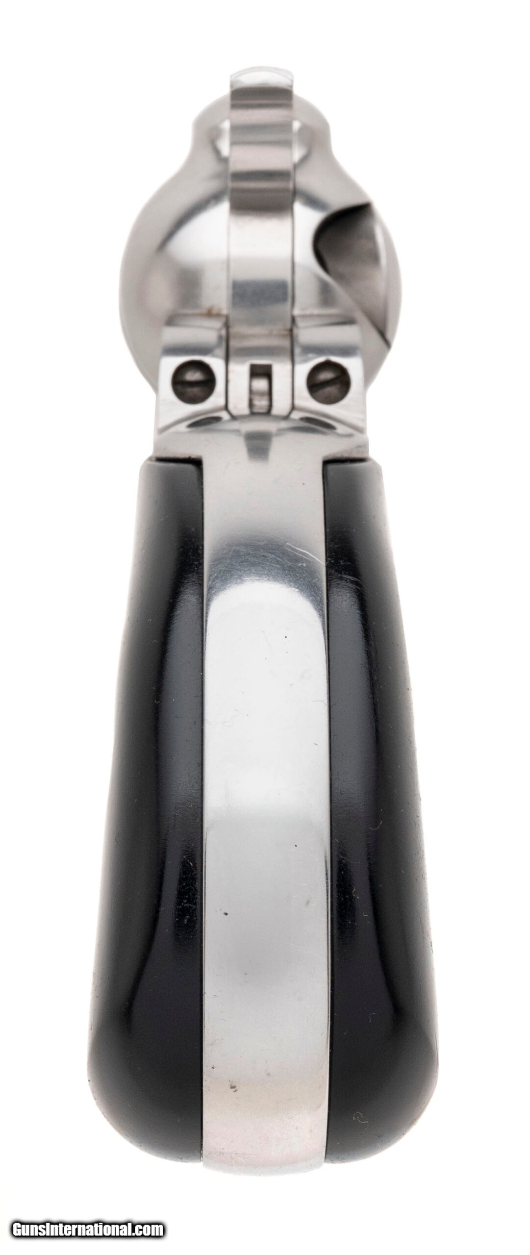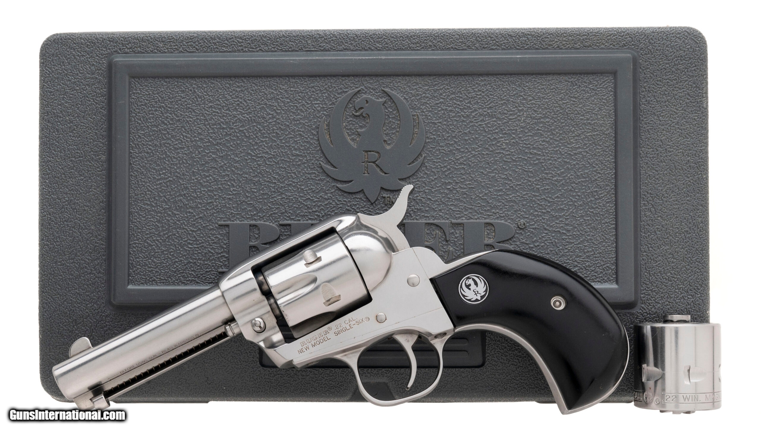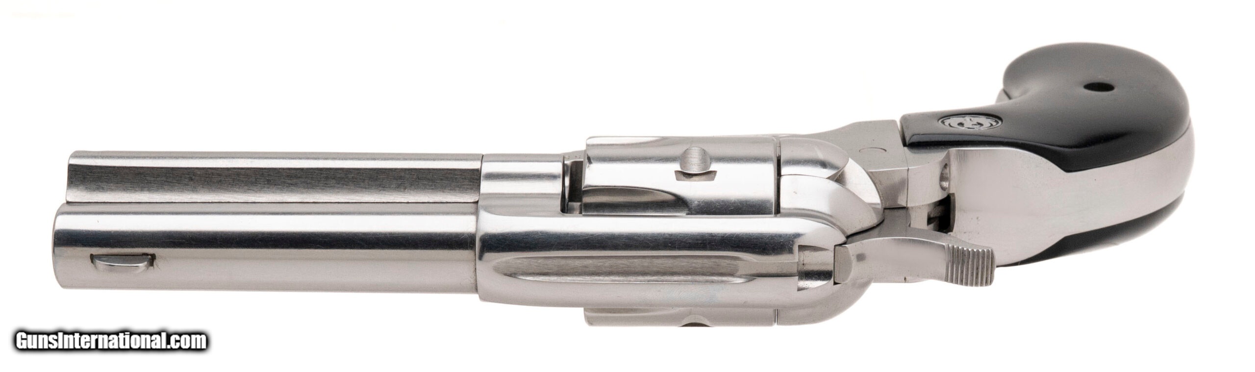Description: "SN: 268-59255. Modern production, .22LR/.22WMR with a 3.75"" barrel. Bore is excellent. TALO exclusive edition stainless steel single-action revolver with silver medallion ebony wood birdshead grips. Minor handling wear to finish and grips. Includes .22WMR cylinder, and original carry case. Overall condition is very good. SOLD |