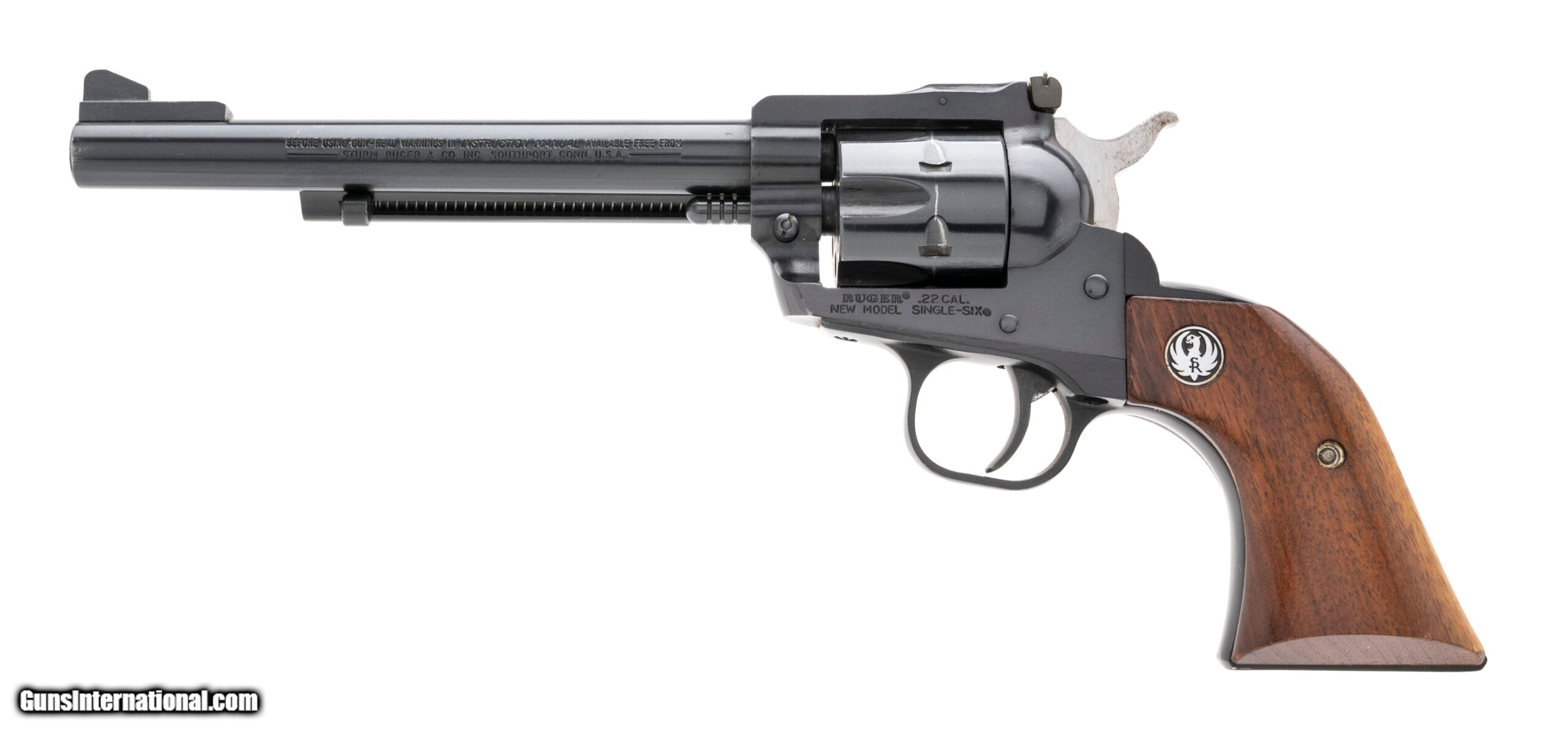 Description: "SN: 68-93786. Made in 1981, .22LR with a 6.5"" barrel. Single action revolver with blued finish and wood grips. Very good condition. SOLD |