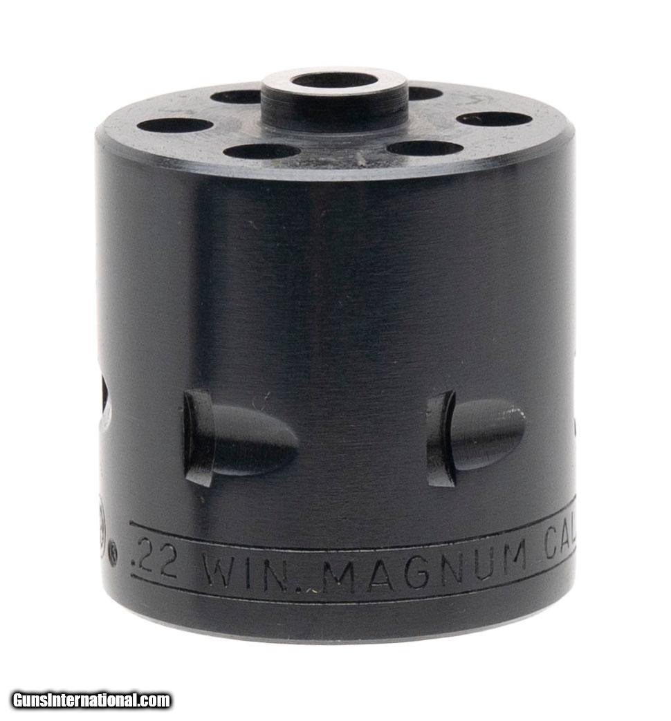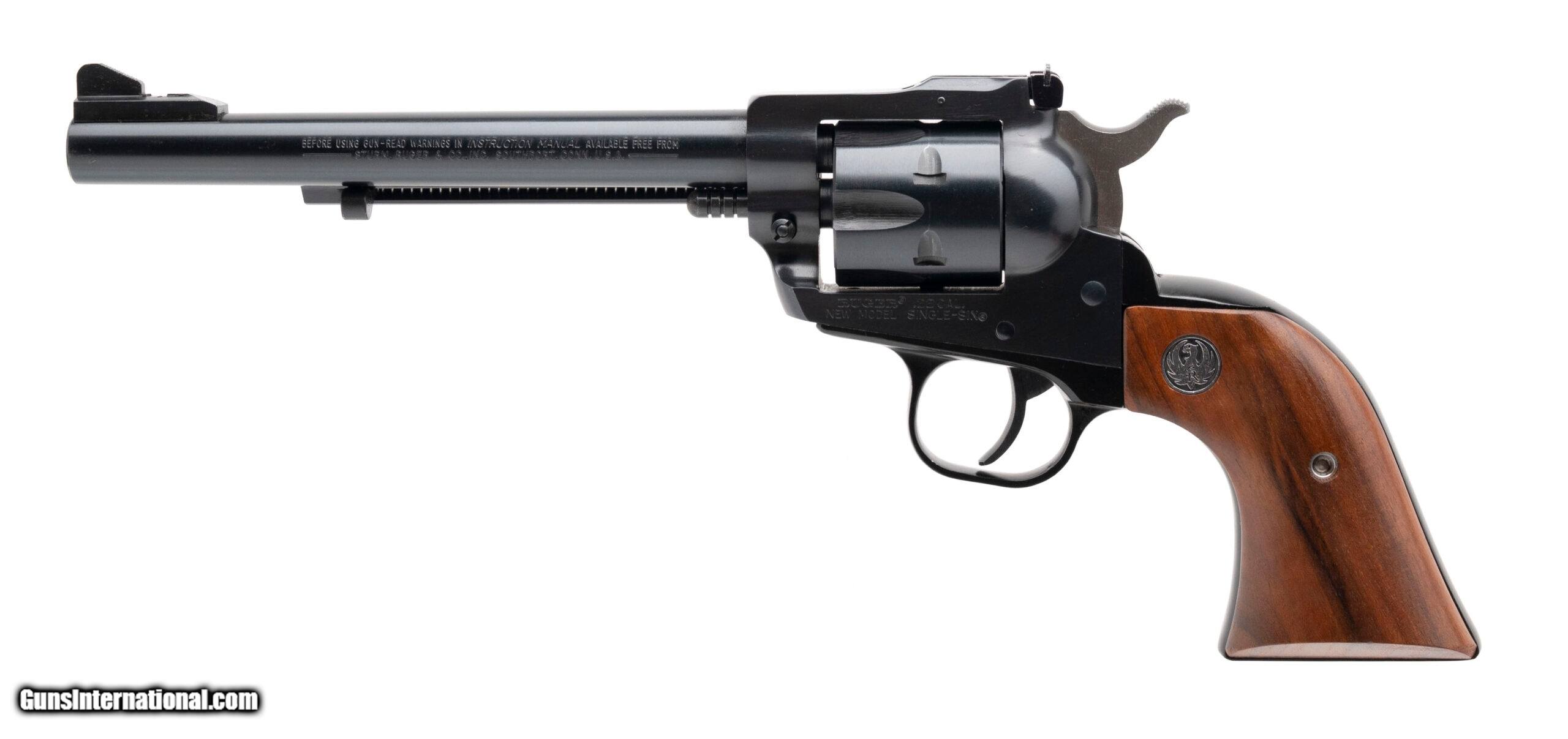 Description: "SN: 260-96619. Made in 1985, .22LR/.22Mag with a 6.5"" barrel. Single action revolver with blue finish and wood grips. Has dual cylinders. Excellent condition. SOLD |