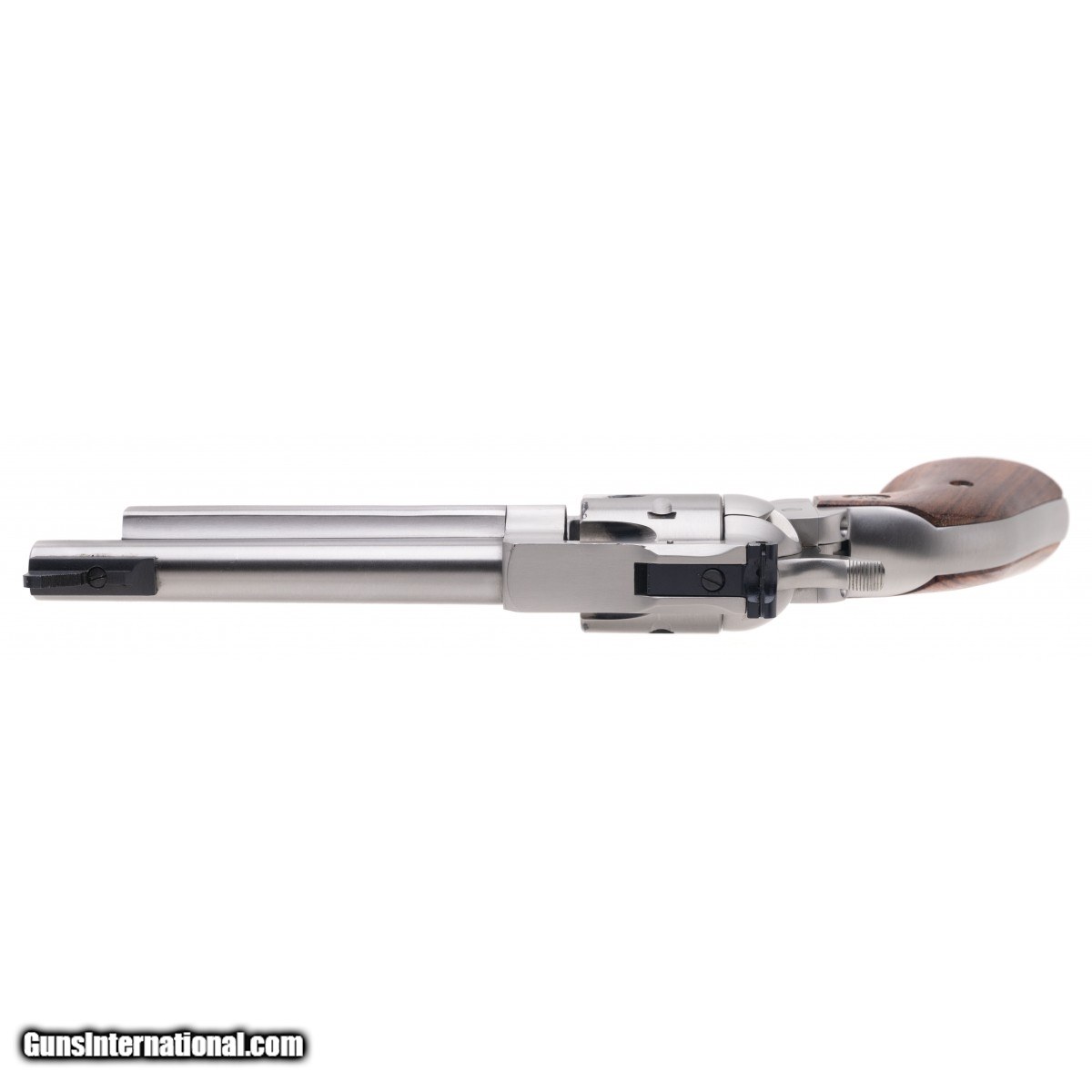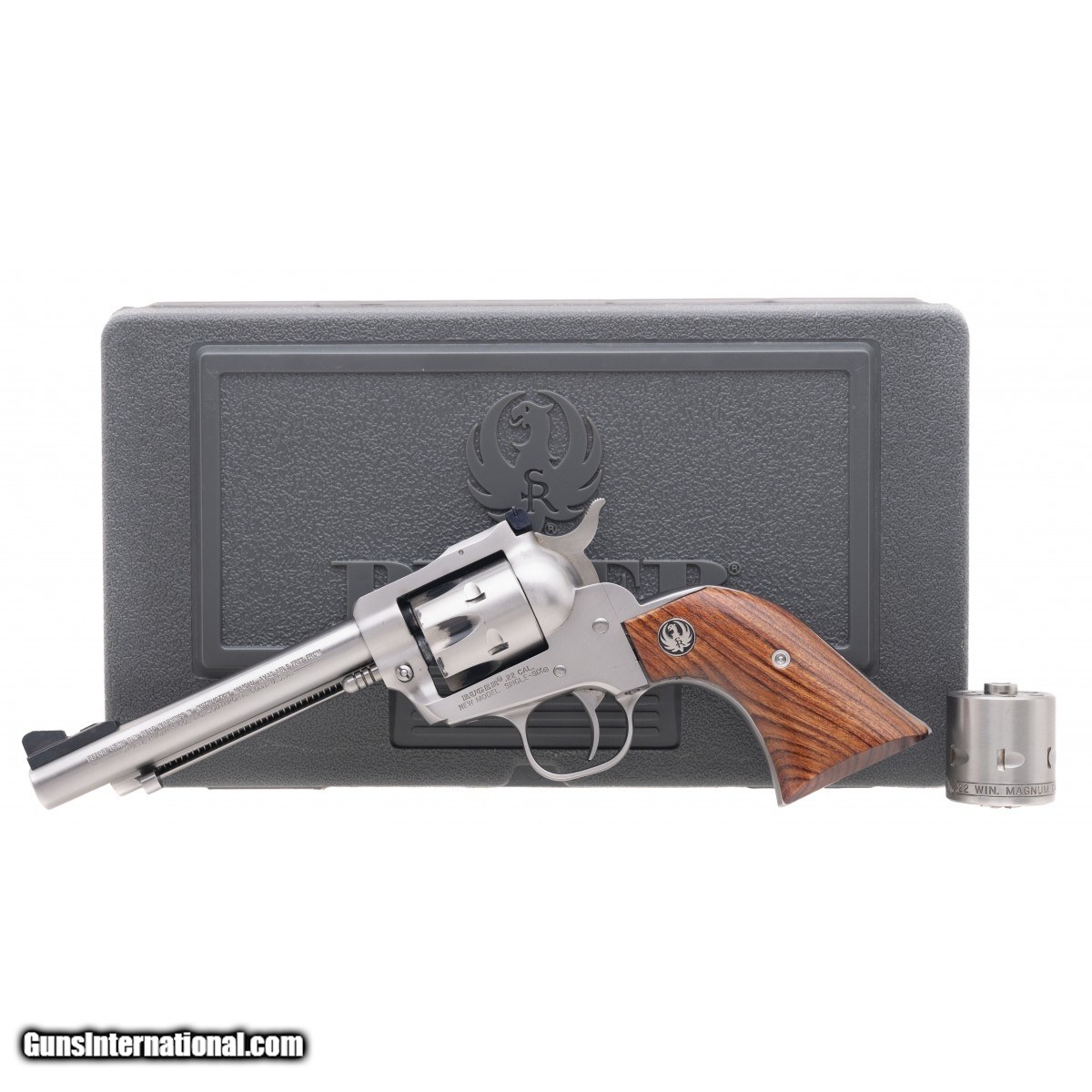 SN:264-66711 .22LR-.22WMR with a 5.5"" barrel . Bore is in excellent condition. Single action stainless steel revolver with wood grips and adjustable rear sight. Overall condition is excellent. Comes with box and extra cylinder. Consignment.